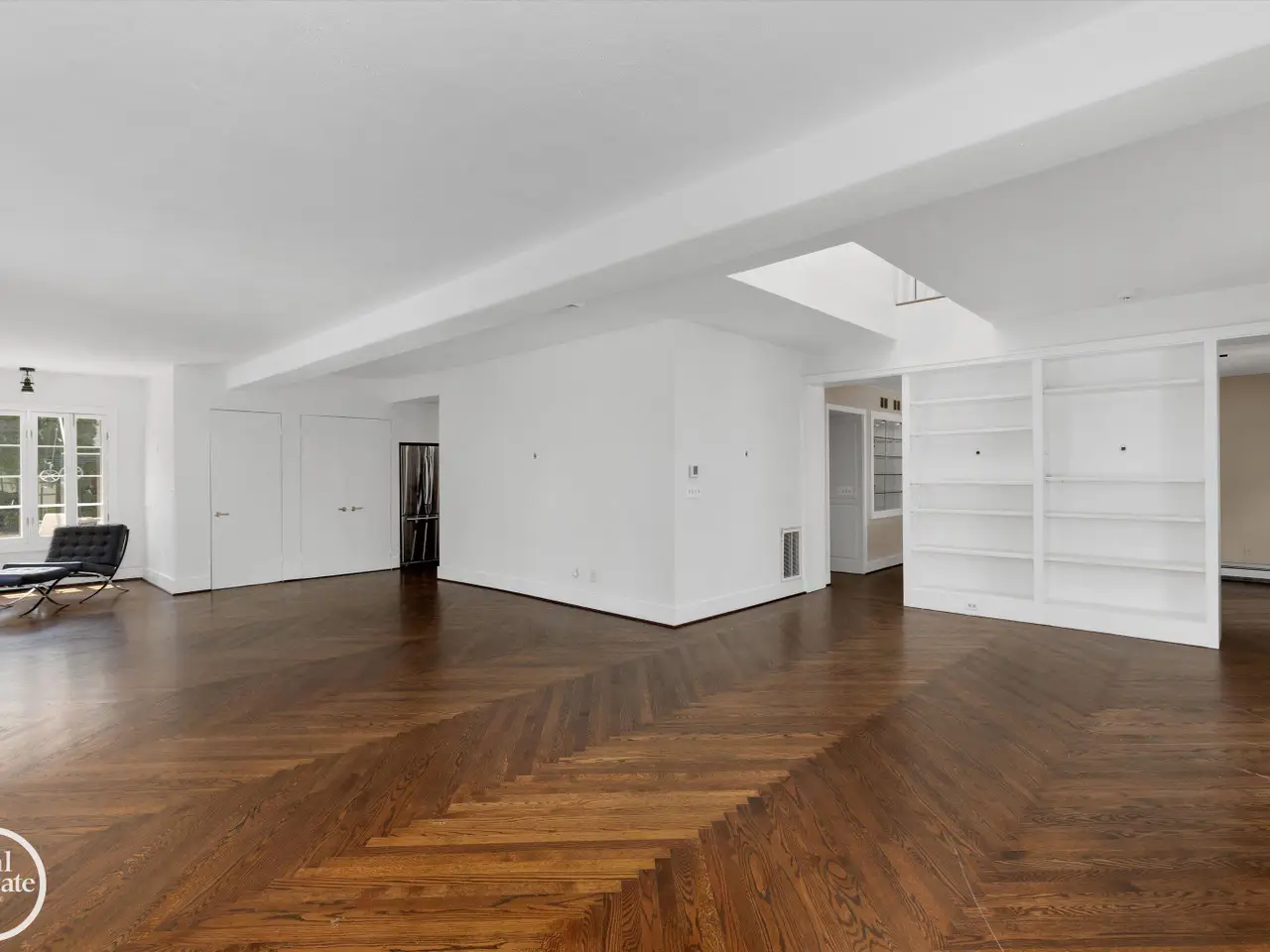 - Herringbone hardwood floors