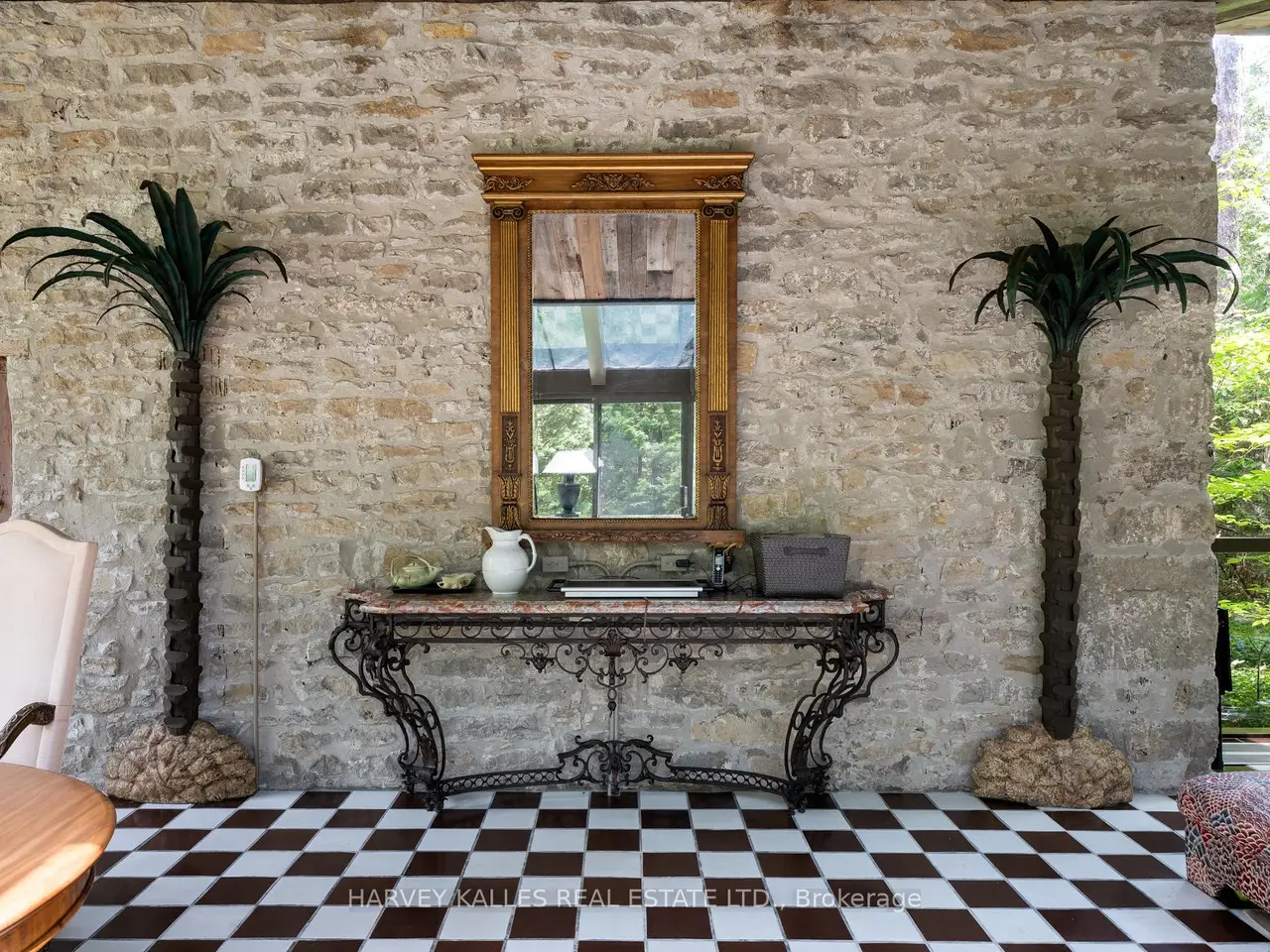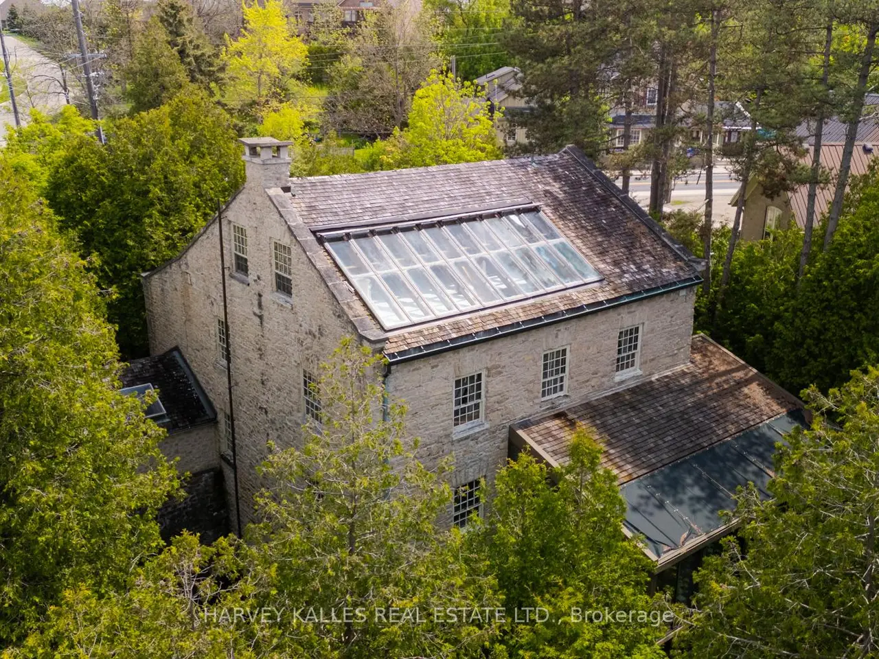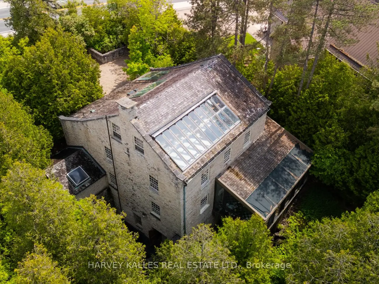 Solidly built with enduring stone walls, 'The Mill' stands as a testament to craftsmanship by acclaimed architect Mandel Sprachman. Tucked just beyond the charm of Main Street and yet enveloped in its own timeless tranquility, this extraordinary residence feels lifted from the pages of a French storybook - a serene oasis that seems to exist outside of time. Set on over 1.8 acres and bordered by a private waterfall and the meandering Eramosa River, the property invites exploration and reminds you of the quiet wonder of nature. This is not just a house, but a way of life. The interior balances warmth and function, with 4 bedrooms and 6 bathrooms. The top-floor primary suite offers a secluded retreat with treetop views and luxurious proportions. At the heart of the home, an expansive great room with exposed wood beams and a bespoke fireplace that feels both grand and intimate. The adjacent kitchen - with walk-in pantry and garden views - opens to a sun-washed stone patio, where morning coffee or evening wine feels like a ritual. A glass-wrapped dining room draws the outdoors in, offering the kind of light-drenched calm found in the villas of Luberon. Downstairs, the lower level walk-out echoes the homes stonework roots, while outside, an inviting inground pool and a picturesque barn add a sense of rustic elegance and possibility. From the sunroom or the poolside terrace, the waterfall glimmers through the trees - a gentle, ever-present soundtrack. It's easy to forget the world here, though Rockwoods cafes and boutiques are just steps away, and downtown Guelph is a mere 15-minute drive. The home is fully serviced for water and utilities. 243 Main Street is not just a home - it is a lifestyle. A rare and enchanting retreat for those drawn to stillness, beauty, and a life well-lived.