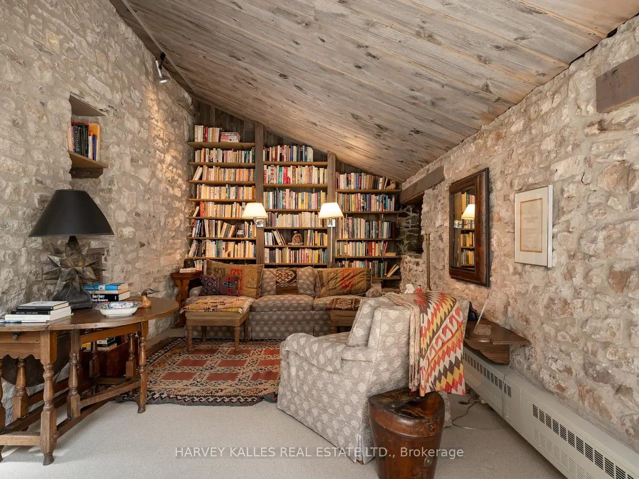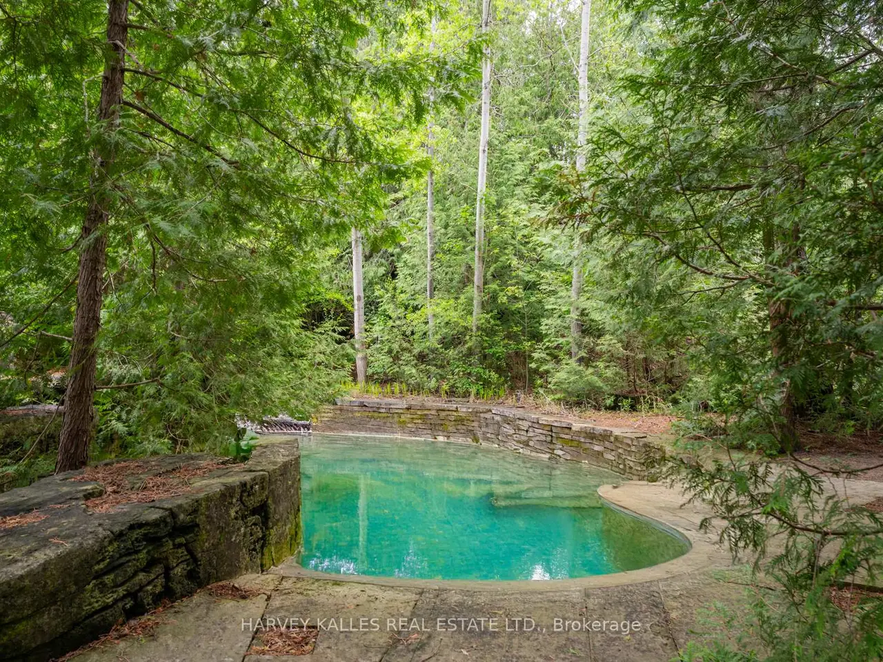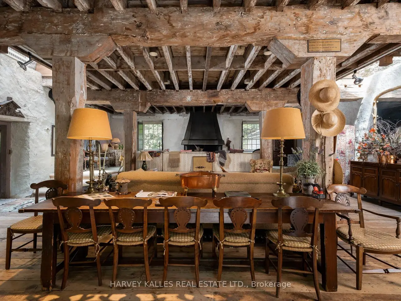 Solidly built with enduring stone walls, 'The Mill' stands as a testament to craftsmanship by acclaimed architect Mandel Sprachman. Tucked just beyond the charm of Main Street and yet enveloped in its own timeless tranquility, this extraordinary residence feels lifted from the pages of a French storybook - a serene oasis that seems to exist outside of time. Set on over 1.8 acres and bordered by a private waterfall and the meandering Eramosa River, the property invites exploration and reminds you of the quiet wonder of nature. This is not just a house, but a way of life. The interior balances warmth and function, with 4 bedrooms and 6 bathrooms. The top-floor primary suite offers a secluded retreat with treetop views and luxurious proportions. At the heart of the home, an expansive great room with exposed wood beams and a bespoke fireplace that feels both grand and intimate. The adjacent kitchen - with walk-in pantry and garden views - opens to a sun-washed stone patio, where morning coffee or evening wine feels like a ritual. A glass-wrapped dining room draws the outdoors in, offering the kind of light-drenched calm found in the villas of Luberon. Downstairs, the lower level walk-out echoes the homes stonework roots, while outside, an inviting inground pool and a picturesque barn add a sense of rustic elegance and possibility. From the sunroom or the poolside terrace, the waterfall glimmers through the trees - a gentle, ever-present soundtrack. It's easy to forget the world here, though Rockwoods cafes and boutiques are just steps away, and downtown Guelph is a mere 15-minute drive. The home is fully serviced for water and utilities. 243 Main Street is not just a home - it is a lifestyle. A rare and enchanting retreat for those drawn to stillness, beauty, and a life well-lived.