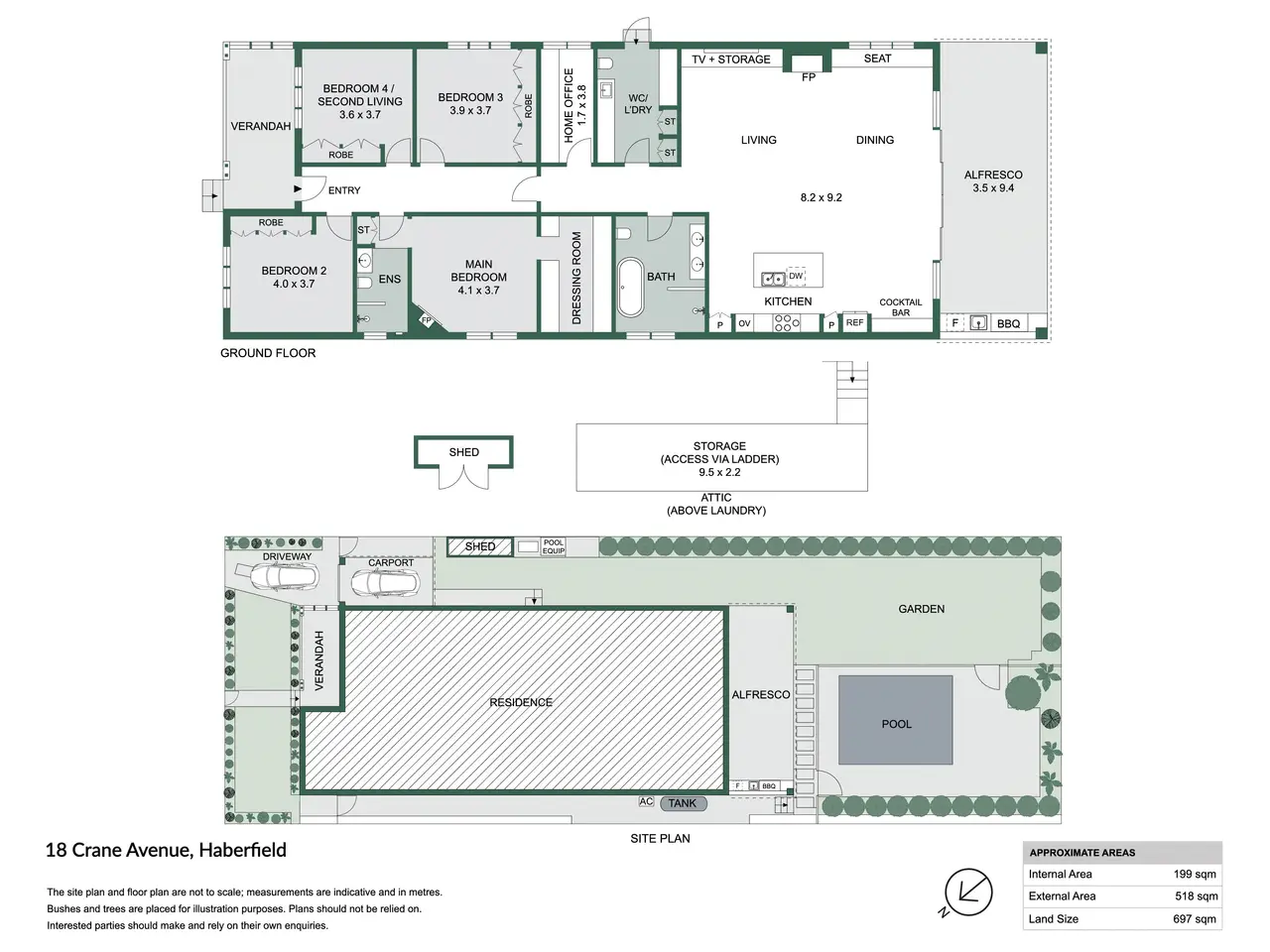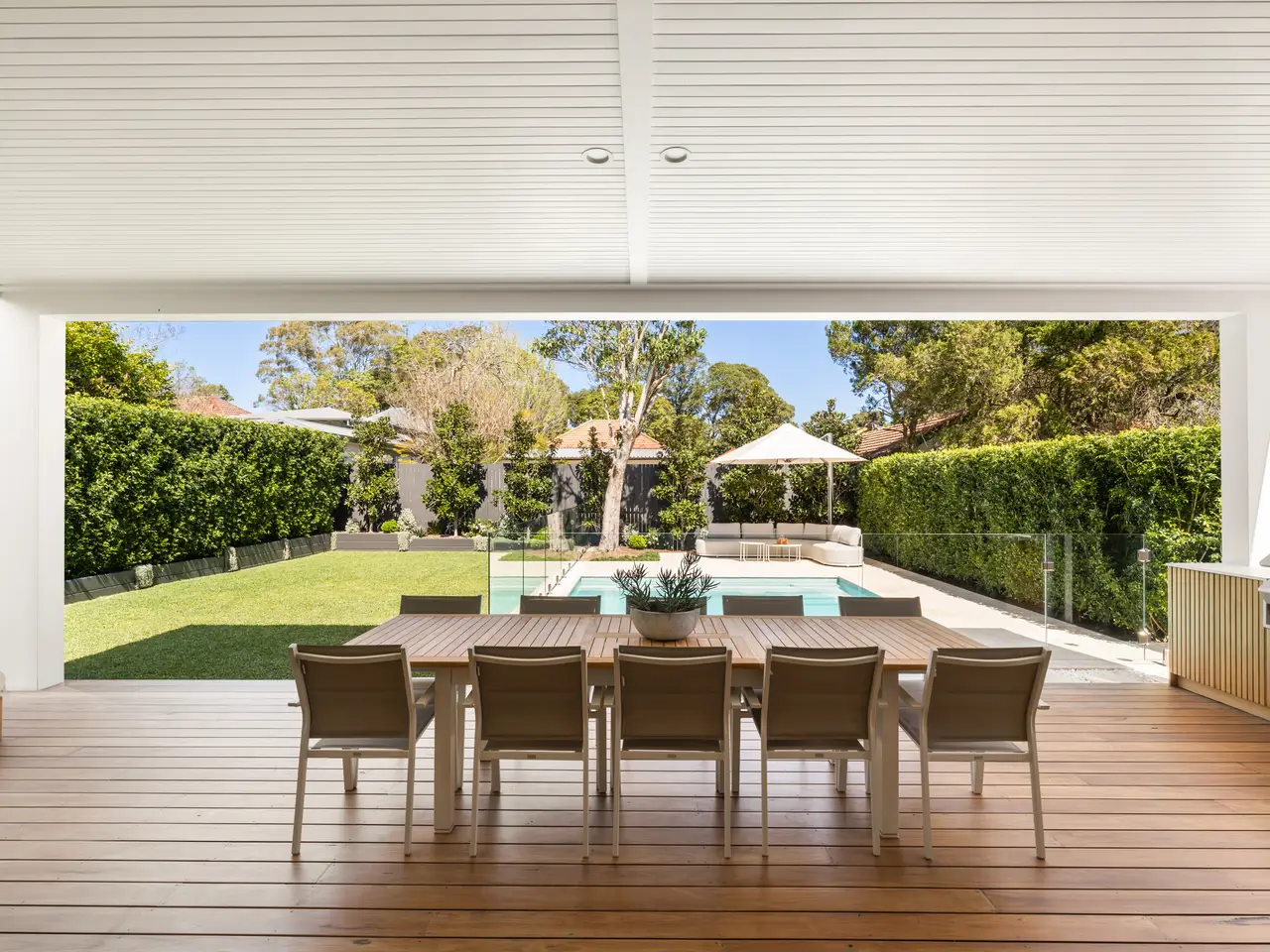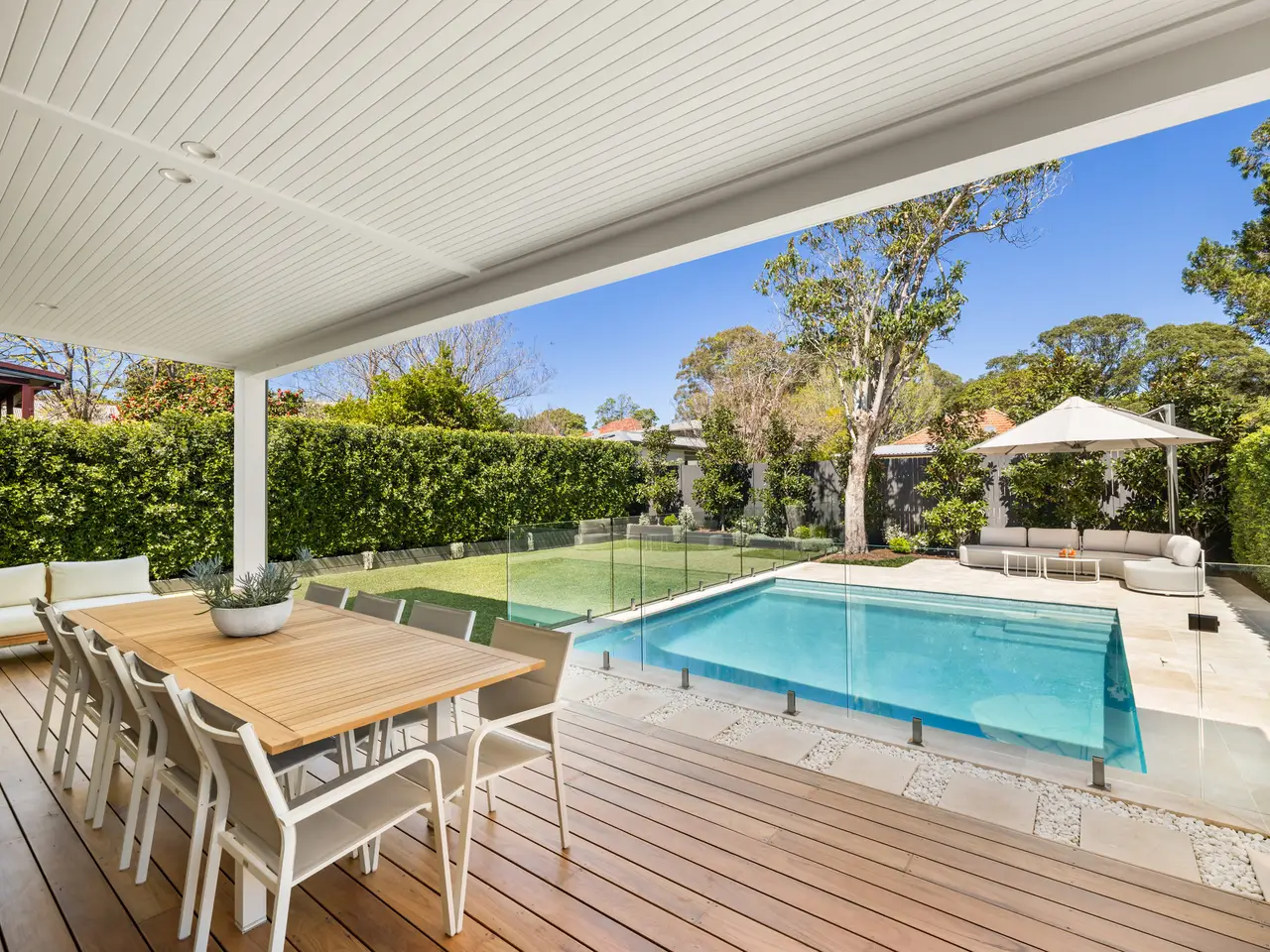 An attractive street presence and gracious character façade combine with bespoke renovations, a tasteful addition at the rear and manicured gardens featuring sun-drenched level lawns and a swimming pool to create this as new resort-style family home. Occupying a wide block of just under 700sqm on a quiet leafy street, it offers the perfect indoor/outdoor lifestyle all on the one level and in a blue ribbon neighbourhood. What remains original perfectly complements the warm and spacious contemporary design, together demonstrating a devotion to build integrity and flawless quality throughout. An absolute dream for a growing family, the home is brilliantly located just a short walk from Haberfield village, waterfront parklands, quality schools and the renowned Bay Run. - Four bedrooms all with built-ins, master has a large walk-in robe/dressing room - Two superb bathrooms, one with a standalone bath, and laundry/guest powder - Large fitted study room, expansive attic storage and dual zone ducted r/c air con - High ornate ceilings, blackbutt floorboards and Tasmanian oak timber panelling - Superb front to rear flow-through with cross breezes and generous natural light - All new open living and dining features exquisite joinery and wood-burning fireplace - Super White marble island kitchen has s/steel Smeg appliances and gas cooking - Glass sliders to an undercover deck with in-built BBQ, wine fridge and speakers - Fenced rear level lawn, heated freshwater pool with limestone-paved surrounds - Rainwater tanks and a single carport with auto garage door plus driveway parking - City buses on Boomerang Street, only 350m from Dobroyd Point Public School