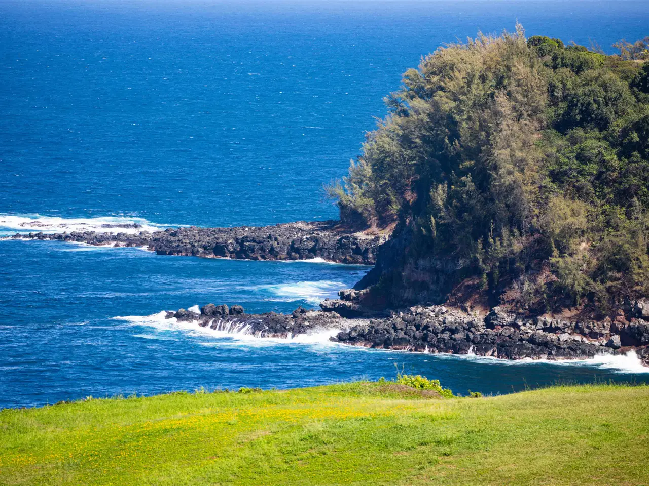 Oceanfront 13-acre parcel in Haiku overlooking Uaoa Bay. The property includes a county water meter, HECO electric, and Spectrum cable. It offers broad ocean and Haleakala mountain views, as well as multiple building site. The drive to the property is fully paved and extremely private. A large gulch area that has been cleared and can be accessed by vehicles provides suitable space for orchards or other agricultural uses. The lot is almost entirely usable/accessible. A solid North Shore opportunity with acreage, utilities, and a direct coastal setting.