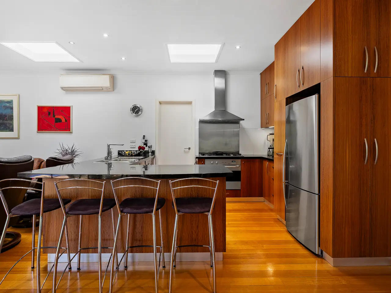 First time offered in 35 years, this stunning 4 bedroom 3 bathroom single level home is a slice of versatile family living with its self contained studio, opposite WL Simpson Reserve. Warm with polished floorboards and beautiful gardens, this immaculate abode showcases 2 interconnecting living and dining areas, a glistening granite kitchen, a relaxing rear garden with salt chlorinated solar heated pool and an auto gate to plenty of secure parking. Parkside living, walk to Thomas Street Adventure Playground, minutes to Hampton Street shops and restaurants, and leading schools. - 2 interconnecting living/dining areas opening to the alfresco garden with automated irrigation system - Sparkling architect designed granite kitchen - A generous main bedroom suite with wall of robes and chic ensuite - 2 further well sized bedrooms with robes and stylish bathroom - A self-contained studio with kitchenette, bathroom, separate heating and A/C, and own entry - Relaxed alfresco pockets overlooking the solar heated saltwater pool - Ducted heating, reverse cycle air conditioning, monitored alarm system, CCTV - Auto gate leading to plenty of secure parking - Metres to Boss James Reserve and Sandringham Athletics Track - Minutes to beautiful beaches, shops, transport and elite schools