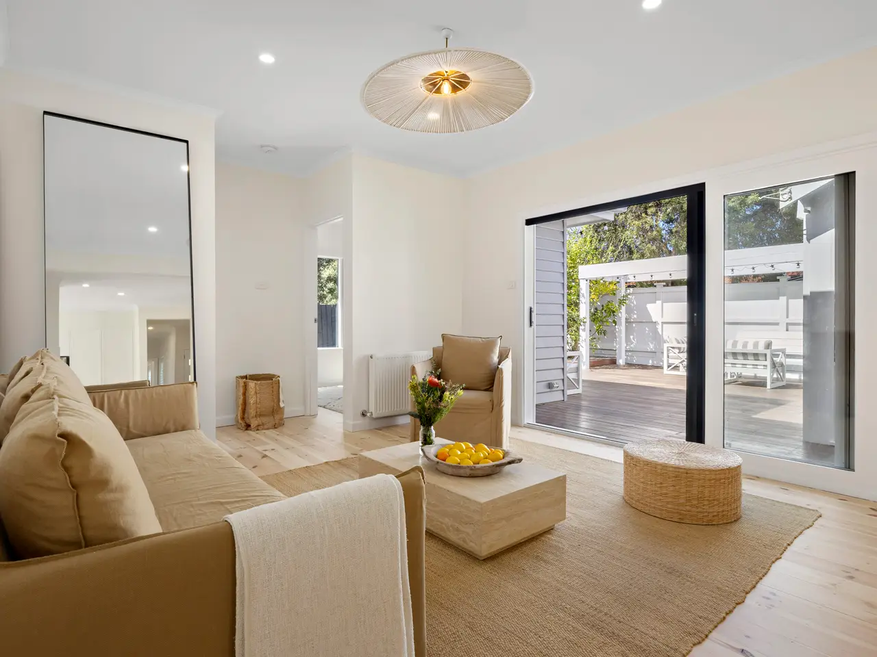 Beautifully renovated with Hamptons style charm, this light filled 4 bedroom 2 bathroom single level home is a slice of contemporary relaxation. Stunning with its Baltic pine floorboards, white plantation shutters and designer palette, this coastal inspired abode showcases 3 interconnecting living/dining areas (gas fire), a Hamptons style Smeg kitchen, spacious main bedroom (WIR) and ensuite, a sunny rear garden with alfresco deck, bench seating under the pergola and fire pit area, and an auto garage via an auto gate. Parkside living, metres to cafes and sports facilities. - 3 interconnecting living/dining areas opening to the alfresco deck - Hamptons style kitchen with Smeg appliances and integrated dishwasher - A spacious main bedroom suite with walk through robe and vogue ensuite - 3 further flexible bedrooms with wardrobes (home office, playroom) - Sublime bathrooms and laundry with heated towel rails - Hydronic heating, ceiling fans, video intercom and a garden shed - Auto gate leading to the garage and secure parking for 2 - Double gate/2nd crossover for additional parking via James Crescent - Between Thomas Street South Reserve and Boss James Reserve - Minutes to Hampton Street, cafes, elite schools and beautiful beaches