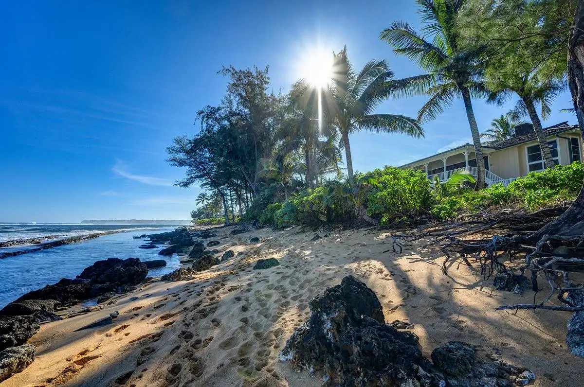 Located on a quiet stretch of one of Kauai's incredible North Shore beaches, Holo Makani is an idyllic tropical sanctuary. Expansive ocean views extend from spacious living areas throughout this 3 bedroom, 3 bathroom home. As a permitted vacation rental (TVR) with an excellent rental history, this well built, timeless, classic style beach house leaves little to be desired with its hardwood flooring throughout, vaulted ceilings, white on stainless kitchen, ipe decking, lava stone accents and swimming pool. With some of the island's best kiting ,fishing, diving and snorkeling right in your backyard, this property facilitates living the island lifestyle. Whale watch from your lanai or lounge beachside with a great book. World class hiking on the Napali Coast is just a few minutes away. The dining and shopping amenities of Hanalei, Kauai's favorite surf town, and the golfing and tennis facilities available in Princeville are all easily accessible.