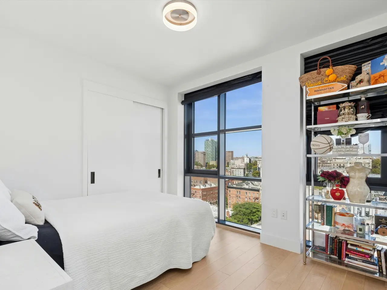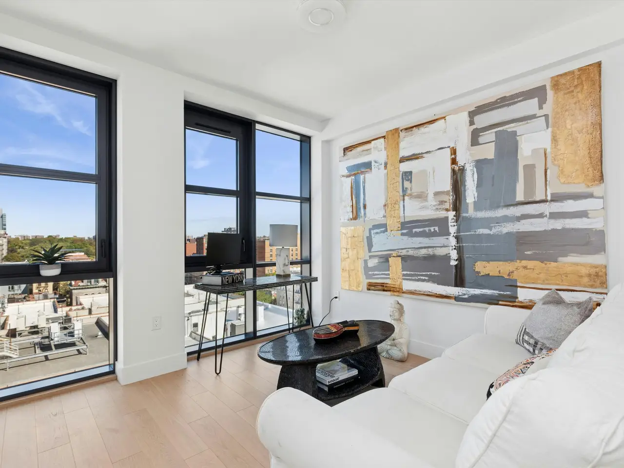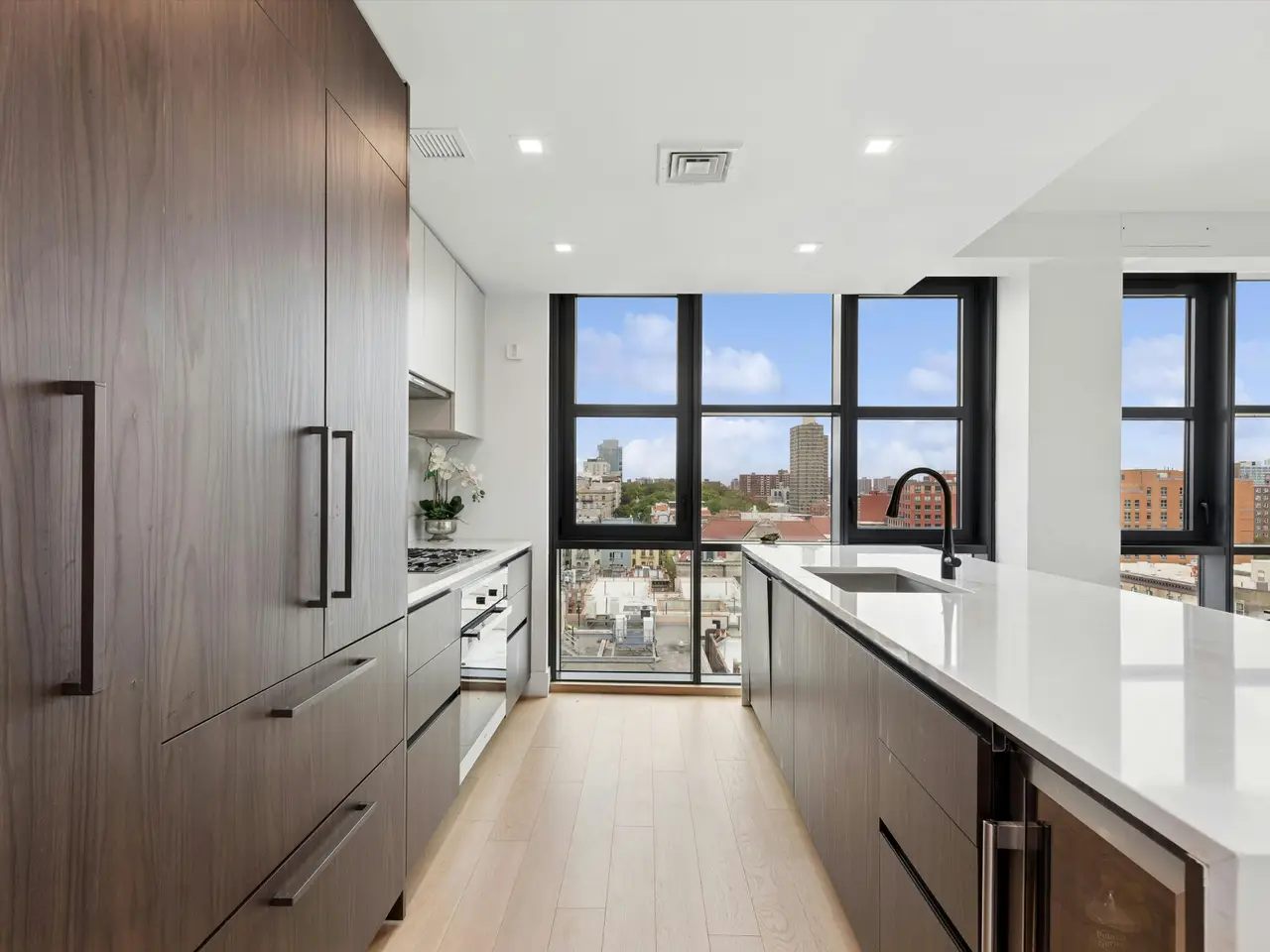 Penthouse 206 at Eleven Hancock is a bright, spacious, and meticulously designed 3-bedroom, 2.5-bath residence offering 1,516 square feet of interior space and sweeping Harlem views. Coveted eastern exposures fill the home with natural light throughout the day, while a private 412-square-foot rooftop cabana with a built-in grill and sink creates the perfect setting for outdoor entertaining or quiet relaxation. The open-concept layout features a dramatic 21-foot living area that flows seamlessly into a beautifully appointed 10-foot Italian Cesar kitchen. This chef's kitchen is anchored by a floating island and finished with Calacatta quartz countertops and backsplash, along with a fully integrated Miele appliance suite concealed behind custom millwork, combining modern elegance with everyday functionality. The primary suite includes a generous walk-in closet and a spa-like bathroom outfitted with a rain shower, large-format Calacatta tile, herringbone-patterned natural stone floors, and matte black Kohler fixtures. The second and third bedrooms are equally well-proportioned and are conveniently located near a thoughtfully designed full bathroom, along with a separate powder room for guests. Additional highlights of this exceptional home include floor-to-ceiling windows, hardwood floors throughout, central air conditioning, and an in-unit washer and dryer. A private onsite storage unit is also offered with this sale. Every element of Penthouse 206 reflects Eleven Hancock's commitment to quality craftsmanship and timeless modern design. Designed by Isaac and Stern Architects, Eleven Hancock is a striking addition to Harlem's skyline, combining glass, steel, and brick with distinctive horizontal zinc and rust-colored bands. The building offers over 6,000 sq. ft. of indoor and outdoor amenities including a 24/7 attended lobby, private garden entrance, high-tech fitness center, children's playroom, rooftop lounge with BBQs, and a residents' lounge opening onto a 3,500 sq. ft. landscaped terrace. Ideally located in the heart of Harlem, residents are steps from Morningside Park, the Apollo Theater, Columbia University, and the vibrant Factory District, with the 125th Street A, B, C, D subway lines just minutes away for a quick Midtown commute.