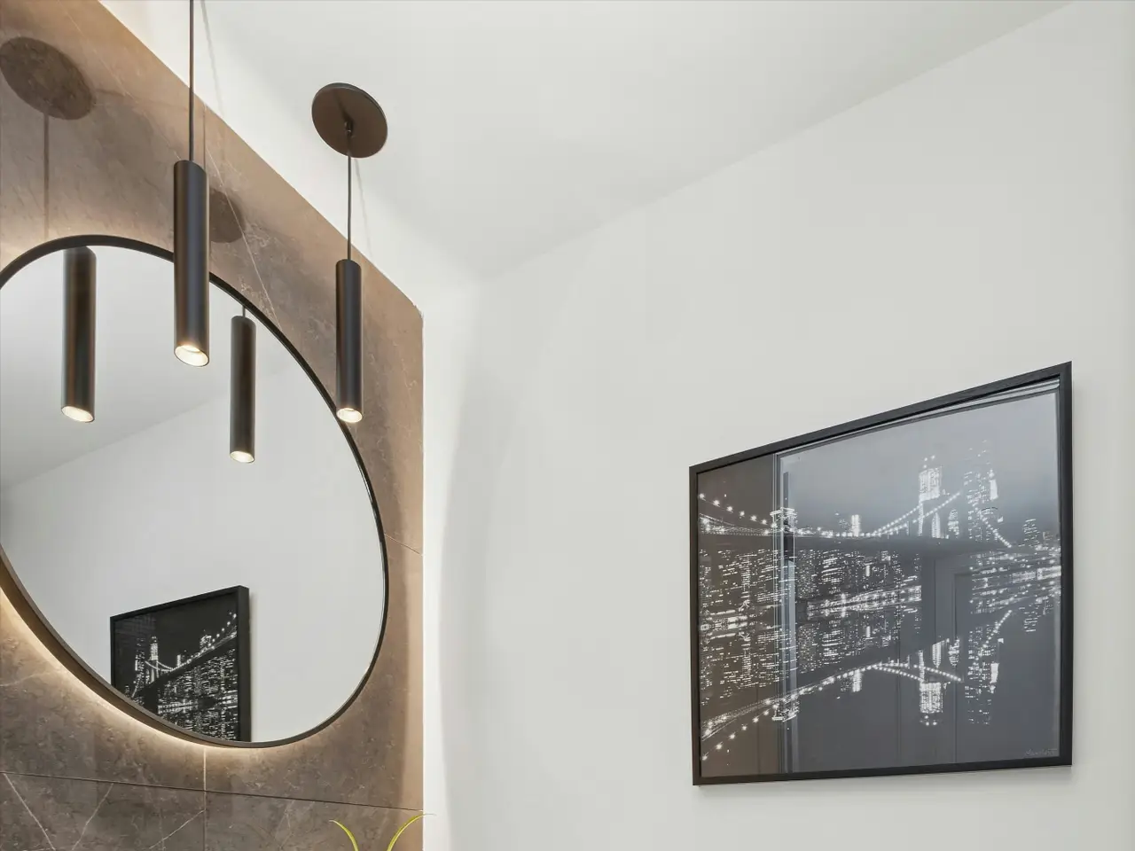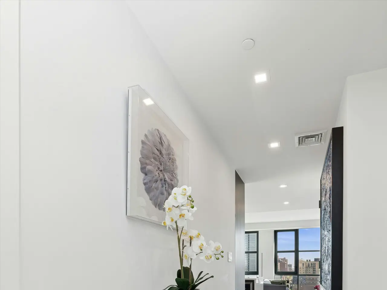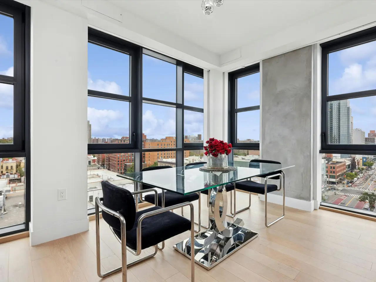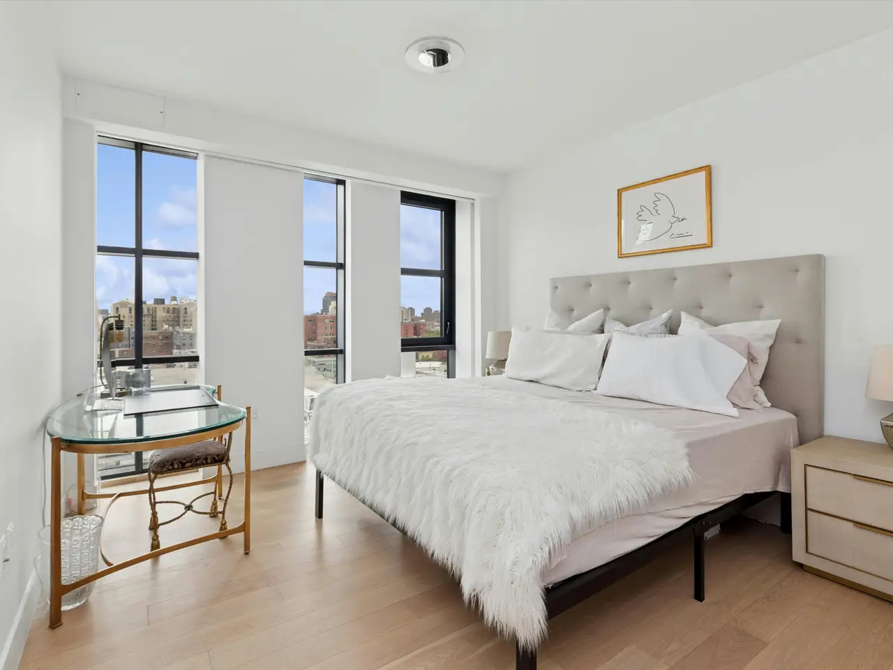Penthouse 206 at Eleven Hancock is a bright, spacious, and meticulously designed 3-bedroom, 2.5-bath residence offering 1,516 square feet of interior space and sweeping Harlem views. Coveted eastern exposures fill the home with natural light throughout the day, while a private 412-square-foot rooftop cabana with a built-in grill and sink creates the perfect setting for outdoor entertaining or quiet relaxation. The open-concept layout features a dramatic 21-foot living area that flows seamlessly into a beautifully appointed 10-foot Italian Cesar kitchen. This chef's kitchen is anchored by a floating island and finished with Calacatta quartz countertops and backsplash, along with a fully integrated Miele appliance suite concealed behind custom millwork, combining modern elegance with everyday functionality. The primary suite includes a generous walk-in closet and a spa-like bathroom outfitted with a rain shower, large-format Calacatta tile, herringbone-patterned natural stone floors, and matte black Kohler fixtures. The second and third bedrooms are equally well-proportioned and are conveniently located near a thoughtfully designed full bathroom, along with a separate powder room for guests. Additional highlights of this exceptional home include floor-to-ceiling windows, hardwood floors throughout, central air conditioning, and an in-unit washer and dryer. A private onsite storage unit is also offered with this sale. Every element of Penthouse 206 reflects Eleven Hancock's commitment to quality craftsmanship and timeless modern design. Designed by Isaac and Stern Architects, Eleven Hancock is a striking addition to Harlem's skyline, combining glass, steel, and brick with distinctive horizontal zinc and rust-colored bands. The building offers over 6,000 sq. ft. of indoor and outdoor amenities including a 24/7 attended lobby, private garden entrance, high-tech fitness center, children's playroom, rooftop lounge with BBQs, and a residents' lounge opening onto a 3,500 sq. ft. landscaped terrace. Ideally located in the heart of Harlem, residents are steps from Morningside Park, the Apollo Theater, Columbia University, and the vibrant Factory District, with the 125th Street A, B, C, D subway lines just minutes away for a quick Midtown commute.