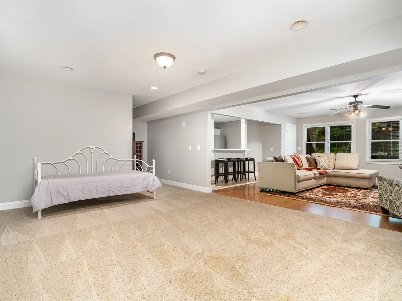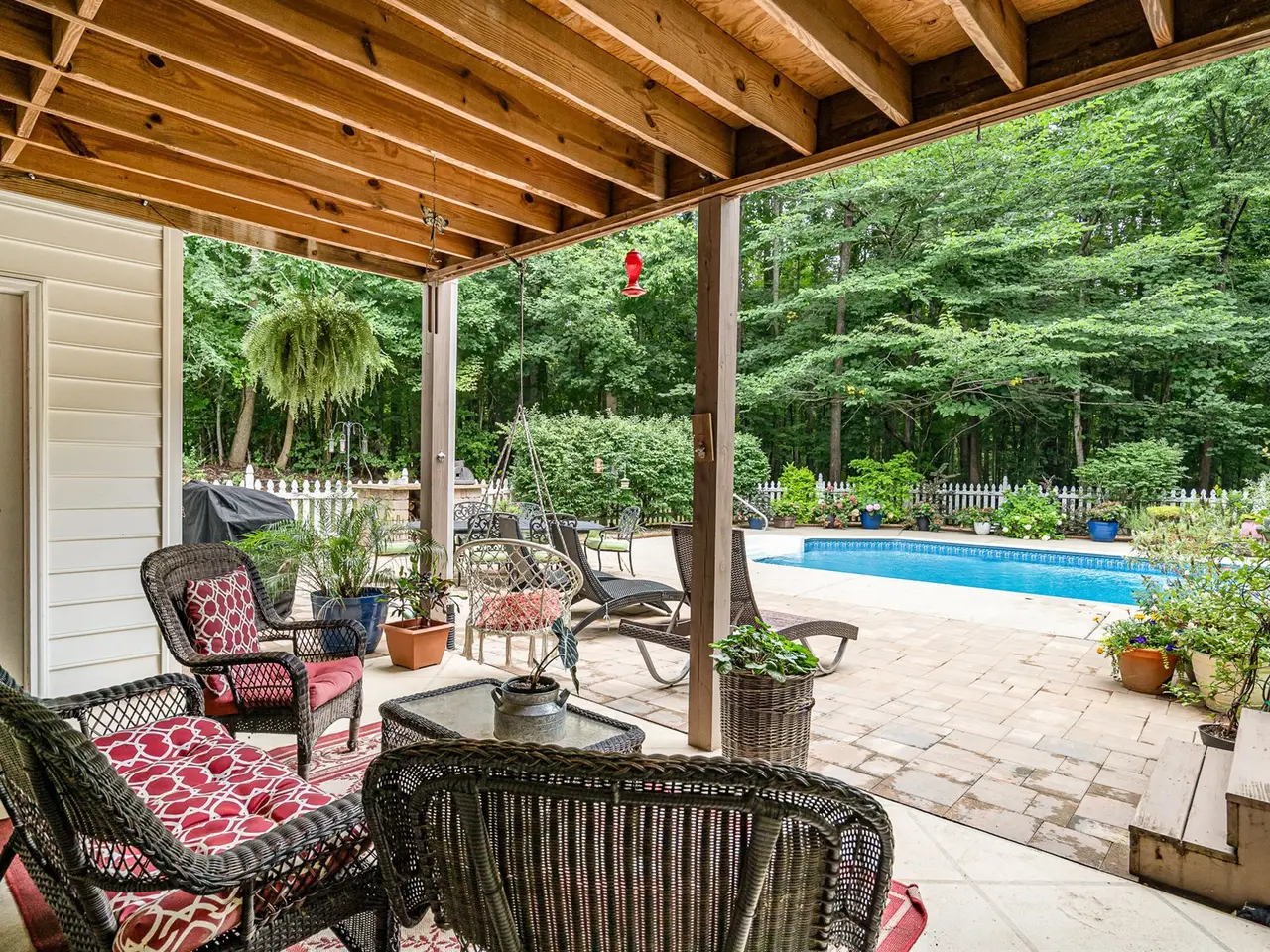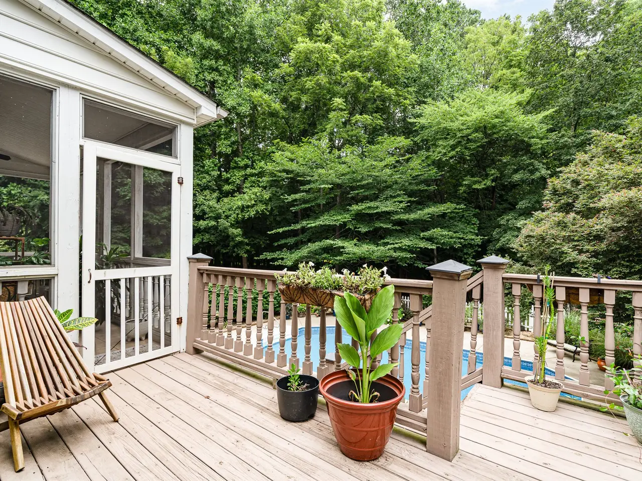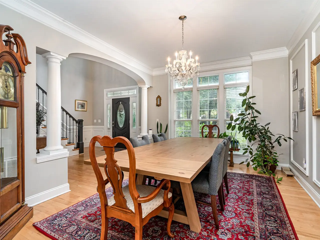 Beautiful Windsor Forest cul-de-sac basement home on a private, wooded .67-acre lot with in-ground pool (new liner) in Harrisburg. Main level offers a dining room, large great room, and a chef's kitchen with granite counters, island, tile backsplash, and stainless appliances. Primary suite and guest suite with full bath on main. Upstairs features 3 bedrooms plus a large bonus/optional 6th bedroom and updated dual vanity Jack-and-Jill bath. The full basement is ideal for entertaining with rec space, **2nd kitchen, full bath, workshop, and storage. Enjoy the screened porch overlooking the treed yard and pool. Crown molding throughout main living areas. Convenient to shops, restaurants, and highways while maintaining privacy. This spacious, well-appointed home offers flexibility for multigenerational living, work-from-home needs, and entertaining inside and out. Upstairs HVAC 2020, Downstairs 2021. Don't miss this exceptional Harrisburg home and schools!!