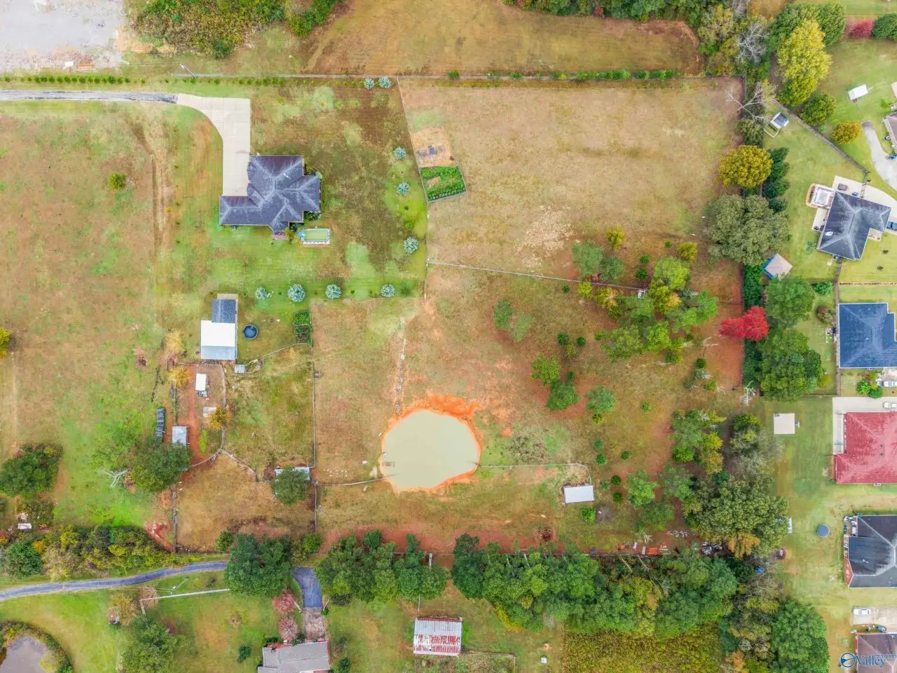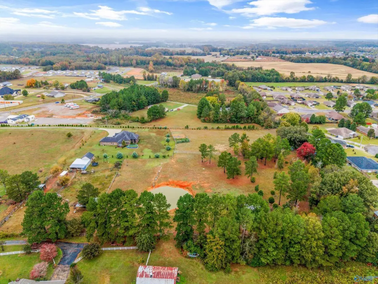 Modern style meets country charm on this gorgeous 6-acre estate with a pond! Step inside to soaring 12" 14 ft ceilings, rich hardwood floors, and a showstopping kitchen you'll absolutely fall in love with. This 4-bedroom, 3-bath beauty features oversized rooms, dreamy closets, an office, and sleek tile in all the right places. The stone entry and wrought iron doors make a grand first impression, while the fully fenced yard and lush landscaping offer total privacy. A 20x20 detached garage is perfect for a workshop or hobby space. Need more land? Three extra acres are available too!