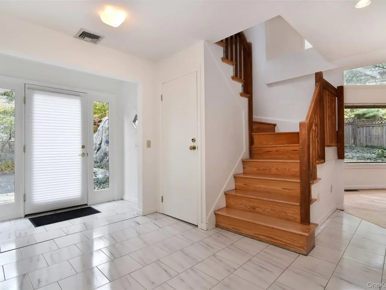 Tucked away behind natural rock outcroppings, this stunning light-filled Contemporary retreat offers the perfect blend of privacy and modern comfort. A spacious foyer with 2 entry closets welcomes you into the grand sized rooms filled with sunlight streaming through large windows in every direction. The Living Room features a vaulted ceiling and wood-burning fireplace. The home's flexible floor plan flows effortlessly into a bright Dining Area and an open Kitchen, ideal for today's casual lifestyle. A 30' Great Room is perfect for relaxed daily living or entertaining with a large screen television. On the second level, the ensuite primary bedroom impresses with a tray ceiling and 4 generous closets, the two additional bedrooms are ample sized, providing comfort and privacy for all. Enjoy the lifestyle Hastings has to offer, so close to NYC, yet with a small Village ambiance and a quick, scenic commute to Grand Central, shops, restaurants, community pool and weekly farmers' market. Shown by appointment only. Some photos are virtually staged.