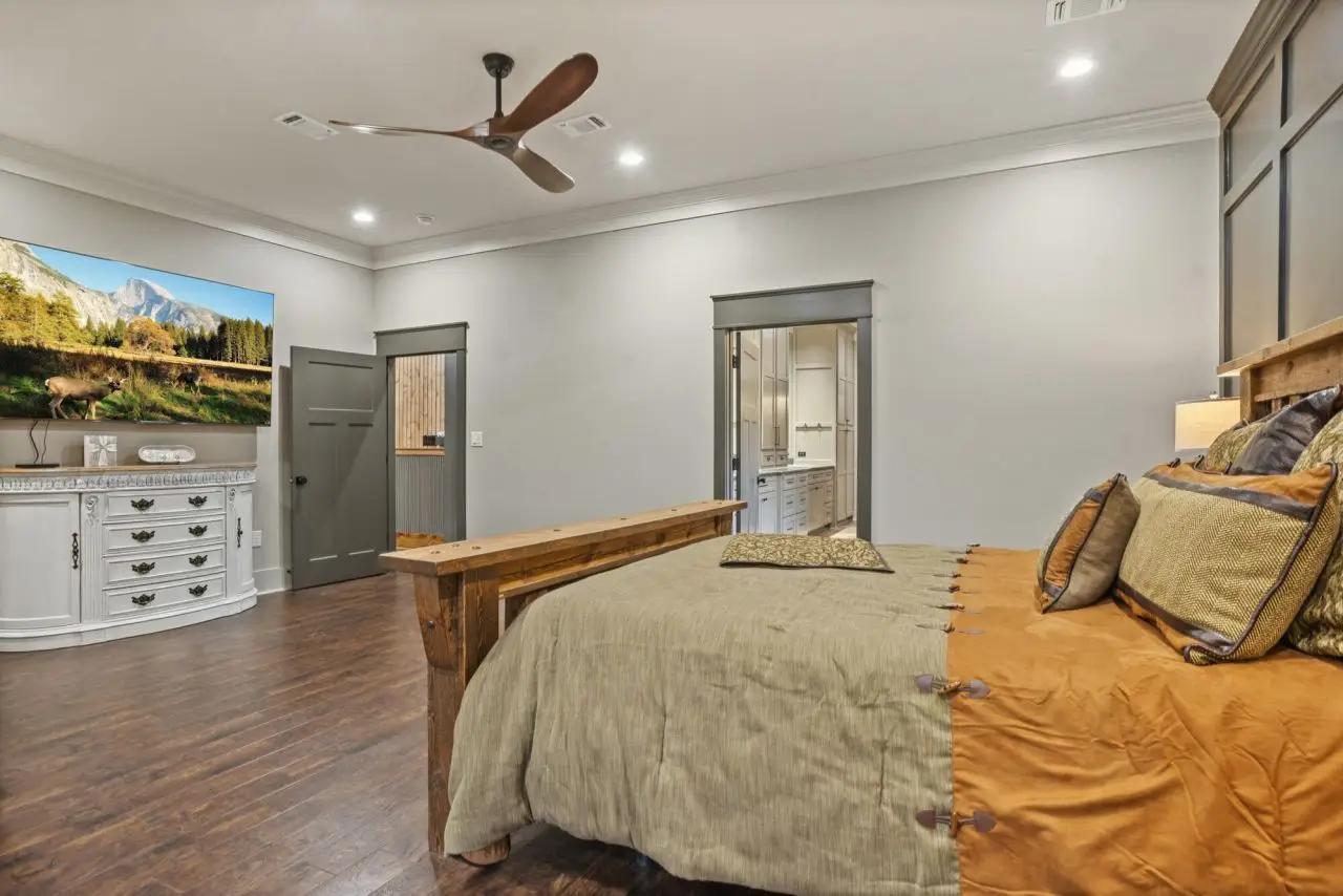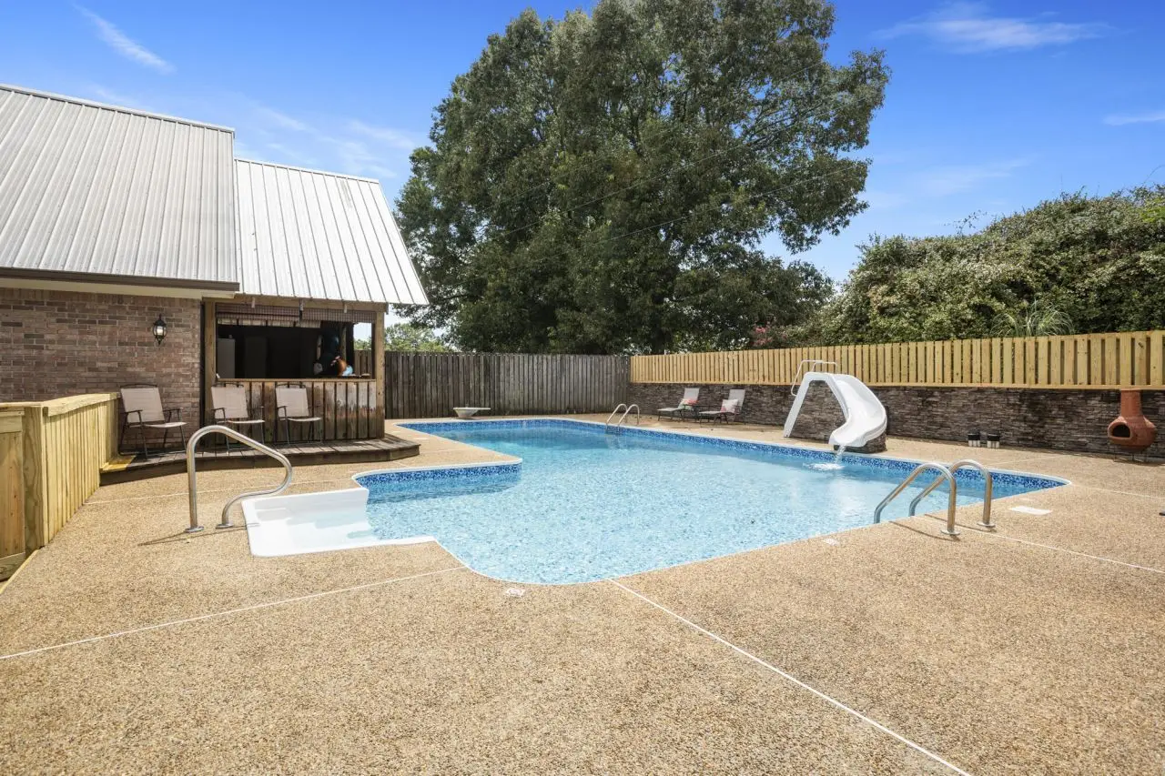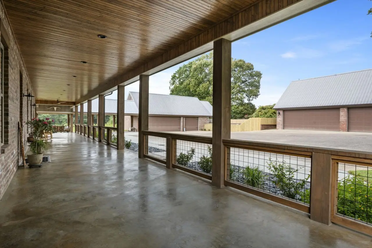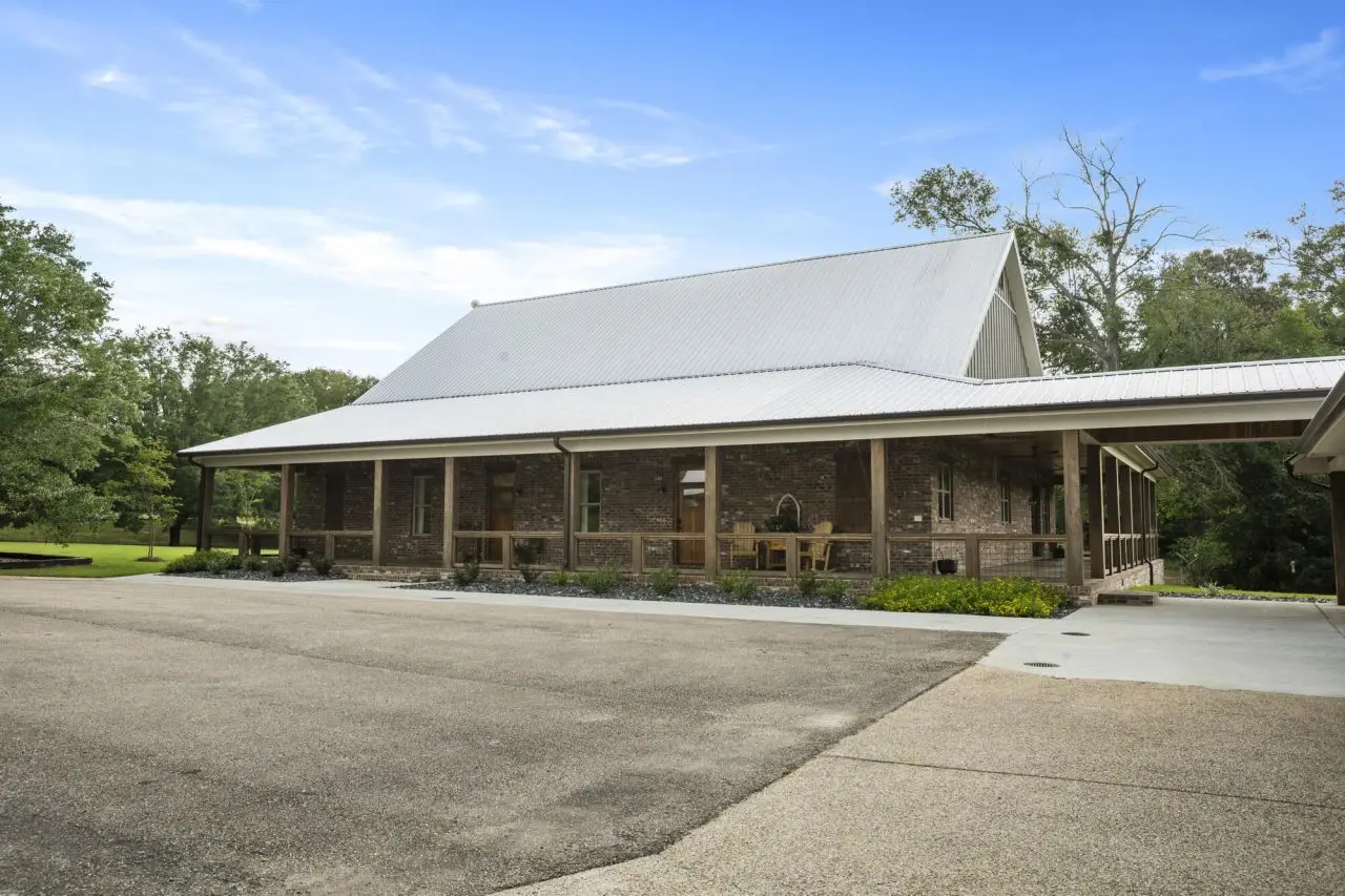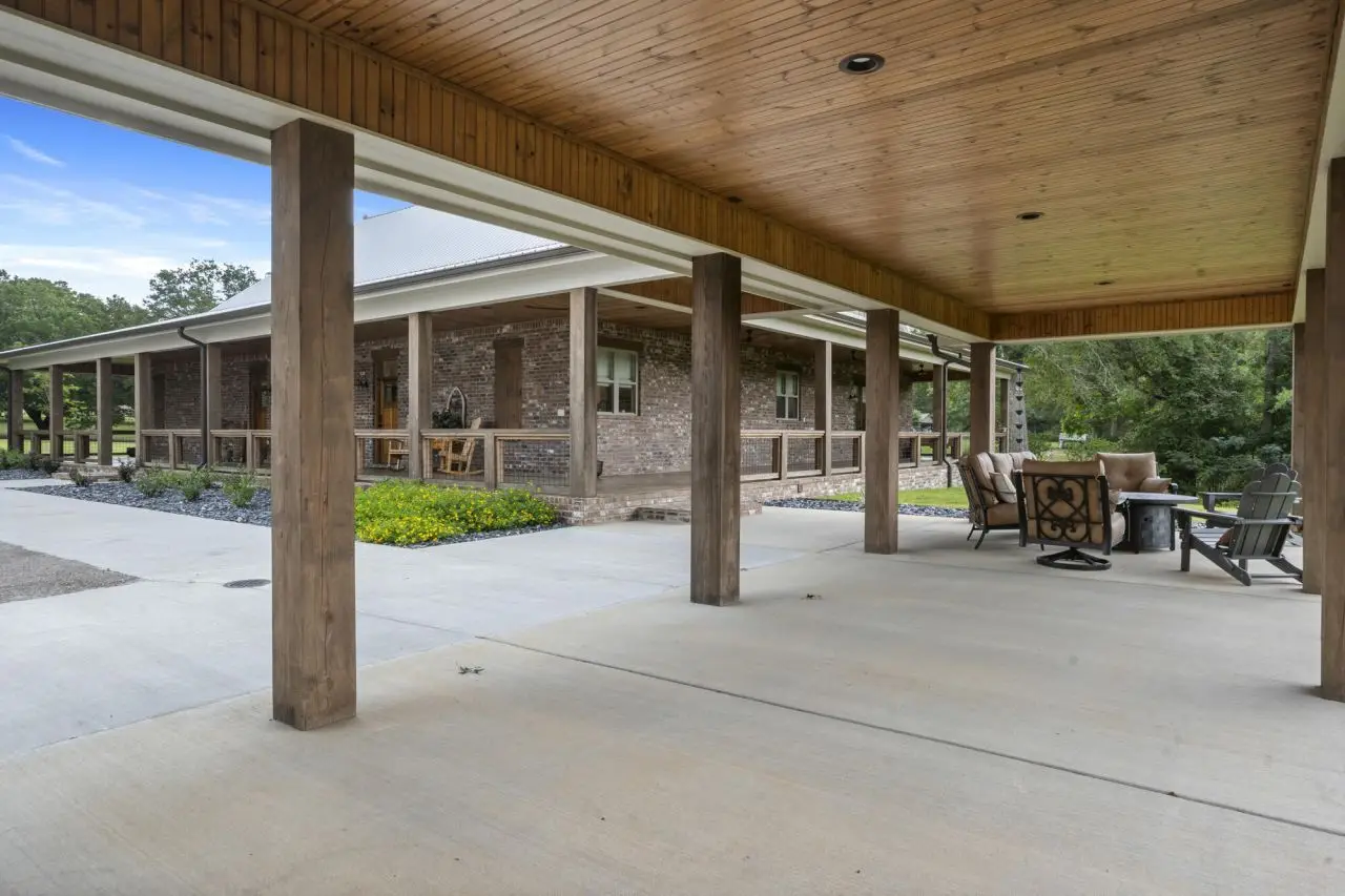 Welcome to refined Southern living at its best. Lined with majestic oaks and set on two peaceful acres, this newly-built custom home is a sanctuary. The oversized wraparound porch was designed with slow mornings and rocking chairs in mind. However, kids will love the rain or shine play space too!This elite home opens into a grand great room with a cathedral ceiling, rich beadboard detailing, and extensive, custom cabinetry. The kitchen is a chef's dream--featuring dual 10-foot islands, shaker cabinetry (including hand-selected stained cypress), and many premium finishes. The walk-in pantry will keep everything in order!Adjacent, the large wet bar showcases a black walnut countertop and two wine coolers. The primary suite brings relaxation including a sitting room highlighted with natural light. The spa-worthy bathroom boasts a therapeutic soaking tub with microbubble air bath and thermal therapy, a zero-entry dual-head shower with body sprayers, and a Kohler Eir heated-seat toilet. Designed with luxury and function in mind, the massive walk-in closet delivers with a chandelier-lit dressing island--ideal for preparing for your next getaway! Also, a dedicated concrete safe room gives you the security you want.Laundry will almost be fun in a utility haven equipped with a Kohler farmstead sink, stylish ceiling fans, long hanging rod, and ample storage! Outside, a sparkling pool invites you to unwind or entertain, with a convenient half bath just steps away. Car enthusiasts and hobbyists will appreciate two detached garages offering a total of 7 vehicle bays and a large, floored attic for more storage! Experience the perfect balance of craftsmanship, modern luxury, and peaceful country living--welcome home.