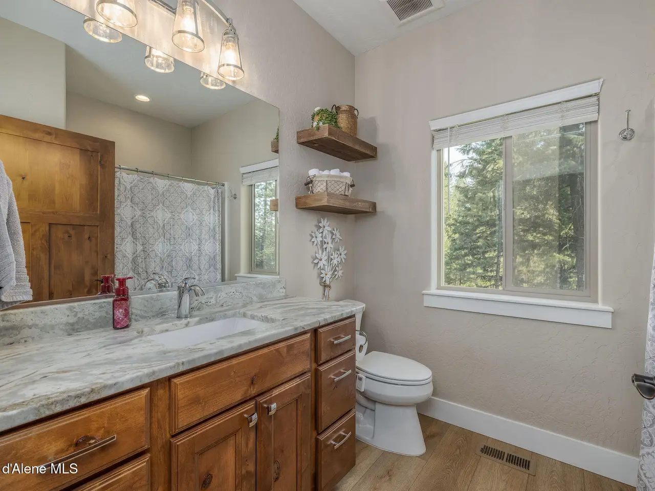 Peaceful Hauser Lake property with refined living await you in this custom 2625 square foot home with 3 bedrooms + bonus rm(4th bedroom), 2 full baths, & 2 half baths. Enjoy lake views from the kitchen, living room, and bedrooms, or relax on the covered deck that faces the Lake - perfect for morning coffee or evening sunsets. The gourmet kitchen features granite countertops, a large island, and opens to a spacious living area with a cozy fireplace. The primary suite includes a private deck & serene views. Outdoors, enjoy wooded privacy, a fenced garden, and dog run on 3.37 acres within a gated community, plus access to a private beach with dock. The heated/cooled bunkhouse is ideal for guests or workspace. A standout 36x40 finished shop features a wood stove, heat, and half bath - an absolute dream for hobbyists or storage. Located just blocks from Embers Pizza, this home combines elegance, comfort, and lifestyle.