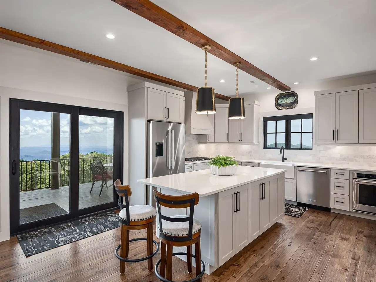 Step into refined mountain living with this like-new, fully renovated retreat offering unparalleled long range, southerly mountain views and timeless mountain modern design. Thoughtfully crafted for comfort and style, this home features a bright open floorplan, main-level living, airy flow to the daylight lower level and a low-maintenance footprint - ideal as a full-time residence or high-end getaway. The interior blends warm wood tones with sleek finishes, creating a contemporary and inviting atmosphere. The kitchen, living, and dining areas flow seamlessly, all oriented toward the panoramic vistas - so every moment feels elevated. Enjoy spacious but manageable square footage, updated from top to bottom with meticulous attention to detail. A rare find: high design, breathtaking views, and outstanding value - all in one turnkey package.