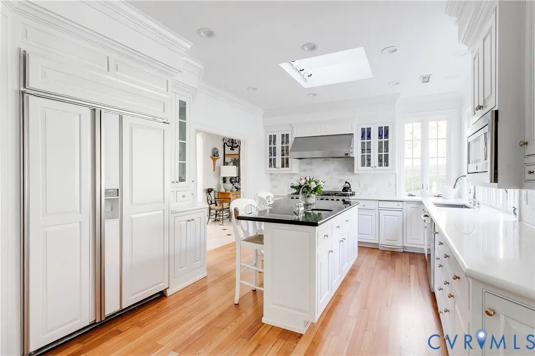 Charming English-style cottage in the heart of Westham, this beautifully expanded home has an impressive two-story addition. An elegant front center hall sets the tone, flanked by a gracious living room with a wood-burning fireplace and a formal dining room. The cook's kitchen features a center island, a wall of windows, commercial 5-star range, Sub-Zero refrigerator, two ovens, and a large pantry. It opens to a bright breakfast area with space for a large dining table, flowing seamlessly into a cozy den with a wood-burning fireplace and built-ins-ideal as a casual family space or playroom right off the kitchen. The kitchen and breakfast room overlook a charming bluestone courtyard surrounded by perennial gardens. The expansive family room addition offers a wood-burning fireplace, wet bar, and French doors that step out to the prettiest lawn for play. A new back entry from the courtyard leads to a generous mudroom/laundry center and first-floor powder room. Off the living room, a glass-wrapped sunroom spans the length of the living areas with great flow, bringing the garden in. The first-floor solarium unites all the main living areas with dramatic ceiling height-an exceptional space for gatherings. Upstairs, the primary suite includes a spacious bedroom with gas log fireplace, large walk-in closet and a spa-like en-suite bath. Three additional bedrooms share a renovated marble hall bath. A delightful third-floor bonus room offers the perfect bunk room, playroom, or private office. The unfinished and waterproofed basement is a great area for storage. The detached two-car garage includes a finished office and an unfinished second floor-an ideal opportunity for a future guest cottage. Lush grounds, gorgeous and private gardens, and a beautiful bluestone entertaining terrace complete this enchanting property. This home is meticulously maintained with exceptional millwork, gracious ceiling heights, and thoughtful details throughout. Easily walk to Stella's, Starbucks and all River Road Shopping Center has to offer!