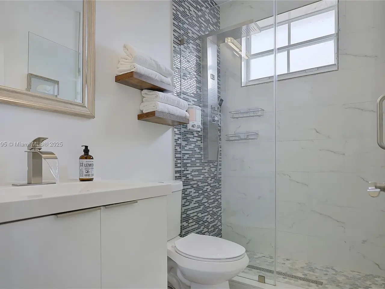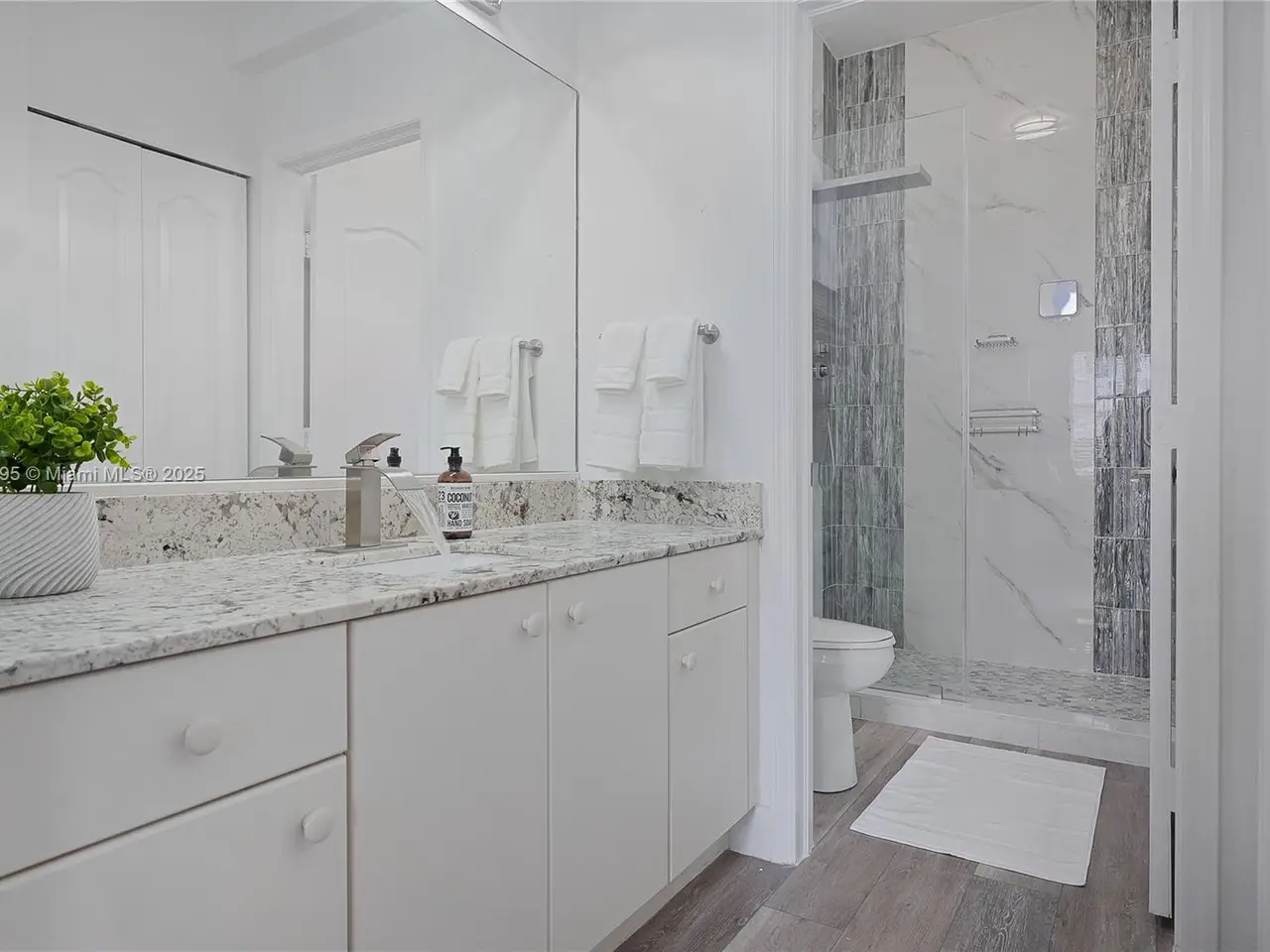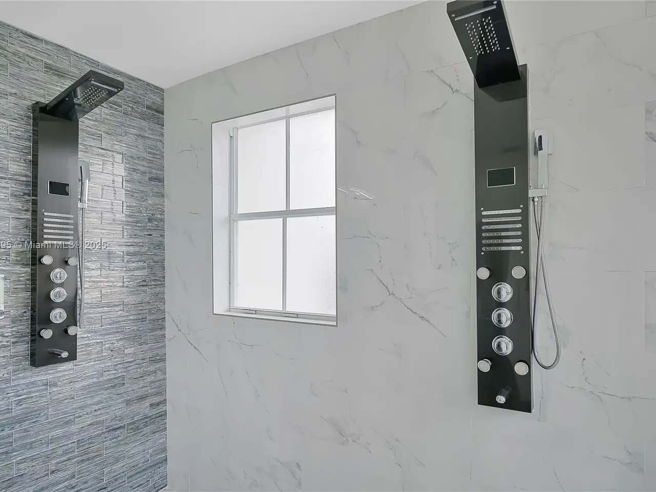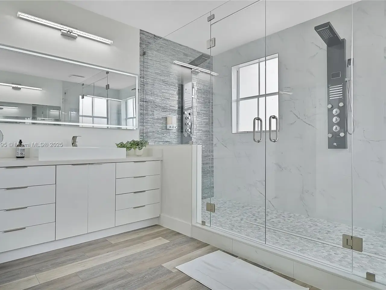 Spa-like primary bathroom with dual-head shower