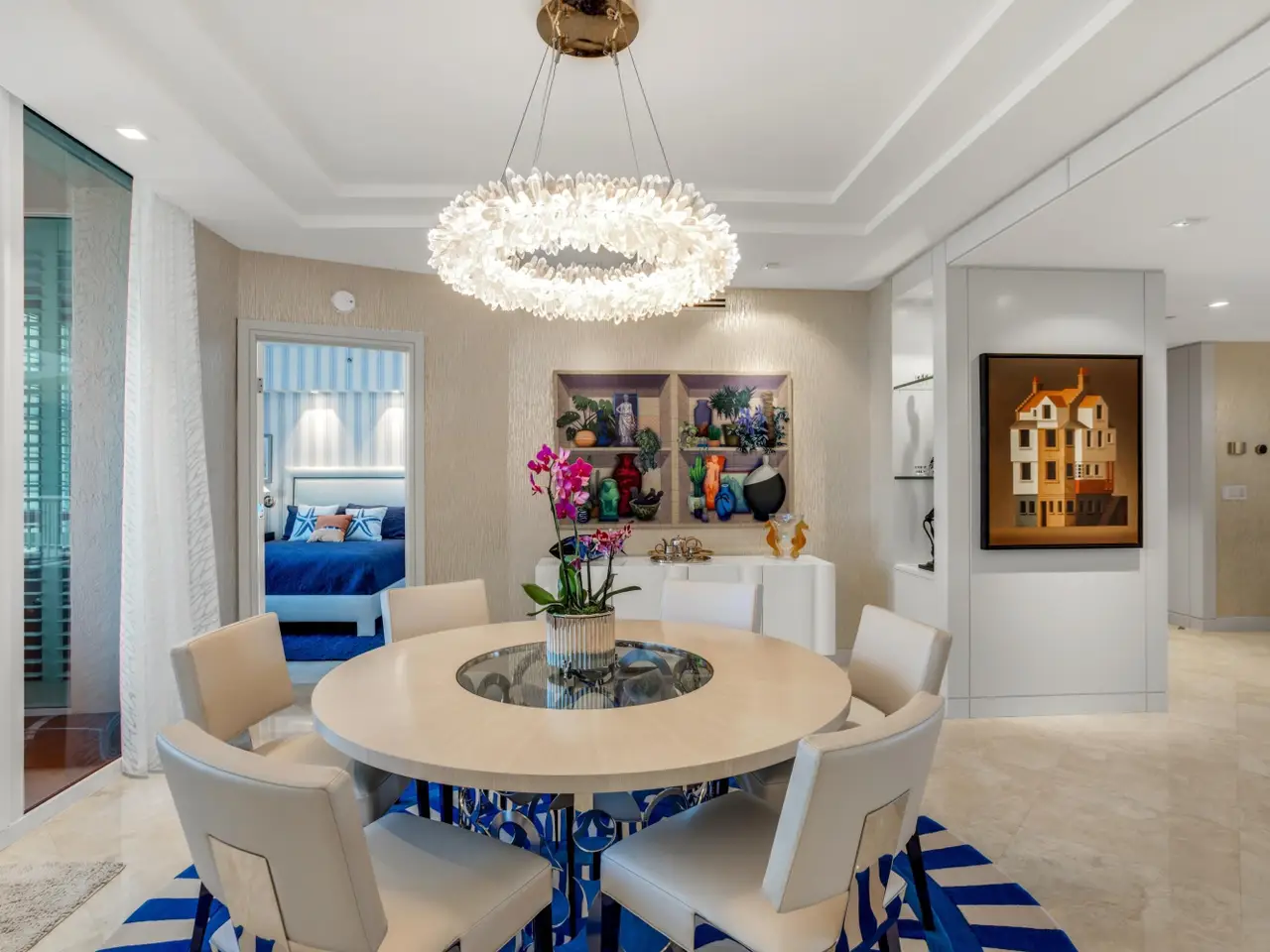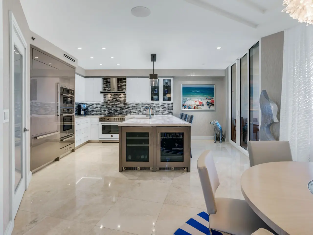 STUNNING 3 BEDROOM 3 BATHROOM AREZZO MODEL WITH COVETED GARAGE PARKING FOR 2 CARS AND AWE-INSPIRING VIEWS! FULLY REMODELED AND READY FOR IMMEDIATE ENJOYMENT! ELEVATOR ENTERS INTO A PRIVATE FOYER WITH DOUBLE GLASS-FRAMED DOORS. GORGEOUS SHADOW-REVEAL MILLWORK, LARGE-FORMAT MARBLE FLOORING, DOUBLE TRAY CEILINGS AND DESIGNER-CURATED WALL COVERINGS. CUSTOM-DESIGNED LIVING ROOM OPENS TO PANORAMIC OCEAN VIEWS, WHILE THE DINING ROOM FLOWS SEAMLESSLY TO AN INTRACOASTAL-VIEW BALCONY. GOURMET KITCHEN WITH CUSTOM CABINETRY, UNDER-LIT QUARTZ COUNTERTOPS, TOP-TIER APPLIANCES INCLUDING WINE AND BEVERAGE REFRIGERATION, AND A SPACIOUS PANTRY. THE SPLIT BEDROOM LAYOUT ENSURES THAT EACH ROOM IS SEPARATELY PLACED FOR OPTIMAL PRIVACY. LUXE PRIMARY SUITE WITH DUAL CLOSETS AND A SPA-LIKE PRIMARY BATH.