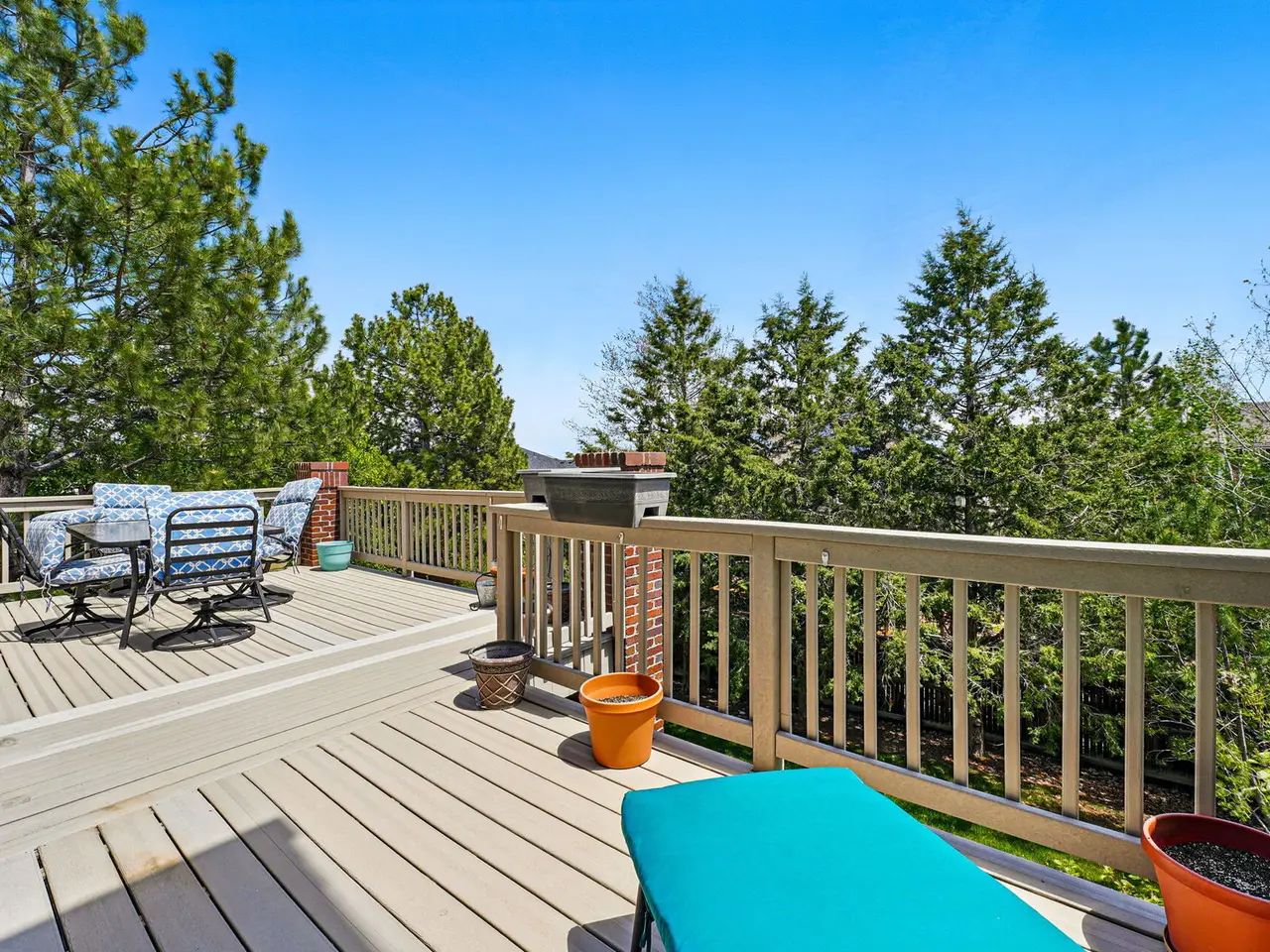 Welcome home to this beautifully updated and spacious 5-bedroom, 5-bathroom two-story residence in the highly sought-after Kentley Hills neighborhood of Highlands Ranch. Situated on a picturesque lot with mature landscaping, stamped concrete walkway, and inviting curb appeal, this home offers the perfect blend of luxury and functionality. The entryway features soaring two-story ceilings and curved staircase, creating a stunning first impression. The main level boasts a sunlit living room with a bay window, a formal dining room, and a generous kitchen complete with a newly refinished white cabinets, center island, granite countertops, walk-in pantry, separate dining nook, and new stainless steel double ovens and gas cooktop. Sliding doors off the kitchen open to a spacious deck. Relax in the cozy family room with a fireplace, or utilize the private main-floor study, which also serves well as a sixth bedroom with an adjacent 3/4 bath. A convenient laundry room completes the main level. Upstairs, the expansive primary suite features a luxurious five-piece bath with updated cabinetry and a large walk-in closet. Three additional bedrooms include a shared bath for two and a private en-suite for the third. The professionally finished walk-out basement adds incredible living space, including a media room, additional bedroom, 3/4 bath, ample storage, and access to a private patio with a hot tub, all set against serene, mature landscaping. Several recent updates enhance its appeal-including refinished hardwood floors, newly installed carpet, new interior paint, refinished white kitchen and bathroom cabinets, new quartz countertops in bathrooms, and a refinished staircase. Spacious three-car garage. This exceptional home offers comfort, space, and style in one of Highlands Ranch's most sought-after communities.