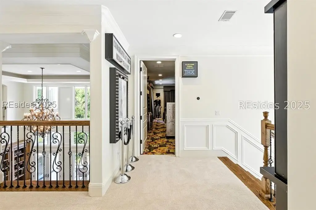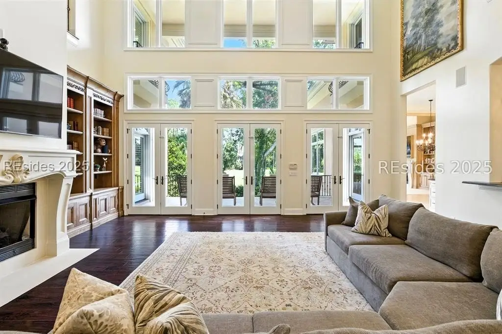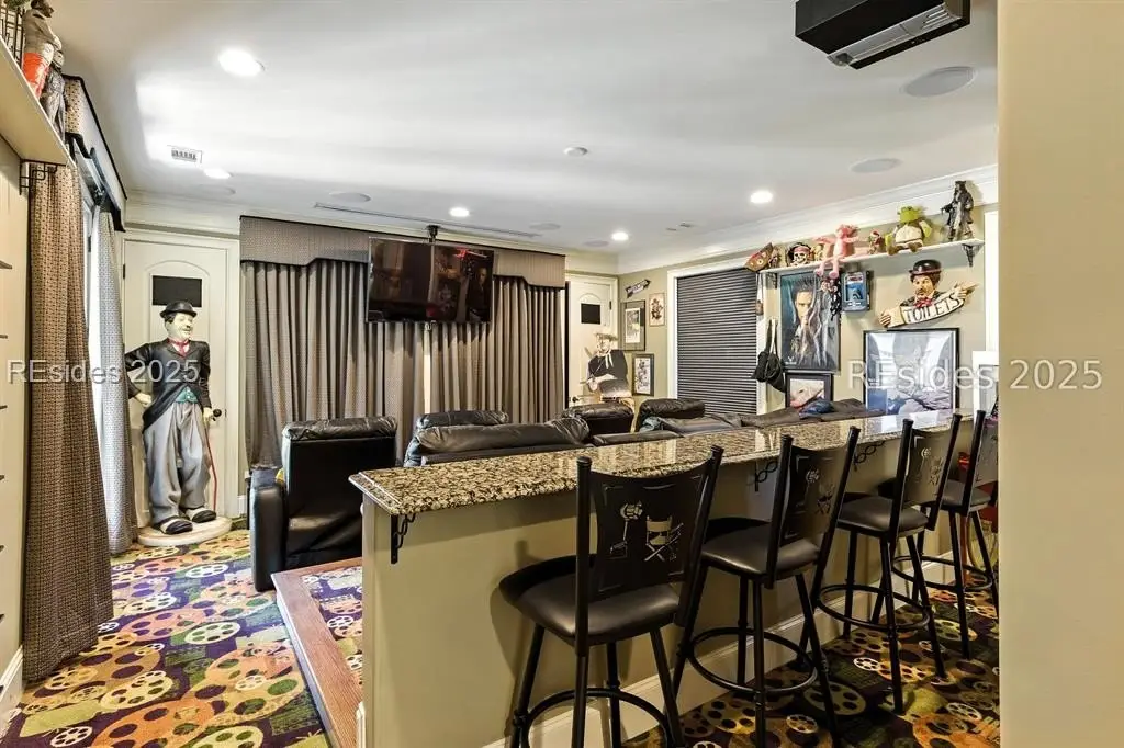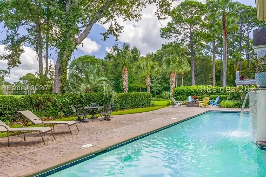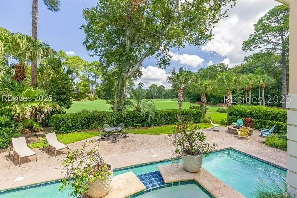 Welcome to this exceptional estate in Wexford, blending grand design with everyday comfort and luxury. A dramatic two-story foyer sets the tone as you enter, leading to a spacious living room, formal dining room with elegant padded acoustic silk wallpaper, and a private office with its own half bath. The heart of the home is a beautifully open kitchen, family, and breakfast area perfect for both casual living and entertaining. The expansive primary suite is a true retreat, offering dual walk-in closets, a separate lighted shoe closet, and a built-in safe all with long fairway views just beyond the 7th green. Also on the main level are a second powder room and a spacious laundry. Upstairs, you'll find three large en-suite bedrooms, a second laundry room, and a fully equipped home theater with a bar, as well as a third half-bath. The lower level offers fun and functionality, featuring a fully finished rec and play area, home gym, full bath, generous storage, an oversized 3-car garage, and 3 stop elevator. Step outside to the screened-in porch with a bar and built-in grill ideal for poolside entertaining. The private pool and fire pit area complete this serene Lowcountry setting. This home truly has everything. Wexford offers world-class amenities, including golf, tennis, pickleball, croquet, a private marina, two pools, and more. One of Hilton Heads most exclusive gated communities.