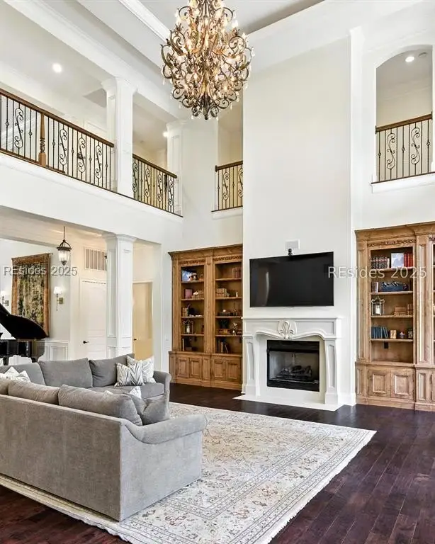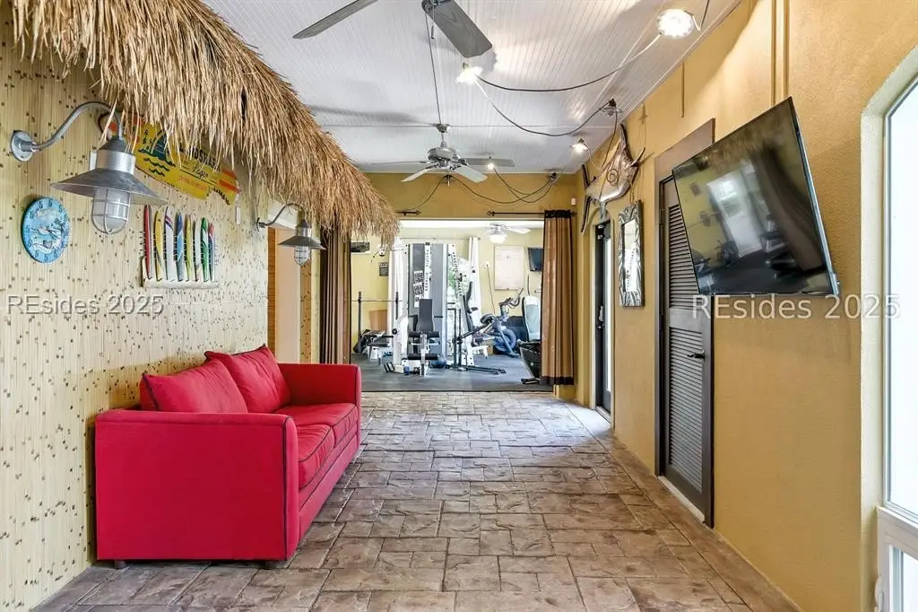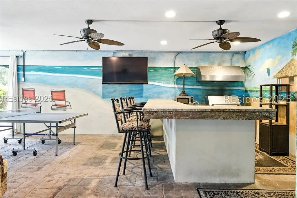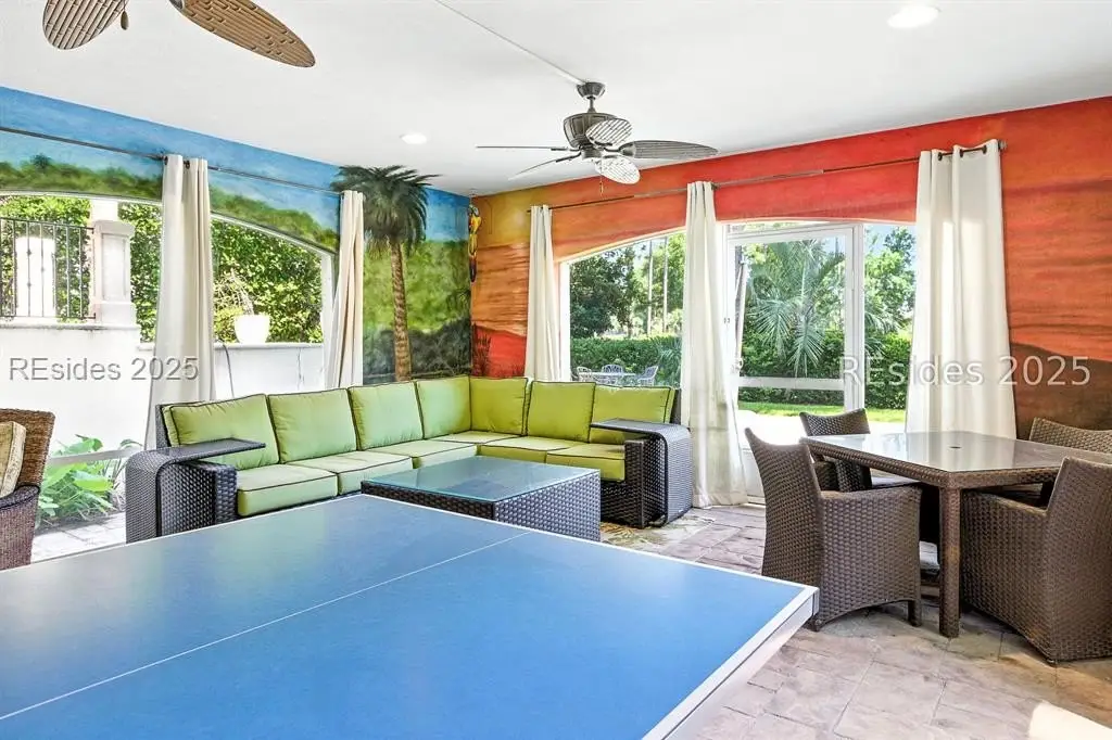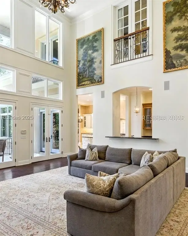 Welcome to this exceptional estate in Wexford, blending grand design with everyday comfort and luxury. A dramatic two-story foyer sets the tone as you enter, leading to a spacious living room, formal dining room with elegant padded acoustic silk wallpaper, and a private office with its own half bath. The heart of the home is a beautifully open kitchen, family, and breakfast area perfect for both casual living and entertaining. The expansive primary suite is a true retreat, offering dual walk-in closets, a separate lighted shoe closet, and a built-in safe all with long fairway views just beyond the 7th green. Also on the main level are a second powder room and a spacious laundry. Upstairs, you'll find three large en-suite bedrooms, a second laundry room, and a fully equipped home theater with a bar, as well as a third half-bath. The lower level offers fun and functionality, featuring a fully finished rec and play area, home gym, full bath, generous storage, an oversized 3-car garage, and 3 stop elevator. Step outside to the screened-in porch with a bar and built-in grill ideal for poolside entertaining. The private pool and fire pit area complete this serene Lowcountry setting. This home truly has everything. Wexford offers world-class amenities, including golf, tennis, pickleball, croquet, a private marina, two pools, and more. One of Hilton Heads most exclusive gated communities.
