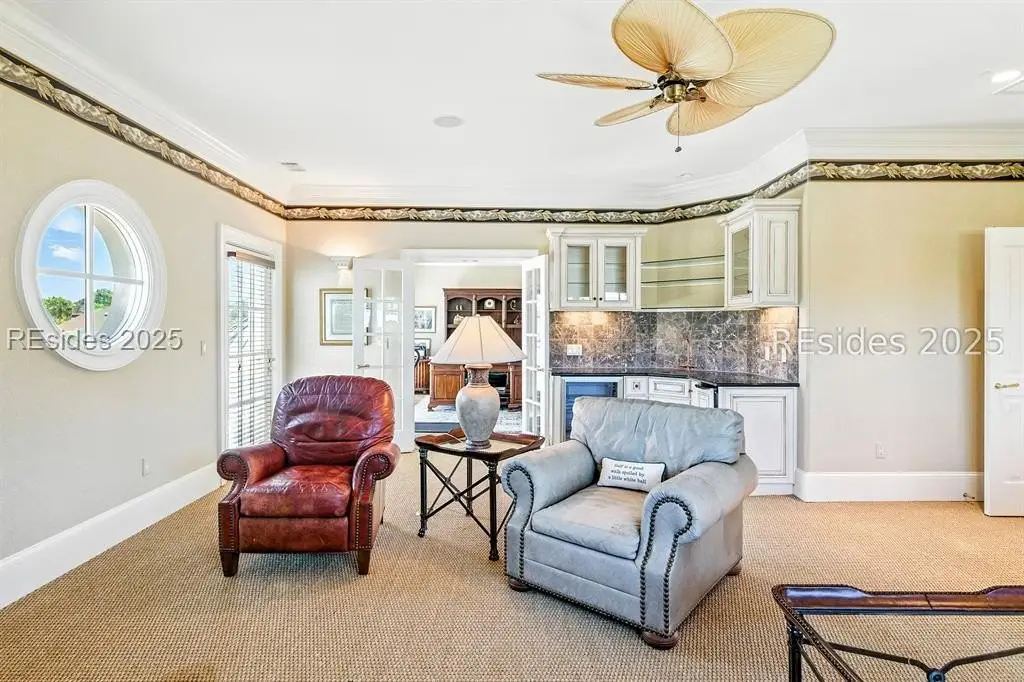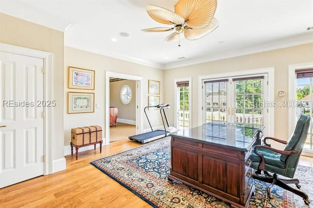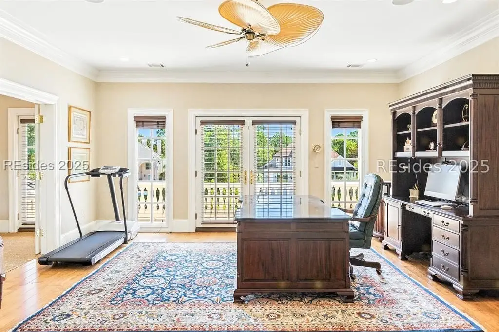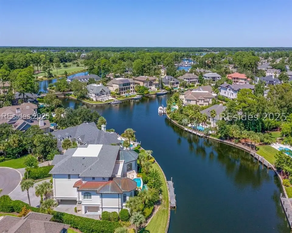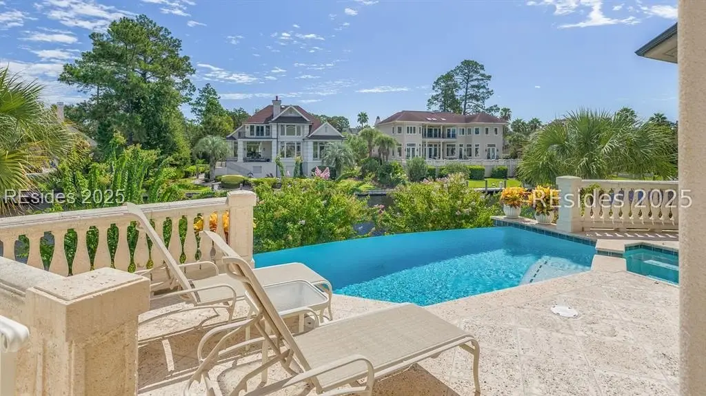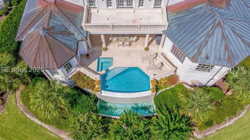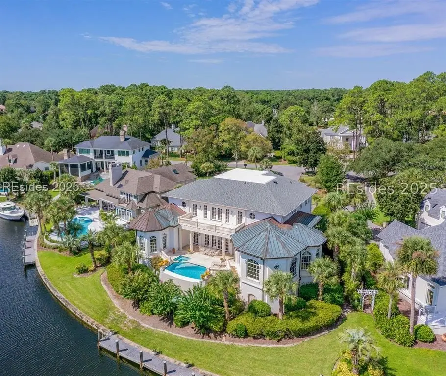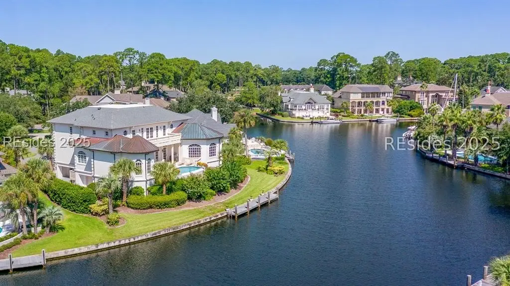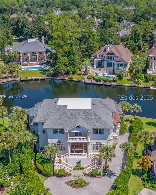 This extraordinary Wexford residence combines timeless craftsmanship, elegant design, and unmatched harbour views in one of Hilton Head's most prestigious private communities, all with your own private 70' boat dock! Built of concrete and steel, the home showcases exceptional construction quality and refined details throughout. A grand foyer with a floating staircase sets the tone, leading to formal living and dining rooms with intricate millwork, arched entries, and custom moldings. A private office/parlor offers a quiet retreat, while a wet bar with wine refrigeration enhances the homes entertaining appeal. Panoramic harbour views flood the open kitchen, family room, and breakfast area with natural light, making the space feel as if you are suspended above the water. Outdoor living is equally impressive, featuring a raised infinity-edge pool set against the dramatic harbour backdrop. On the main level, the spacious primary suite features a sitting area, expansive bath, and large closet, creating a private sanctuary. Upstairs, two versatile multipurpose rooms connect seamlessly, one with a bar with a beverage refrigerator and an icemaker serving both spaces. From here, step onto the upper harbour front deck to enjoy stunning views. Three ensuite bedrooms complete the upper level, one with its own deck access. Additional highlights include a cedar closet, a 3-stop elevator, and an expansive finished basement with space for 4 cars, a golf cart, workshop, and generous storage. As a Wexford resident, you'll enjoy premier amenities including a private marina, championship golf, tennis and pickleball courts, croquet, clubhouse dining, a resort-style pool complex, and a vibrant year-round social calendar. Exciting community improvements are also underway: a newly expanded clubhouse and a brand-new Harbour Center are scheduled for completion in April 2026. This is more than a home, it's an opportunity to embrace the elevated lifestyle that makes Wexford one of Hilton Head's most distinguished communities.