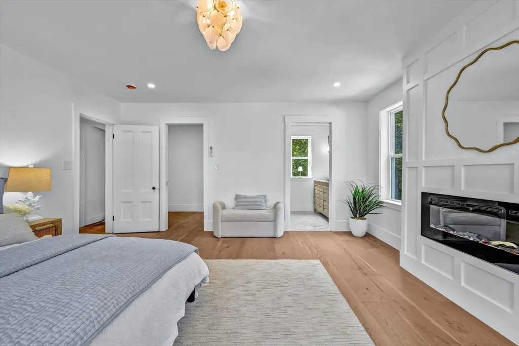 Stunning renovated Hingham farmhouse that perfectly blends historic charm with modern luxury. The open-concept addition showcases a gourmet kitchen with 8.6 ft quartz island, integrated appliances, and seamless flow to dining and living areas. Four fireplaces, a sun-filled study, and library offer multiple living spaces, while French doors open to a porcelain-paved patio for effortless indoor-outdoor entertaining. Five bedrooms include a luxurious primary suite with fireplace, radiant floor heat, oversized shower, and double vanity, plus convenient second-floor laundry. Two staircases enhance flow, and 8.5" wide-plank white oak flooring, black-exterior windows, and custom millwork elevate the design. Modern systems include central A/C and mini-split heating/cooling. Just 0.8 miles to Hingham train stations with sidewalk access to town centerùideal for commuting and coastal living. Close to downtown shops, dining, harbor, and parks.