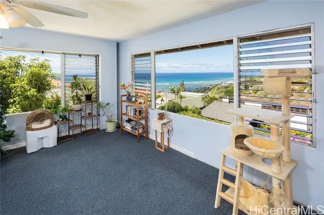 Vue imprenable sur l'océan depuis cette maison de deux étages, comprenant 5 chambres et 4 salles de bain. Nichée dans une impasse, baignée par la brise des montagnes, elle est à seulement 10 minutes en voiture de Kahala. Toiture et gouttières neuves. Un emplacement idéal : à quelques minutes des écoles, des parcs, des centres commerciaux et des transports en commun ! Une vue imprenable pour se ressourcer et se détendre après une longue journée. Cette immense maison, d'une superficie intérieure de 350 m², a le potentiel de satisfaire un large éventail d'acheteurs : propriétaires-occupants, propriétaires-bailleurs, investisseurs-locataires/investisseurs à long terme. La maison est actuellement louée 6 000 $ par mois. Cuisine équipée à l'étage, bar avec réfrigérateur non conforme au rez-de-chaussée. Réservez votre visite dès aujourd'hui.