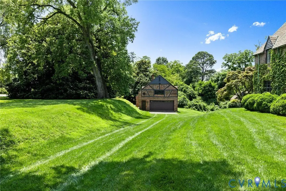 Majestically mounted high above the riverbank where the James and Appomattox join at historic City Point, this Tudor Revival built in 1929 could easily be mistaken for a 500-year-old-medieval manor house. A showplace of architectural distinction designed by noted architect Carl Lindner, the 5 bedroom, 3.5 bath house is constructed of irregularly shaped bricks in nuanced colors and fanciful patterns giving it an air of antiquity. Situated on nearly three acres, the house overlooks a rolling lawn, part of which, served as a wagon road to Petersburg during the Civil War. The rear of the property has 77 feet of waterfront with arresting views. The interior of this 4,075 SF house is as magical as the exterior with elaborate mouldings, arched doors and long, narrow windows. The outbuildings--a folly, boathouse and 2-story, 5 car-garage--are whimsical complements to the main house, echoing its Tudor vibe. The first floor has a living room, dining room, kitchen, pantry, river room, and family room. On the second floor are four bedrooms, including a primary suite, and a charming housekeeper's quarters with a fifth bedroom and third full bath. This sprawling landmark is only 20 minutes from downtown Richmond and 45 minutes from Williamsburg. Nearby are the Beacon Theatre, a marina, and the National Battlefield Park at City Point.