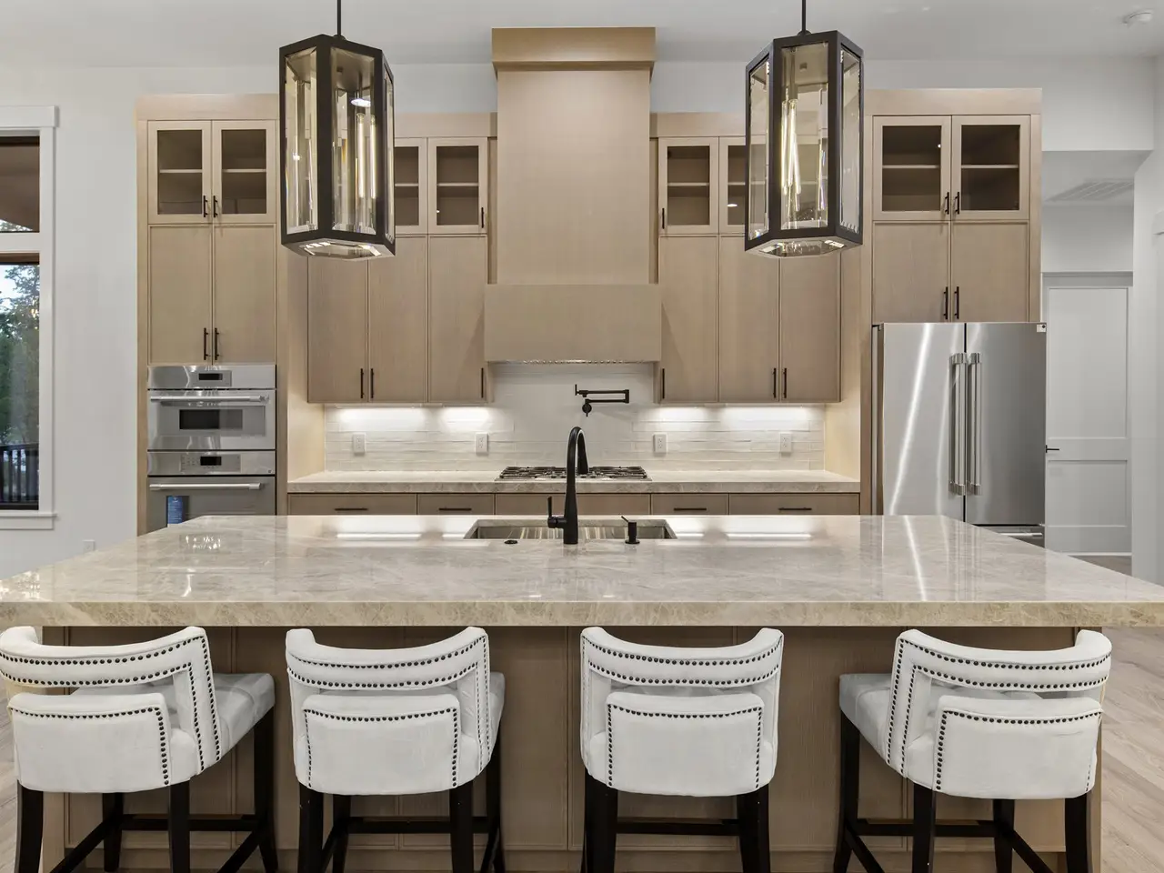 • Exquisite Crystal Quartz countertops in chef's kitchen