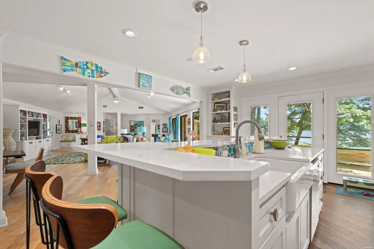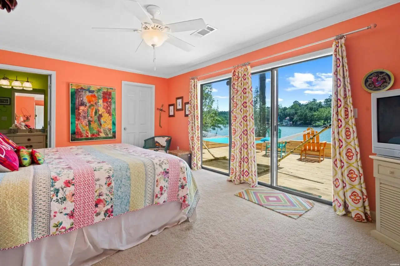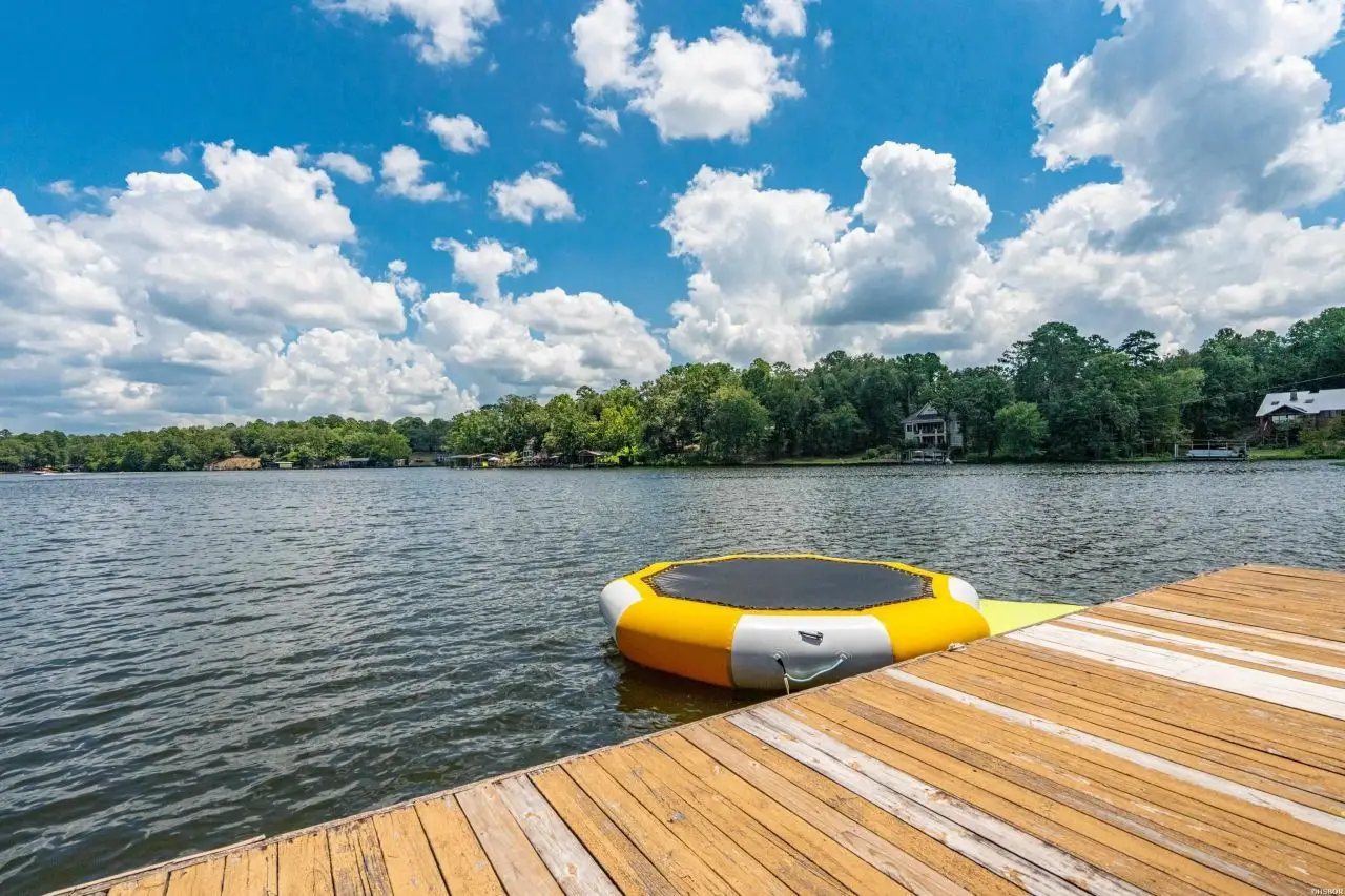 Welcome to your dream lake retreat! This beautifully designed 4-bedroom, 3.5-bathroom lake home offers an open-concept living, kitchen, and dining area, perfect for entertaining or relaxing. As you enter you will immediately be drawn to the lake views! The vaulted ceilings and large living area create a cozy family vibe just waiting for a movie night! This home features a bright and cheerful kitchen designed for both everyday living and entertaining. With vibrant fun finishes, ample counter space, and a gas cooktop, it's the heart of the home - perfect for hosting family and friends. Right off the kitchen you will enjoy the convenience of a wet bar, ideal for serving up refreshments after a day on the water. The spacious walk-in pantry offers plenty of storage, keeping your kitchen organized. In addition to the four spacious bedrooms, the home features two versatile bonus rooms currently used as additional bedrooms?ideal for a home office, exercise room, or extra guests. With dual master suites and two separate living areas on opposite sides of the home, privacy and comfort are thoughtfully considered throughout. The largest master bedroom features an ensuite with WIC, soaking tub, separate walk-in shower and double vanities. Additional conveniences include two laundry areas, making daily routines and guest stays seamless. The home generator will keep everything running smoothly, as well. Enjoy quality time in the game room, or unwind on the large screened-in porch after dinner and listen to the crickets as the sun sets. You can also step outside to a generous deck that spans the backside of the home, offering uninterrupted views of the lake. This property has an impressive lake frontage that spans over 350 feet. The covered double dock with lift and swim dock ensures you're ready for endless lake adventures. Cozy up in the fall for bonfires on the custom built stone patio with firepit. Whether you're seeking a full-time residence or a weekend escape, this home delivers comfort, versatility, and breathtaking views at every turn.