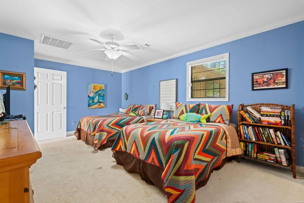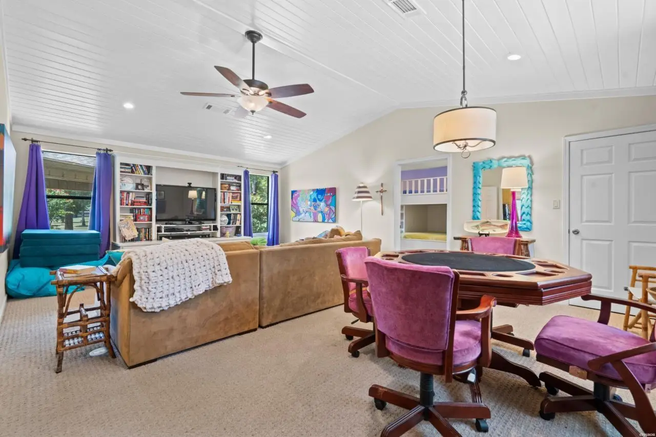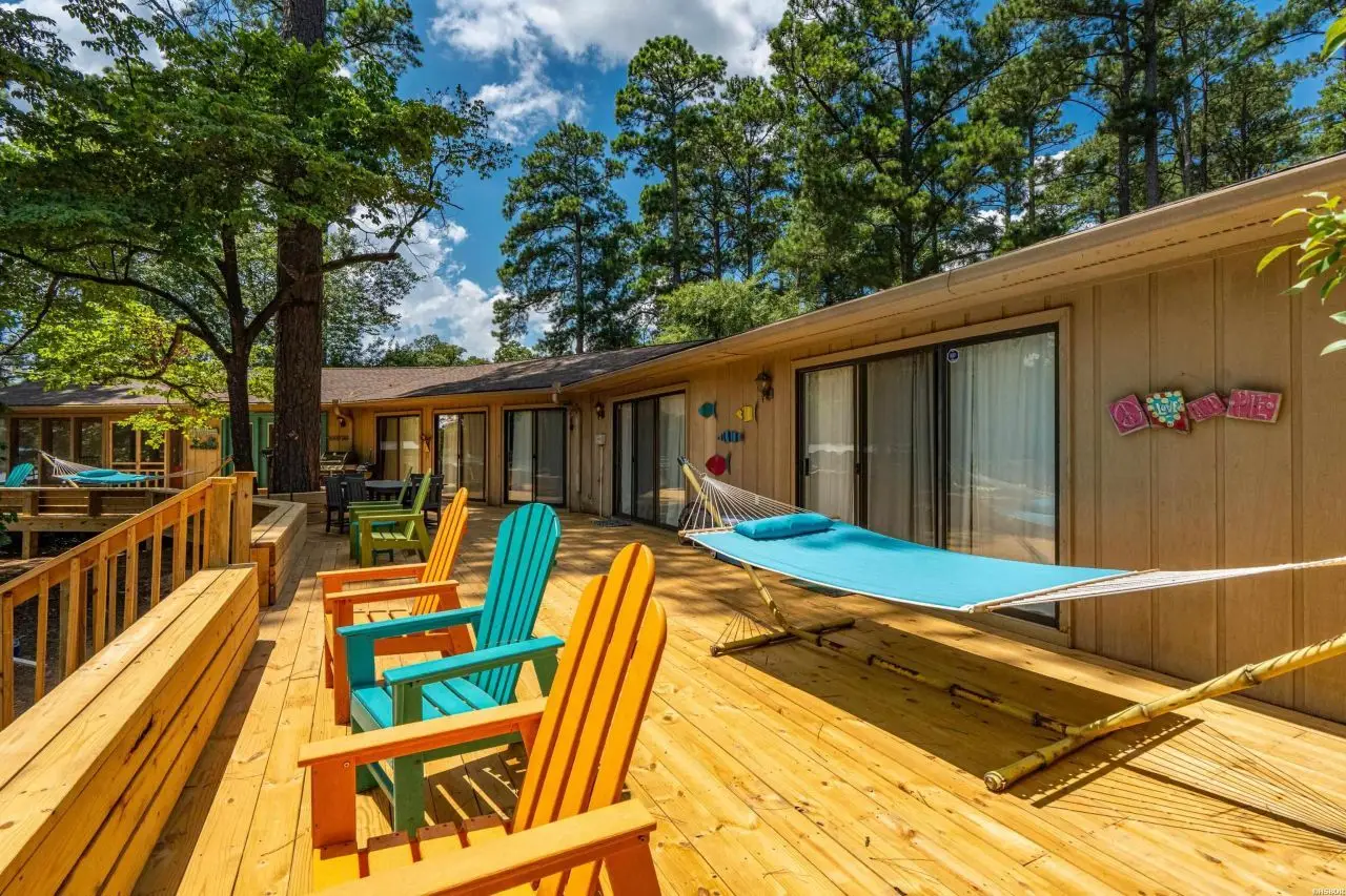 Welcome to your dream lake retreat! This beautifully designed 4-bedroom, 3.5-bathroom lake home offers an open-concept living, kitchen, and dining area, perfect for entertaining or relaxing. As you enter you will immediately be drawn to the lake views! The vaulted ceilings and large living area create a cozy family vibe just waiting for a movie night! This home features a bright and cheerful kitchen designed for both everyday living and entertaining. With vibrant fun finishes, ample counter space, and a gas cooktop, it's the heart of the home - perfect for hosting family and friends. Right off the kitchen you will enjoy the convenience of a wet bar, ideal for serving up refreshments after a day on the water. The spacious walk-in pantry offers plenty of storage, keeping your kitchen organized. In addition to the four spacious bedrooms, the home features two versatile bonus rooms currently used as additional bedrooms?ideal for a home office, exercise room, or extra guests. With dual master suites and two separate living areas on opposite sides of the home, privacy and comfort are thoughtfully considered throughout. The largest master bedroom features an ensuite with WIC, soaking tub, separate walk-in shower and double vanities. Additional conveniences include two laundry areas, making daily routines and guest stays seamless. The home generator will keep everything running smoothly, as well. Enjoy quality time in the game room, or unwind on the large screened-in porch after dinner and listen to the crickets as the sun sets. You can also step outside to a generous deck that spans the backside of the home, offering uninterrupted views of the lake. This property has an impressive lake frontage that spans over 350 feet. The covered double dock with lift and swim dock ensures you're ready for endless lake adventures. Cozy up in the fall for bonfires on the custom built stone patio with firepit. Whether you're seeking a full-time residence or a weekend escape, this home delivers comfort, versatility, and breathtaking views at every turn.