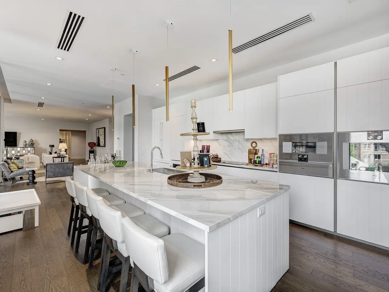 Located in the heart of Upper Kirby, the Giorgetti Houston offers an unparalleled lifestyle surrounded by luxury retail, acclaimed restaurants, and world-class art galleries. With only 32 exclusive residences and concierge service, this boutique building ensures comfort, and sophistication. Amenities include hot and cold plunge pools, dog park and pet washing station, well-equipped fitness center, beautiful landscaping, and private sitting areas. Unit #402 is a spacious corner residence with 3 bedrooms and 3.5 baths, designed with an open-concept layout that flows into a private loggia featuring an outdoor kitchen and double-sided fireplace. Premium finishes include Listone Giordano hardwood flooring, sleek Giorgetti cabinetry, Quartz Italiana countertops, and Gaggenau appliances. Expansive windows, high ceilings, stunning chef’s kitchen, spa-like primary bath, 2 reserved parking spaces, and a private storage unit complete this exceptional residence. All per seller.