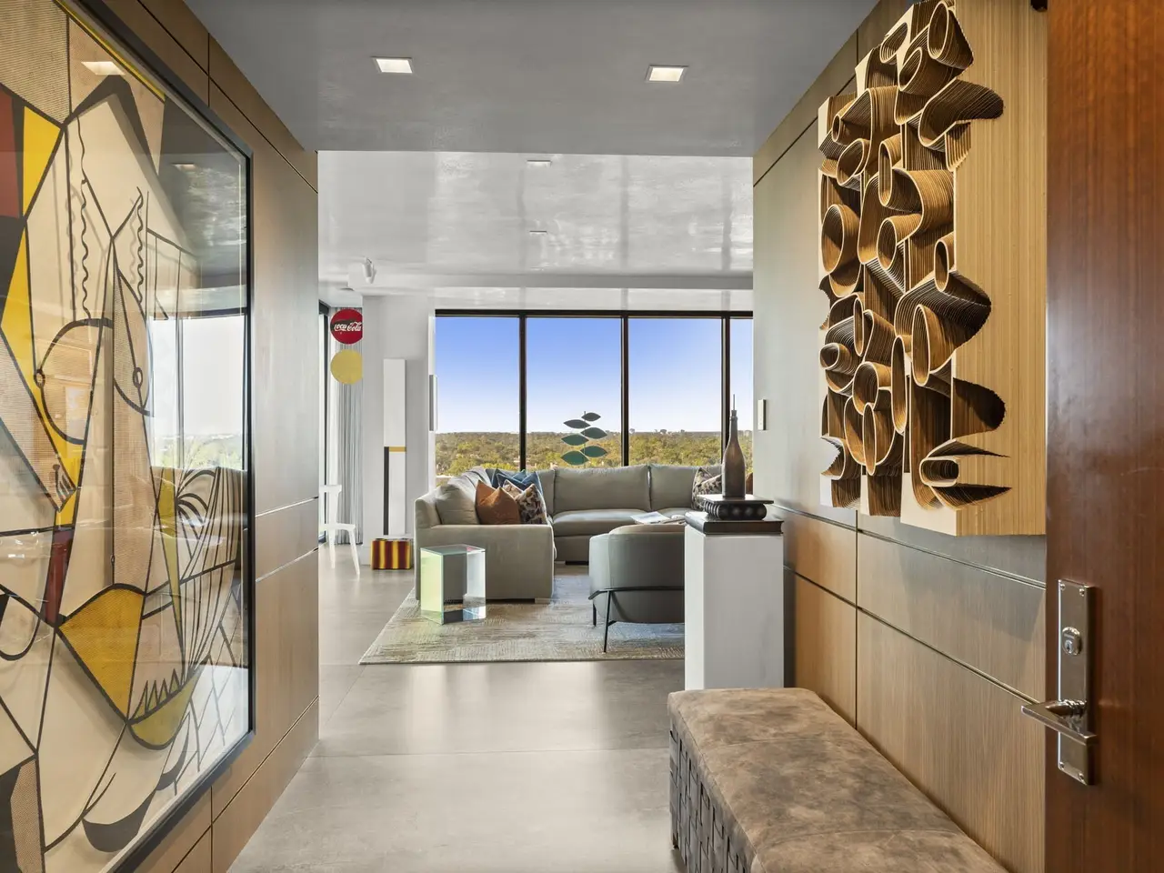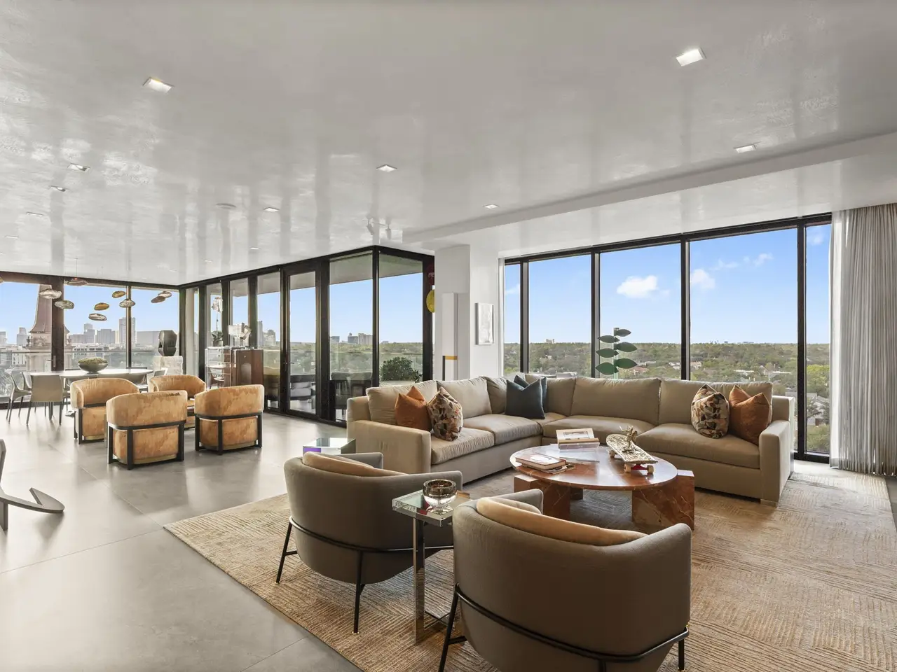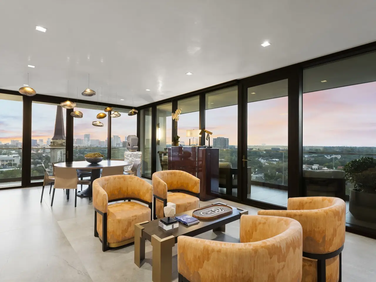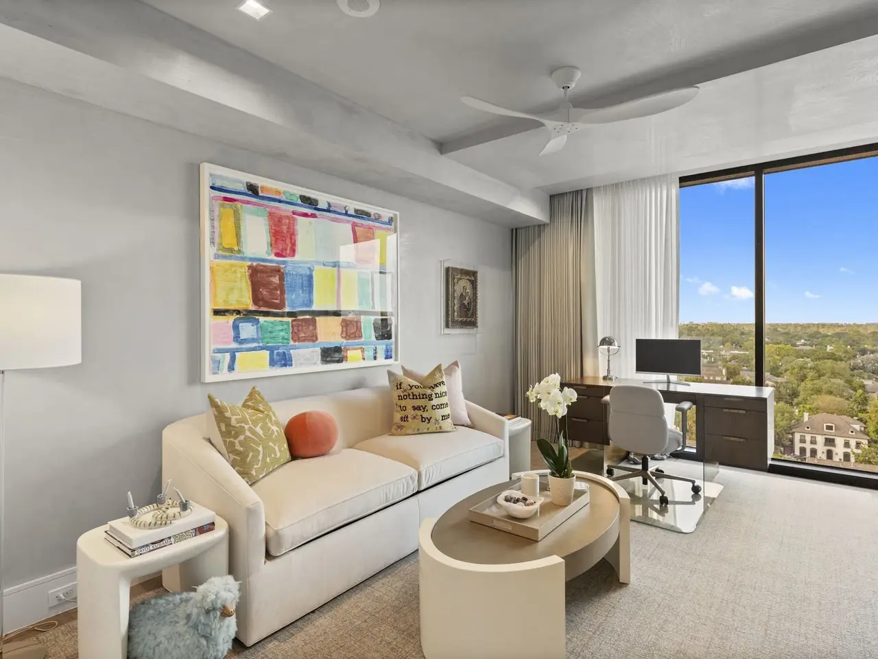 Discover unparalleled luxury in this extensively renovated residence—the largest 2-BR plan in prestigious The River Oaks. Coveted NW corner offers breathtaking, unobstructed views over River Oaks treetops, Galleria & Downtown, with soft indirect northern light, stunning sunsets, and a 303sf balcony for outdoor living. Inside: Segreto plaster walls/ceilings, fumed white-oak millwork with brass inlay, Dekton (ultra-durable luxury surface) floors/counters, Poggenpohl cabinetry, Gaggenau appliances, Galley workstation, and quartzite bar with wine cooler. Lutron HomeWorks system w/ Palladiom keypads and shades, designer hardware, custom art lighting. Expansive primary suite features a sitting area, boutique closets, and a Dekton-clad spa bath. The River Oaks offers five-star amenities: valet, concierge, resort-style pool, outdoor kitchens, yoga/Pilates studio, gym, massage room, pet spa, dog park, two guest suites.