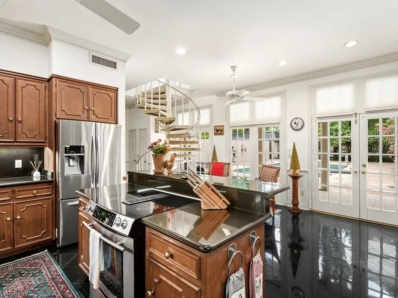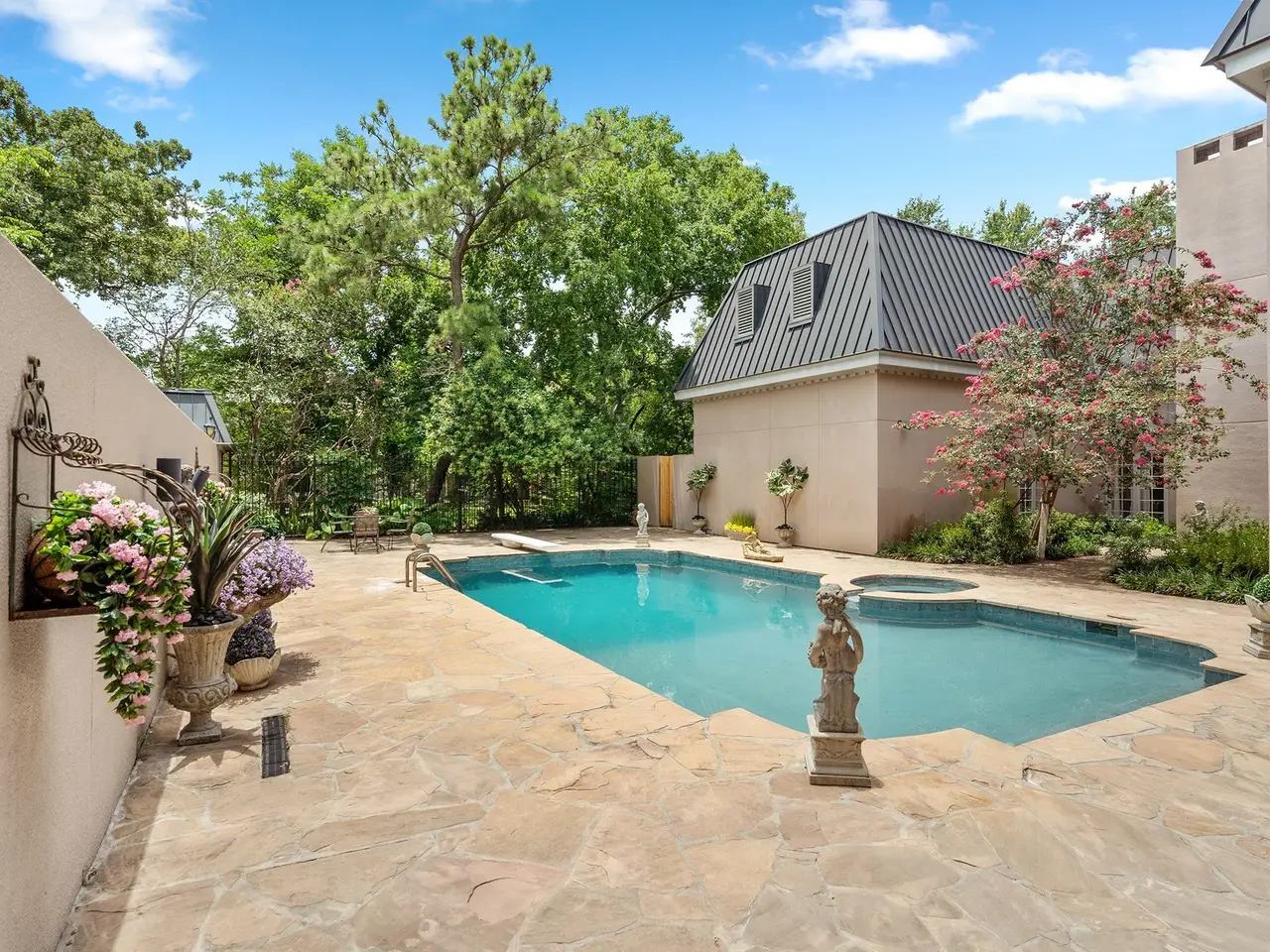 Stately, two story traditional home on a large 26,350 sqft(per HCAD) lot, ready for transformation. Expansive primary bedroom down with dual bathroom and closets. Formals, den, wet bar/butler's pantry, wine room with storage closet. Kitchen area has a large walk-in pantry, utility room, desk area and room for a dining table. Two staircases. Three bedrooms up, all with ensuite baths. Large game room(4th bedroom) up. Extra room up, could be home office/study. Swimming pool. Two driveways, enter and exit on Rocky River or Sage Rd. Parking court, 2 car garage, 2 car carport, extra parking. Private courtyards. Being sold in present condition. No repairs will be done. This is an opportunity to customize or create your dream home. All info per seller