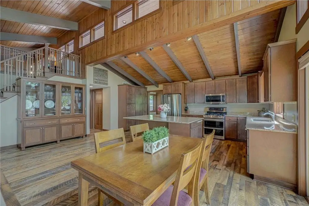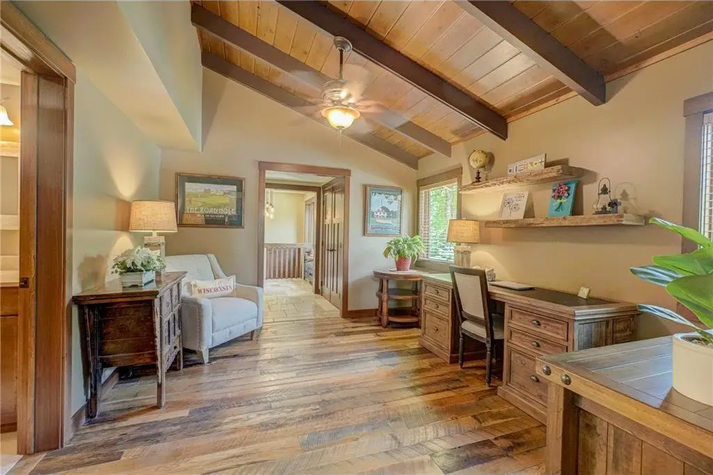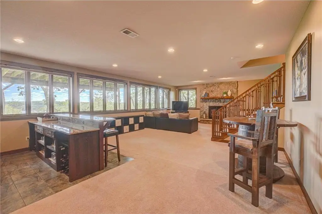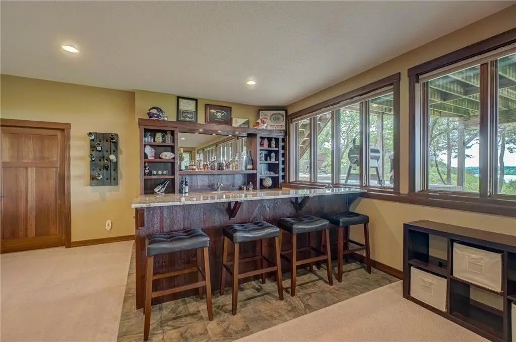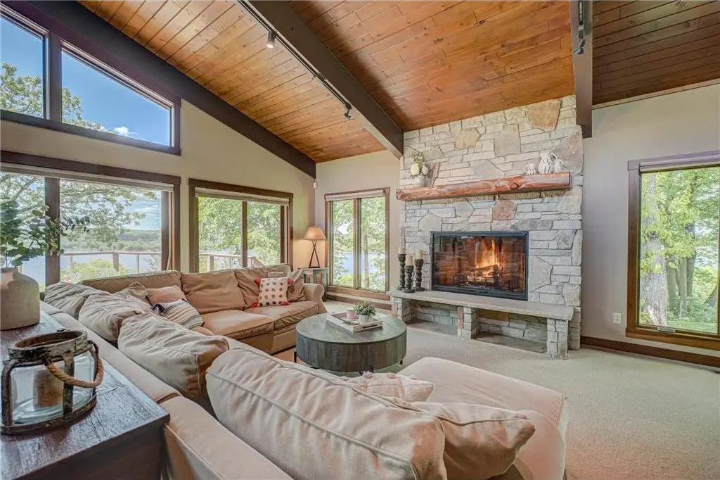 Welcome to one of the most extraordinary private retreats on the St. Croix River—where timeless rustic elegance meets unmatched riverfront living. Nestled on a premier stretch of shoreline with one of the best sandy beaches on the river, this stunning estate offers the river lifestyle of your dreams! Crafted with intention and rich character, this custom 5 bed, 5 bath rambler impresses with exquisite woodwork by renowned craftsmen Al and Wally Hines, rustic white oak floors, and walls of windows that flood the home with natural light while framing picturesque views of the river. An open-concept main level is anchored by a striking stone, wood-burning fireplace in the living room and a gourmet kitchen with Cambria countertops, a generous pantry, and access to the expansive walkout deck for seamless indoor/outdoor living. The thoughtful design continues with a spacious loft overlooking the main living space & offering breathtaking views of the river. Wake up to captivating river sunrises in the private primary suite, complete with a walk-in closet and a spa-like ensuite featuring heated floors, a jetted tub, and a natural stone tile shower. Two additional main-level bedrooms offer spacious layouts, stunning river views, and share a well-appointed Jack & Jill bath. The home’s purposeful layout also includes two laundry rooms, making everyday living effortlessly convenient. Retreat to the lower level, designed with entertaining in mind, where a striking stone fireplace anchors the light-filled living area. A luxe bar with granite countertops invites gatherings, while heated floors add comfort and warmth throughout. You'll also find generous storage space, including an unfinished area full of potential—ready to be customized to fit your lifestyle. Outdoors, a brand-new lift offers easy access to your private beach spanning 300ft of shoreline, where you’ll find 20–30 ft of soft sand extending into the river—perfect for launching a boat, paddleboard, or simply relaxing by the water. The outdoor amenities continue with a cozy firepit, heated pool, expansive patio & walkout deck, generous yard, and a massive 40x40 shed with loft storage—ideal for storing toys, gear, or diving into your favorite hobbies. Tucked at a peaceful bend in the river, this property enjoys rare north and south views, including unforgettable sunsets and the twinkling lights of Stillwater in the distance—all just minutes from Hudson and Stillwater’s top-tier dining, shopping, and recreation. This is more than a home. It’s a lifestyle—private, luxurious, and unforgettable.