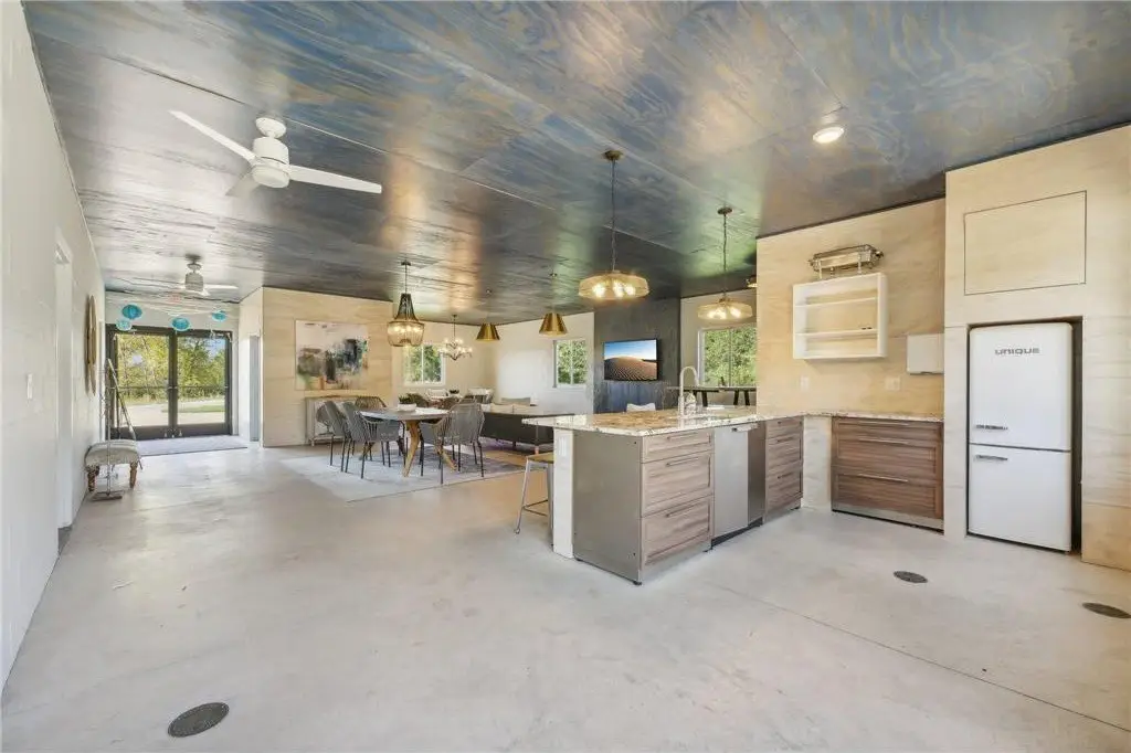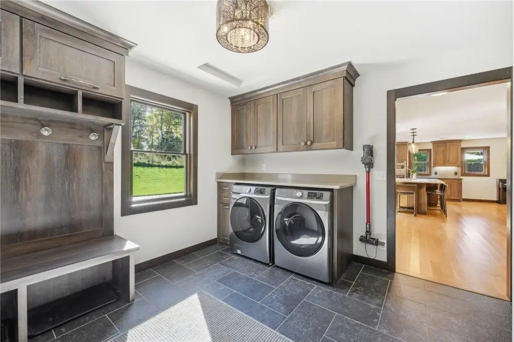 Nestled on 5+ Acres of serene, wooded land, this masterfully crafted custom-built home boasts high-end finishes & intricate details at every turn blending luxury with tranquility. The main level open concept design offers floor to ceiling wood beams with exposed ductwork, expansive windows inviting an abundance of light & modern amenities with Old World elegance. Your Gourmet Chef’s Kitchen with large Quartz center island opens to the Dining & Great rooms perfect for entertaining colleagues, friends & family. The Main level offers your primary ensuite with two walk-in closets, double sinks, soaking tub & large tiled walk-in shower. Your primary suite is your sanctuary featuring large corner windows for viewing. Main level laundry/mudroom too. All newly renovated interior & exterior in 2019. This is your private retreat, formerly known as Camp Rolling Ridges of St. Croix Valley Girl Scout Camp & now known as Crane Hill. Enjoy the sunset, beautiful trees, wildlife & trails throughout your private property. Also included in your private acreage is 1 bathroom building, another 2nd bathroom building converted to storage with overhead garage door, 6 covered Pavilions, a woodshed and a new chicken Coop with Run. Nice 40 x 30 heated finished att. garage w/zero entry to home. Private screened maintenance free decking, professional landscaped & irrigation. Shared community heated zero entry pool & rec center for parties. A Truly one-of-a-kind property to call home. Located just minutes from Willow River State Park, Downtown Historic Hudson & the St. Croix River! Quick 94 access to Mpls, St. Paul.