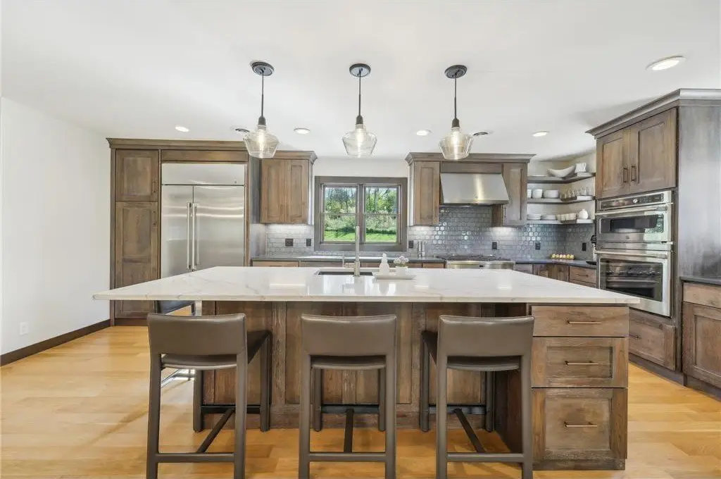 - Gourmet Chef’s Kitchen with large Quartz center island