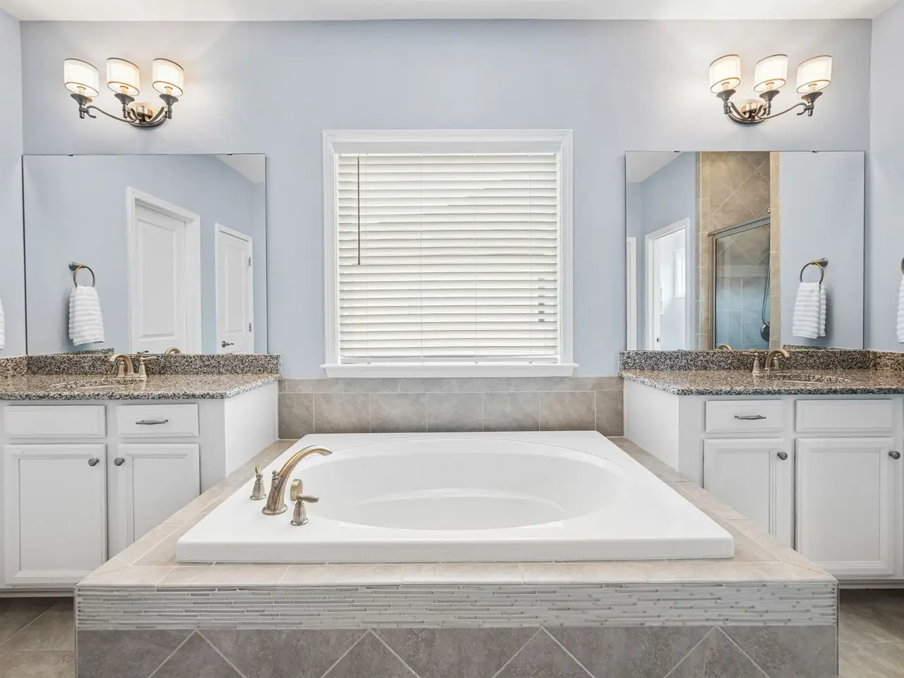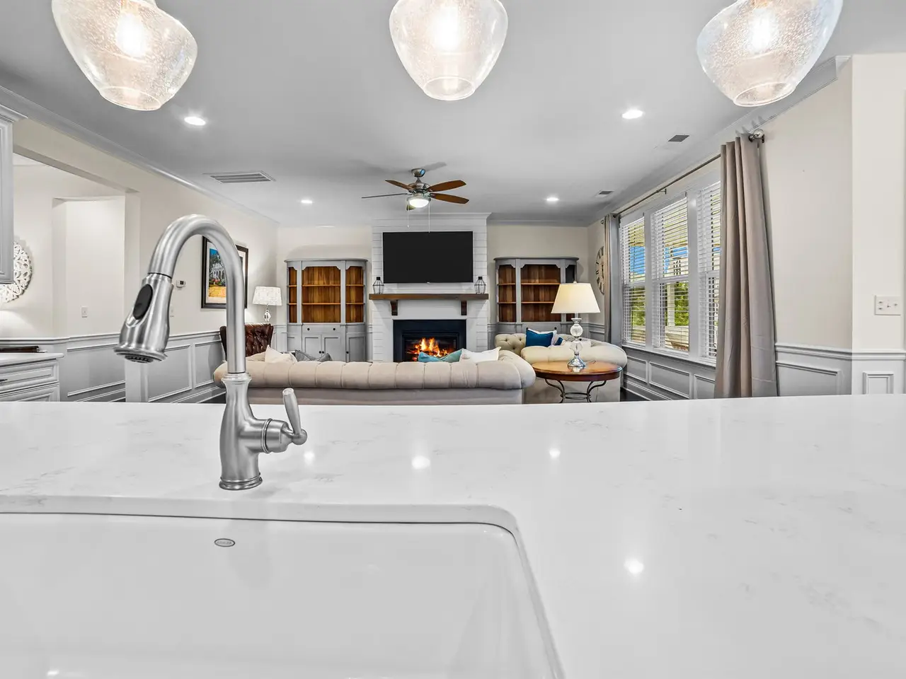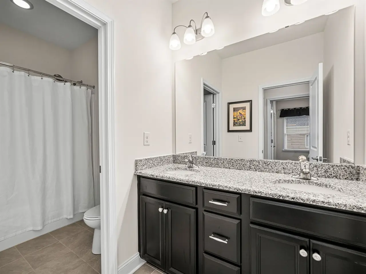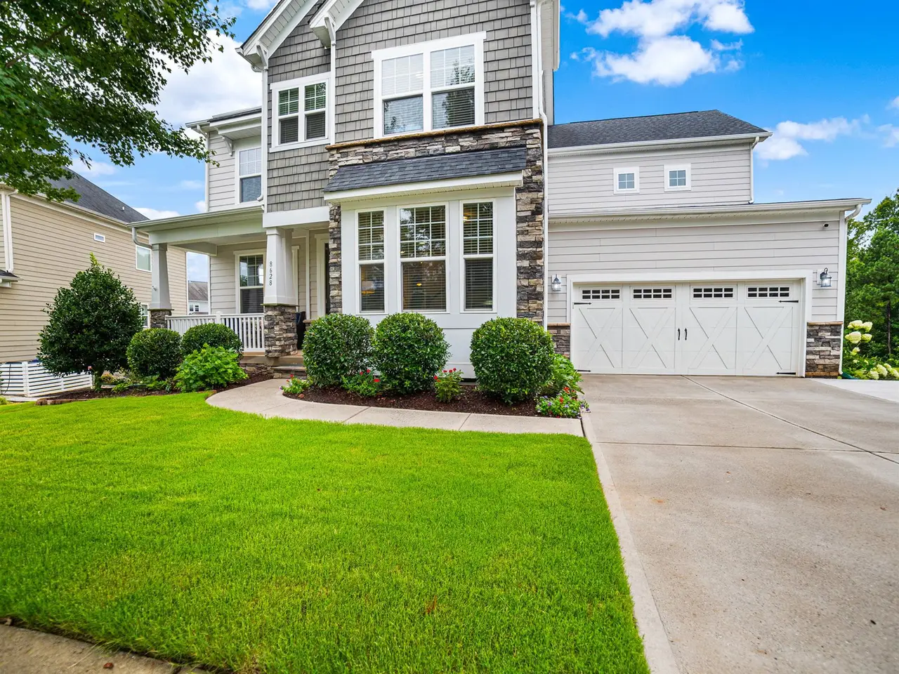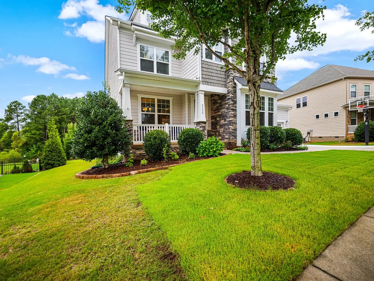 Gorgeous, meticulously maintained home in sought-after Cobblestone Manor! Premier lot backs to a serene common area with mature trees and sits directly across from the neighborhood pool. The open-concept layout offers a main-level guest suite, inviting great room, screened porch with patio access, dedicated office, drop zone, and a designer kitchen with oversized island, gas range, wall ovens, and walk-in pantry with custom glass door. High-end features include upgraded millwork, storm door, tankless water heater, in-wall pest system, extended front driveway and rear patio, custom fireplace with shiplap and mantel, fire pit, and sizable closets. Luxurious primary suite upstairs features dual walk-in closets, double vanities, and a soaking garden tub. Three additional bedrooms, including one with private en-suite, plus a spacious loft offer versatility. Exceptional outdoor living and refined interiors make this a rare opportunity in a prime location!