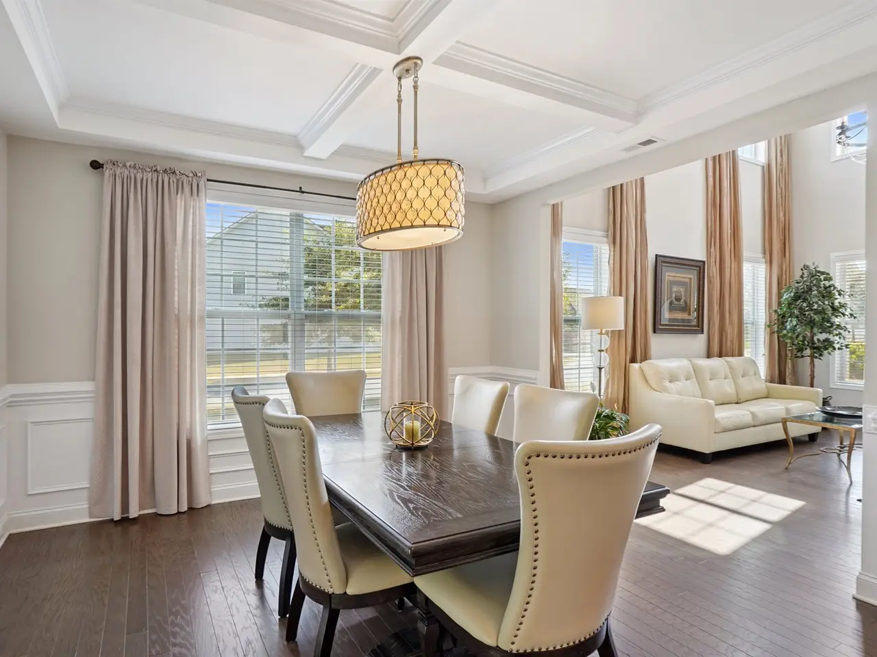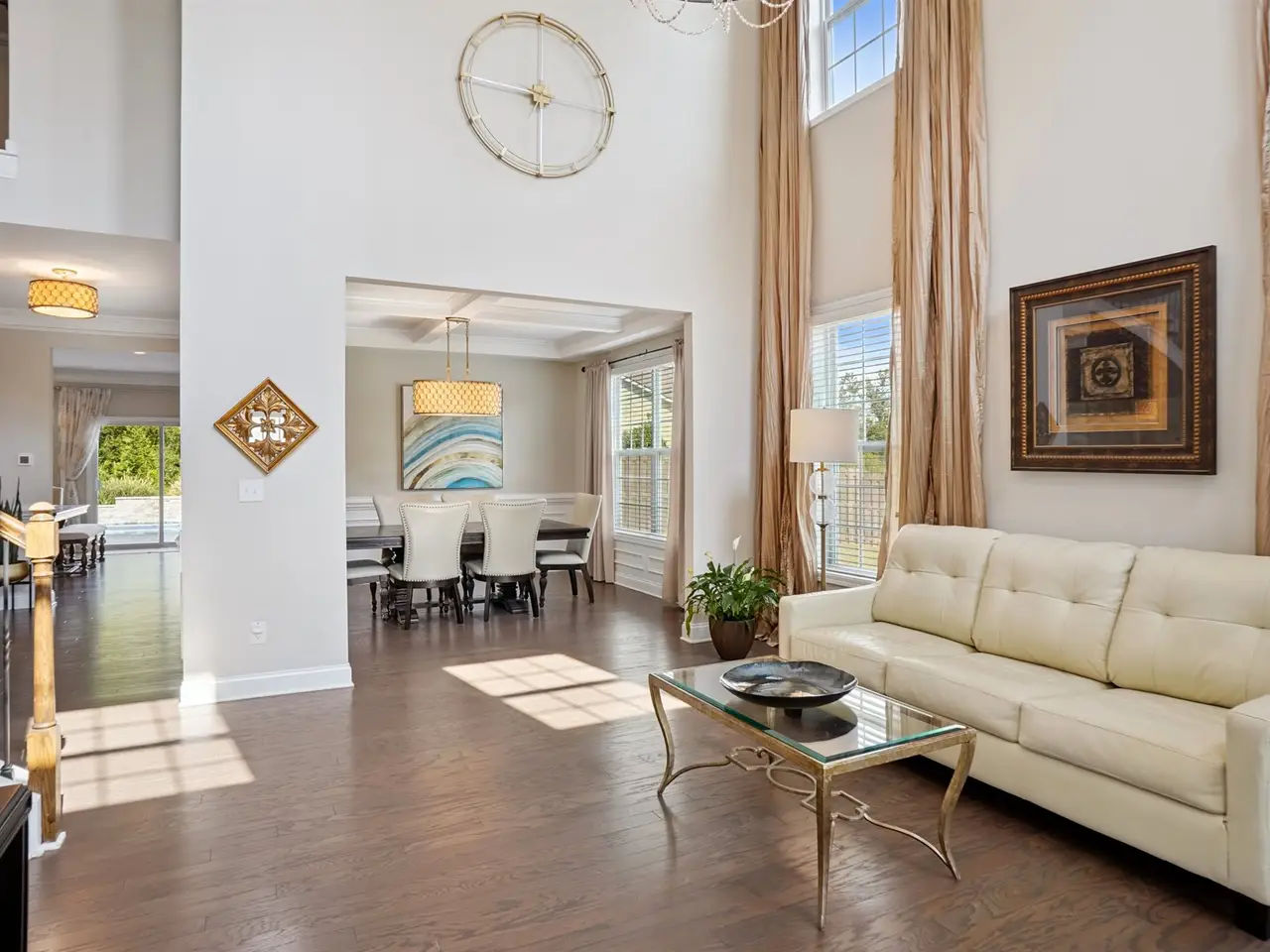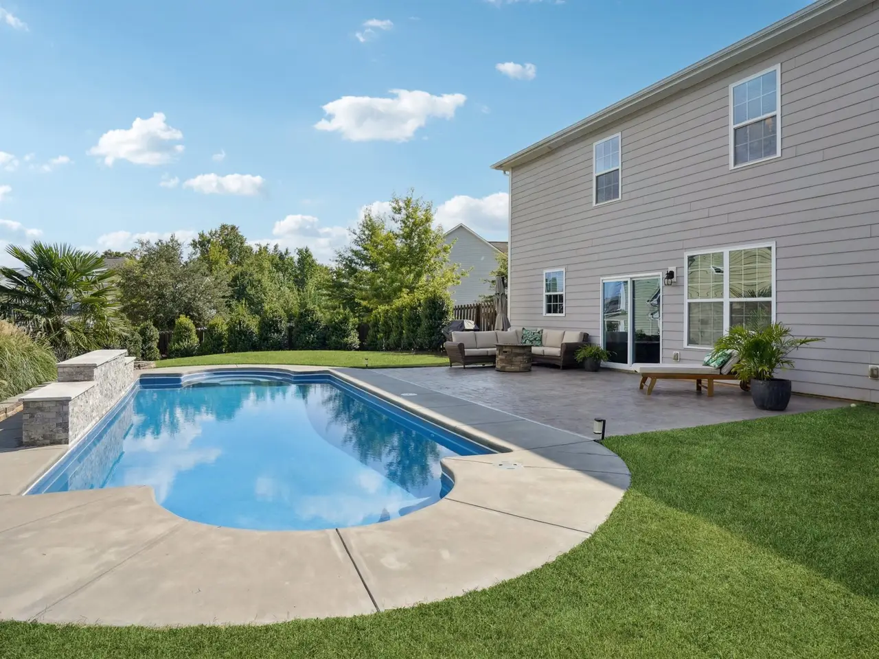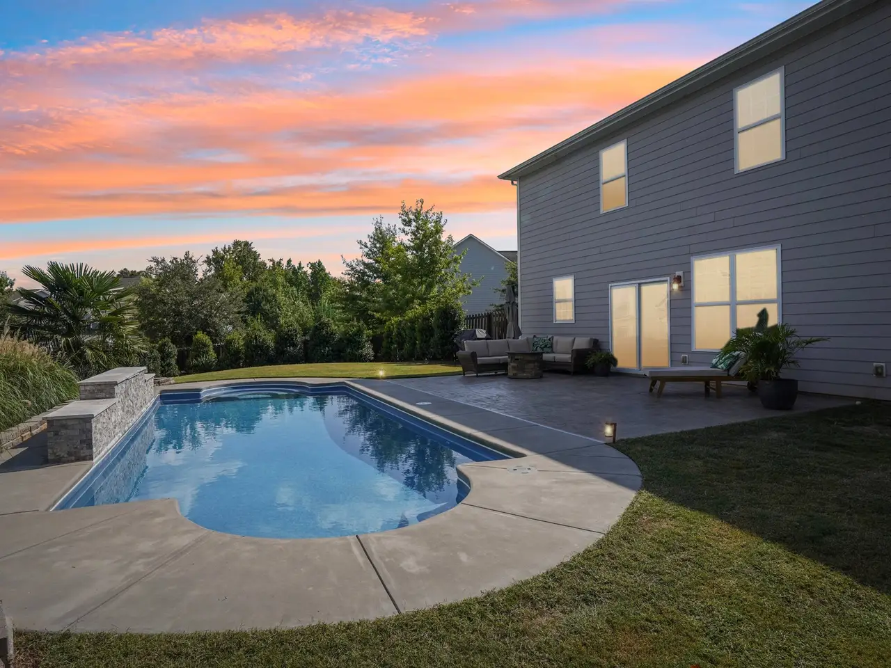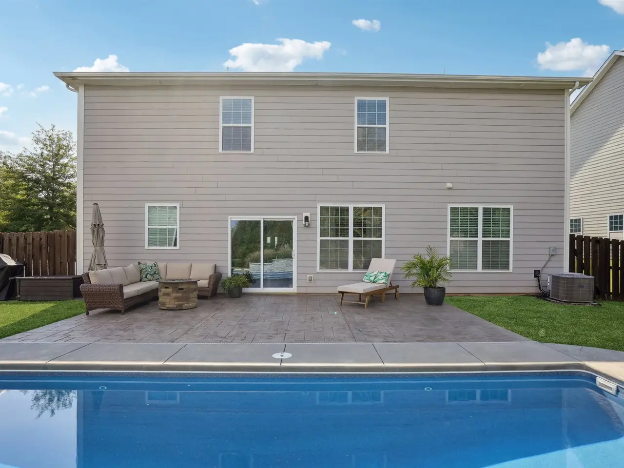 Welcome to Your Huntersville Oasis. Step inside this stunning home where everyday living feels like a retreat. From the moment you enter, you're greeted by soaring ceilings that create a dramatic sense of space and light. The formal dining room features an elegant coffered ceiling, setting the tone for stylish entertaining. The open great room flows seamlessly into a chef's kitchen loaded with cabinetry, gleaming granite countertops, stainless steel appliances, and rich wood flooring that ties it all together. A convenient drop zone helps keep things organized, and a full guest suite on the main level offers privacy and comfort for visitors. Upstairs, the luxurious primary suite is a private sanctuary with a spa-like bath and generous walk-in closet. Three additional spacious bedrooms and a huge loft provide flexibility for work, play, or relaxation. A rare three-car garage adds even more convenience and storage. Outside, your personal paradise awaits. Relax on the oversized patio or enjoy a dip in the sparkling heated sport pool with waterfall feature. The backyard is enclosed for maximum privacy. Located just minutes from Huntersville's vibrant shopping, dining, and entertainment, this home offers the perfect blend of luxury, comfort, and lifestyle.