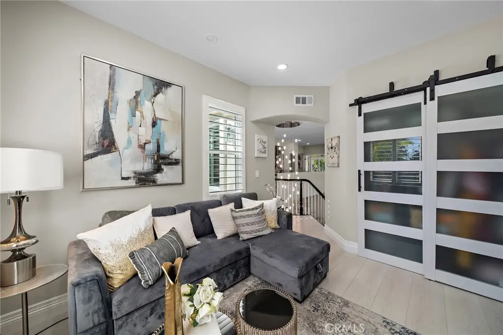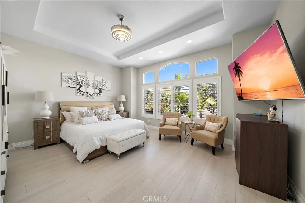 Breathtaking Lyon Shores Estate in the exclusive beach-close community of SeaGate! Rarely available largest model (Residence 3/F) with 5 bedrooms (1 downstairs), 4 baths, 3-car garage, and nearly 3,000 SF of luxurious open-concept living, completely reimagined with no expense spared on top-tier craftsmanship and materials. Architectural excellence begins with the brick-accented flagstone walkway, arched portico, and resort-style balustrade walls. Step inside to soaring two-story ceilings, dramatic palladium windows flooding the home with natural light, Italian porcelain flooring, a grand rotunda foyer with chandelier, sweeping handcrafted staircase, elegant formal living room, and banquet-style dining room. The chef's kitchen is a showpiece with quartz counters and full backsplash, waterfall island with seating, pantry with frosted glass barn door, white shaker self-closing cabinetry with deep drawers/pull-outs, 48-inch double-faucet sink, and professional-grade Thermador professional appliances including 6-burner + griddle/double-oven stove, high-capacity hood/vent, pot filler, dishwasher, microwave, plus 2 Yeego wine/beverage refrigerators, separate icemaker, and built-in coffee maker. The kitchen opens to a family room with custom built-ins, glass-display cabinetry, marble stacked-stone fireplace, and bay window. French doors lead to a backyard oasis with 2 covered patios, flagstone decking, outdoor marble kitchen with Lynx BBQ, koi pond with waterfalls, and lush tropical landscaping. Upstairs includes a built-in desk/vanity, balcony, and 4 more bedrooms (one as a bonus/den). The enormous primary suite boasts a sitting area, 3 walk-in closets, and a spa-inspired bath with wet room shower and freestanding soaking tub, plus dual quartz vanities with vessel sinks. Additional highlights: plantation shutters, recessed lighting, coffered ceiling, chic fixtures, tall raised-panel doors, waterproof wood-vinyl flooring upstairs, frosted-glass barn-style closets, and upgraded bathrooms with designer tile finishes, LED touch-light mirrors, multi-head showers, and frameless clear-glass enclosures. Close to award-winning schools, Seagate Park with walking trails, beach, downtown HB, GW Sports Complex, and Central Park & Library.