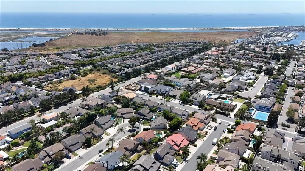 Welcome to this spacious 5-bedroom, 3-bathroom, 2-story home close to the beach, the Wetlands and the harbor. A private entry courtyard offers a tranquil oasis to relax and unwind. As you step through the double door entry, you'll be greeted by soaring high ceilings and an abundance of natural light. The main level features one bedroom and a full bathroom, complemented by a gracious living room, formal dining area with french doors to the backyard and built in BBQ, a chef-inspired kitchen boasting a large island and breakfast nook, both with ample storage and a wall of pantry with convenient pull-out shelves. The kitchen seamlessly opens to a cozy family room with a fireplace, perfect for gatherings. Additionally, this home includes a generously sized bonus room on the main floor, offering versatility for use as a media room, play area, home gym or a 6th bedroom if needed. Upstairs, discover the primary bedroom retreat complete with a walk-in closet and an en-suite bathroom featuring double sinks, a soaking tub, and a separate walk-in shower for ultimate relaxation. There are 3 more bedrooms on this level with the two front bedrooms offering access to a spacious balcony that extends gracefully over the 3-car garage, providing even more outdoor space. This thoughtfully designed home with spacious layout and prime location is ideal for comfortable living and entertaining both indoors and outdoors.