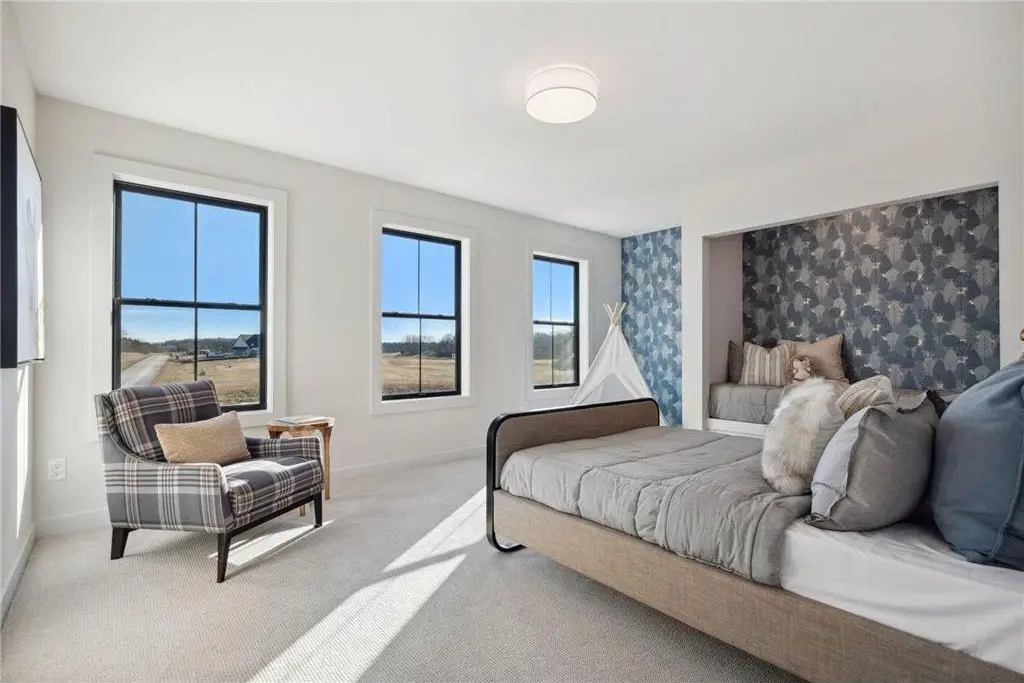 HANSON BUILDERS newest floor plan design in Koch Farm Sanctuary! The BRENTWOOD will be showcased in the Spring Parade of Homes! You'll immediately notice the open and spacious main level with 10' smooth ceilings, raised ceiling with LED strip light accent in the Great Room, black interior and exterior Marvin windows, and a modern surround fireplace with wood shelves with accent lighting. This home offers a custom designed kitchen with 48" range, built-in dinette bench, and large prep kitchen! The sunroom is the perfect retreat to enjoy your morning coffee or cozy up with a good book! The upper level features a vaulted Bonus Room, 4 Bedrooms, including private Owner's Suite with dual closets and spa-like bathroom with walk through to Laundry. Finished lower level with Indoor Sport Center, family room with built-in entertainment wall, Wet Bar/Games area and 5th bedroom. 4-car garage that is insulated and heated garage with floor drains. Koch Farm Sanctuary offers 33 acreage lots ranging from 1.5 to 3.6 acres! OPTION FOR OPEN ENROLLMENT AVAILABLE IN ORONO SCHOOL DISTRICT! Out of school district bus stop located in neighborhood.