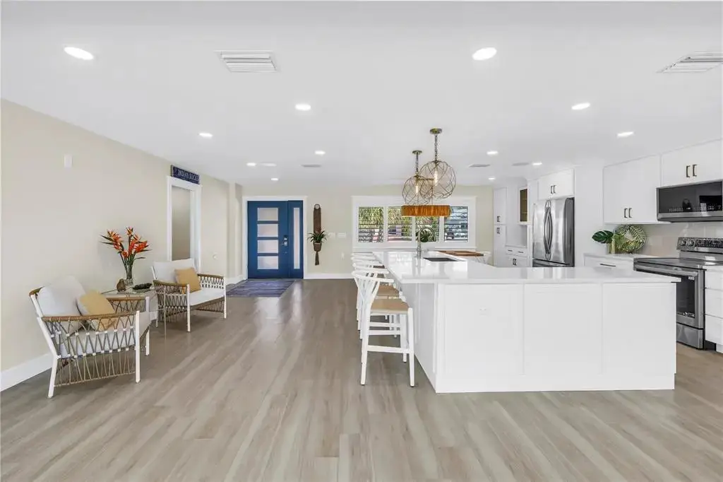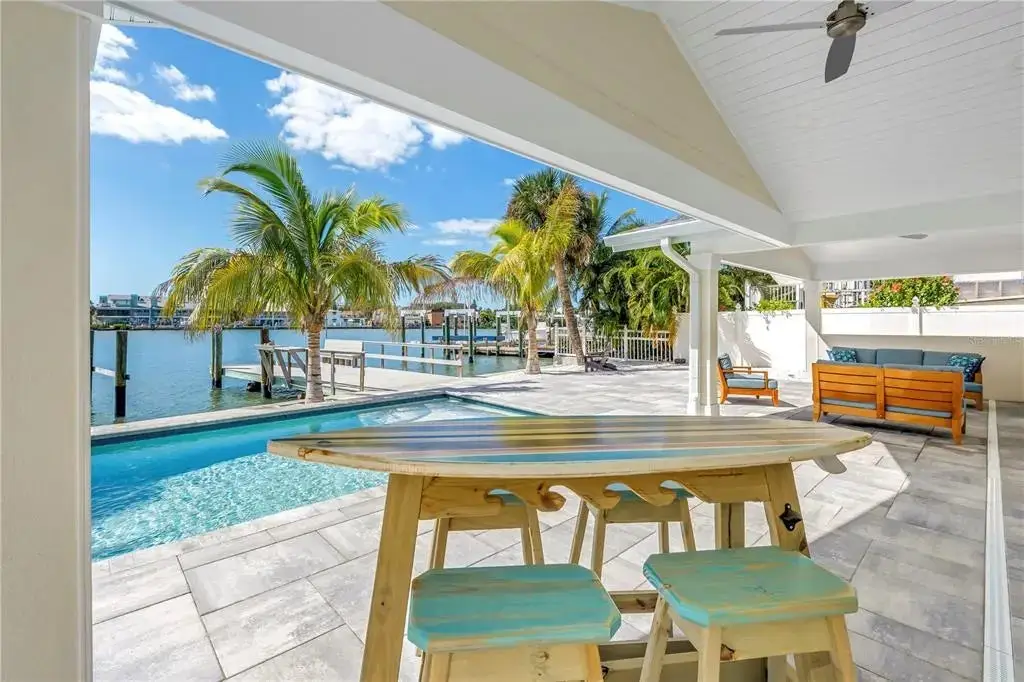 Under contract-accepting backup offers. One or more photo(s) has been virtually staged. Experience the pinnacle of waterfront living in this beautifully updated 3-bedroom, 3-bathroom home on a quiet inlet, leading directly to the Intracoastal Waterway. Perfect for boaters, this property features its own private dock and easy access to open water. Adding to the full oasis experience, the stunning saltwater PebbleTec pool and spa glisten in the backyard, surrounded by tropical landscaping. Inside, you’ll find a fresh and modern interior with brand new ceramic tile flooring, new stainless steel kitchen appliances, sleek quartz countertops, and plantation shutters that allow for plenty of natural light. The home is completely move-in ready, featuring newer sliders and windows, a new roof, new hot water heater, new air handler, and new water softener. Enjoy relaxing on the covered back patio overlooking the water or take a short stroll to the powdery sandy beaches to catch sunset. Located in the heart of Indian Rocks Beach, this vibrant coastal community offers a laid-back yet thriving atmosphere with fantastic restaurants, beach bars, and charming local boutiques just minutes away. This move-in ready home combines modern updates, waterfront tranquility, and the best of coastal living.