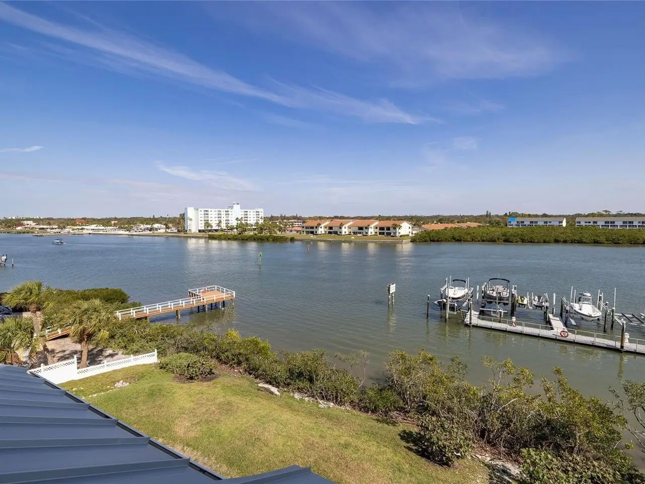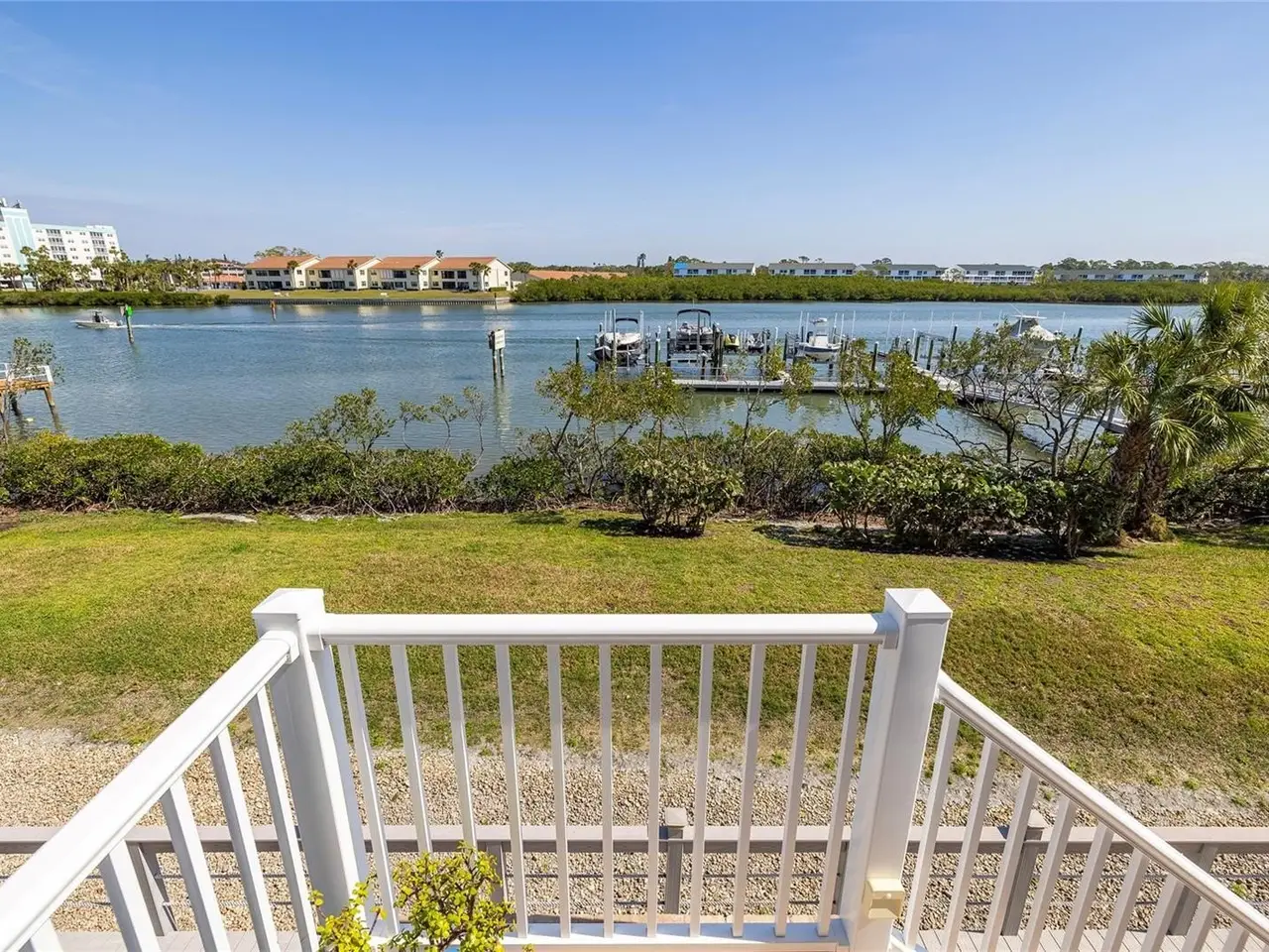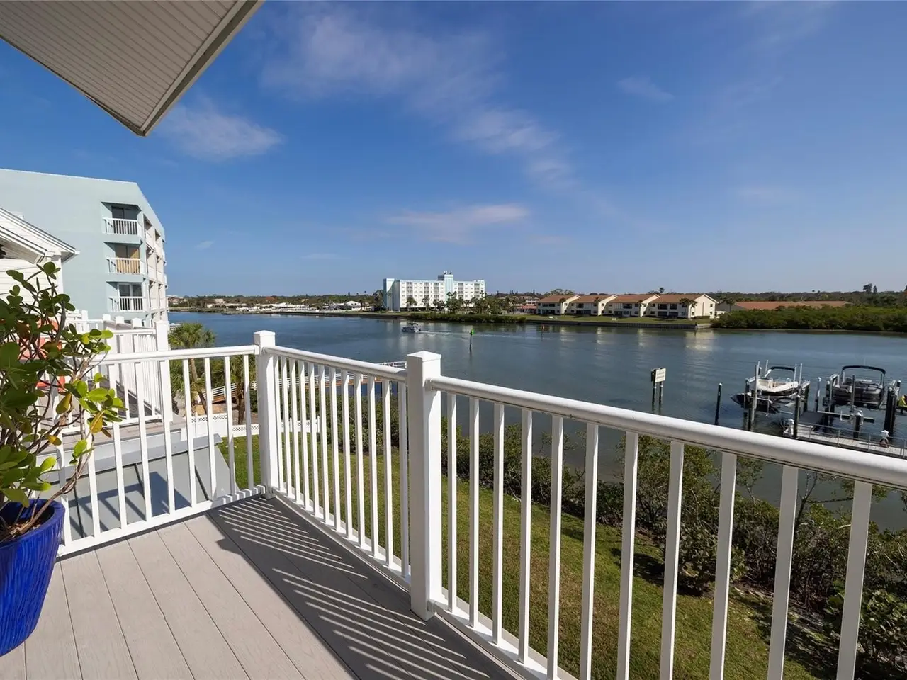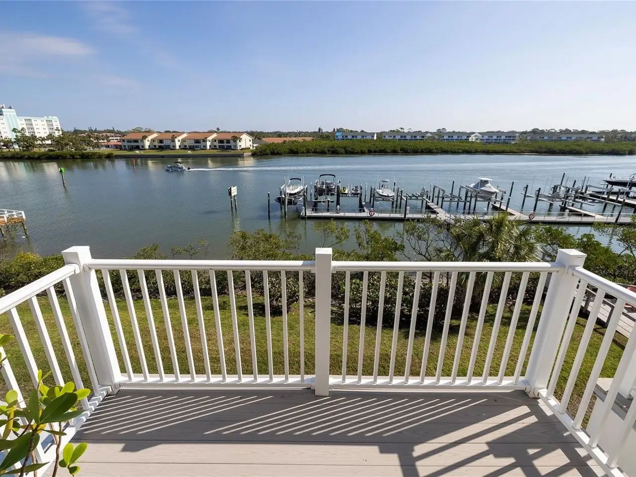 Your dream come true awaits!! Located steps from the sand, this stunning home offers shimmering water views as soon as you walk to the front door. The bright and beautiful living area welcomes you into the home, featuring crown moulding and high ceilings. The spacious kitchen overlooks the living and dining rooms, providing ample space for large gatherings. It is the heart of the second story, boasting a Sub-Zero Refrigerator, and premium Wolf range, oven, and microwave. This "social" level also includes a separate half-bathroom designated for guests. An extended kitchen with custom cabinetry and high-end fixtures, including a sink “hot shot” which offers instant boiling water, has all the extra storage that we always wish we had! Gorgeous views pour in from the balconies on each floor, all providing un-obscured views up and down the Intracoastal Waterways. Moving upstairs, you'll find the primary bedroom and its large, en-suite primary bathroom. There are two generous walk-in closets — one is currently being used as an office space, stretching 7 ft by 5 ft. The other walk-in closet is even larger, 8.5 ft by 4.5 ft! The primary bathroom features dual-sinks and an oversized shower. The third-level balcony is accessed from the primary bedroom, providing the promise of natural light to pour in each day. Down the hall, you'll find the second bedroom, also with its own en-suite bathroom. There are built-in shelves that provide an abundance of storage for books, games, knick-knacks, whatever your heart desires! The closets in both bedrooms also offer custom built-in shelving and drawers. A large hallway linen closet and the tidy laundry room are in the perfect location on the third floor to make the task of laundry as simple as can be! One more level up, you'll find the third bedroom — or office, library, workout room, you name it! This room can be used in so many ways! Need an in-home office that feels separate from home? Save your work for the upstairs level and leave it behind when you go downstairs! Need a quiet retreat to gather your thoughts? This level houses the most private balcony in the entire home. With expansive space and its own en-suite bathroom, you can transform this level into whatever you need it to be! There are luxury hardwood floors throughout, wood-look ceramic tile in the bathrooms and laundry room, as well as tastefully painted hardwood staircases. The newly-painted large garage is big enough to comfortably house three vehicles, while still leaving plenty of room for storage. A brand-new water-softener and whole-house filtration system was just installed. There are 2 years left on the HVAC warranty, and the unit just had a new coil installed. Every floor is accessible from a built-in elevator, so mobility is never an issue. With breath-taking, 180-degree views of the Intracoastal Waterways, the opportunity to purchase a private boat slip, and a walk across the street to the sugar sand beaches of the idyllic Indian Shores community, this home offers what Florida-living is all about!