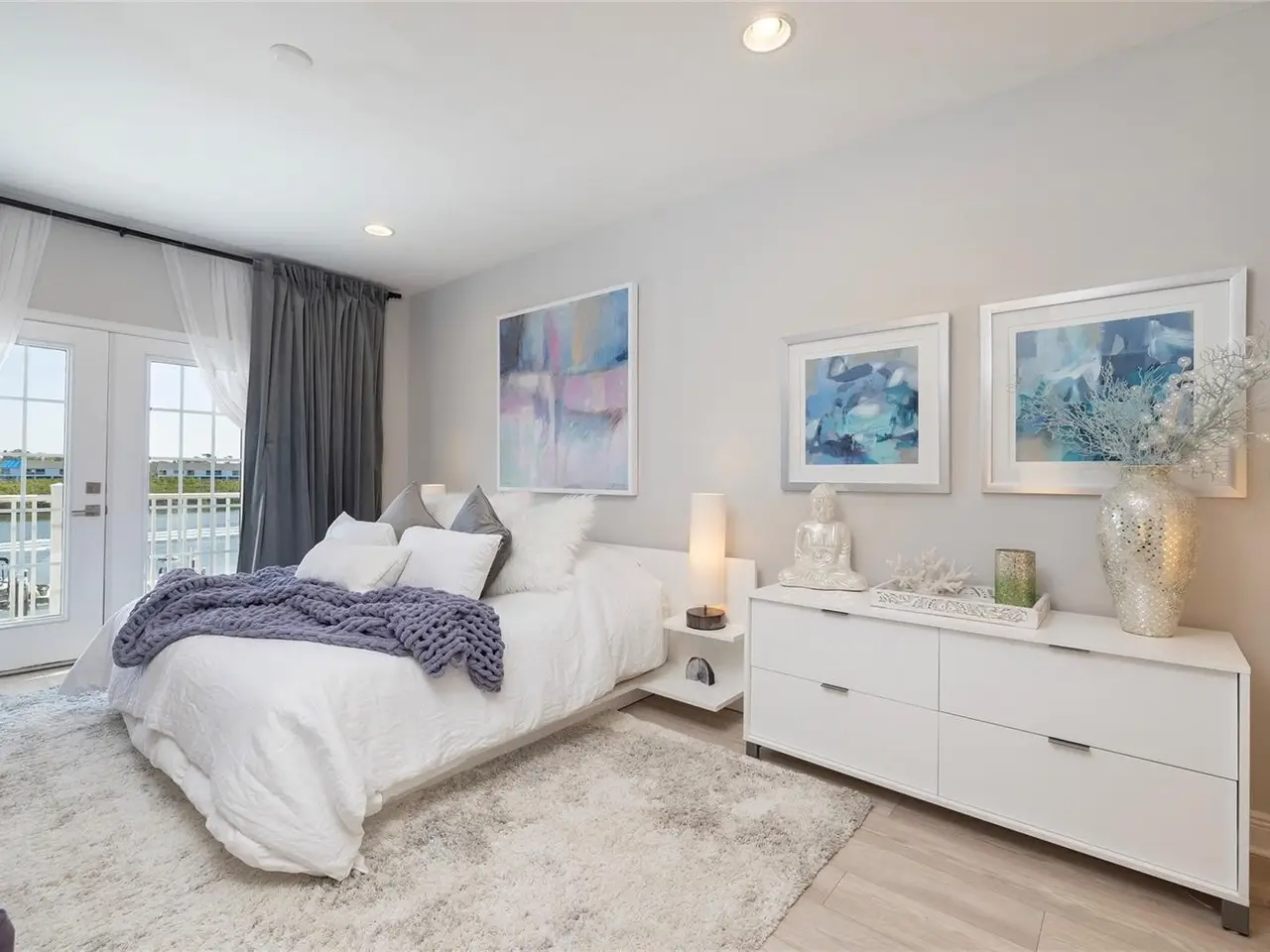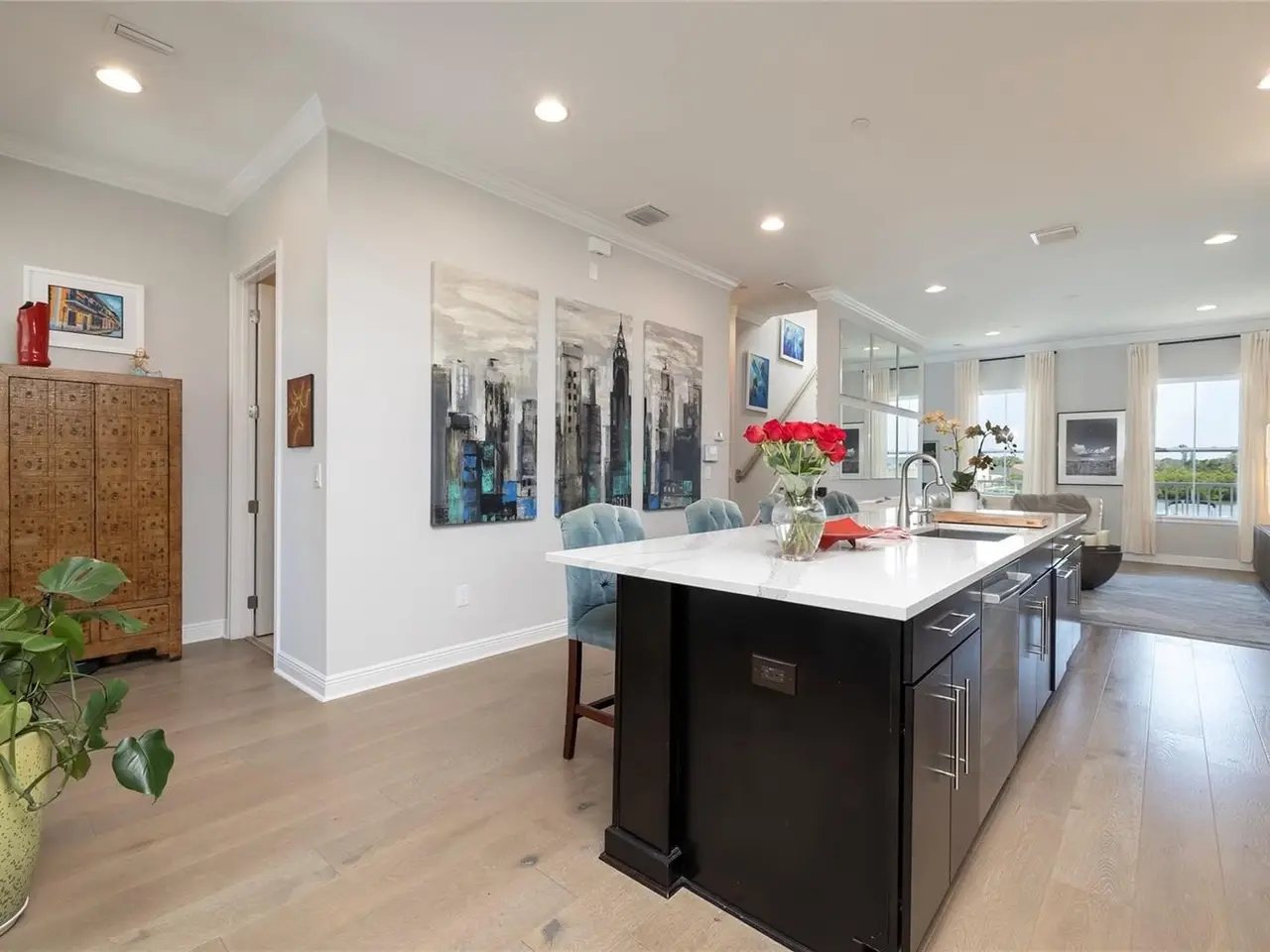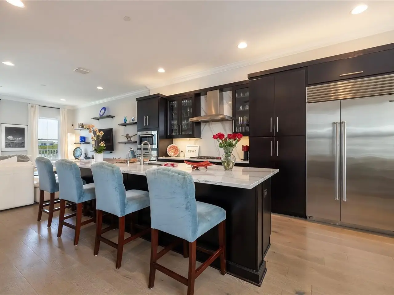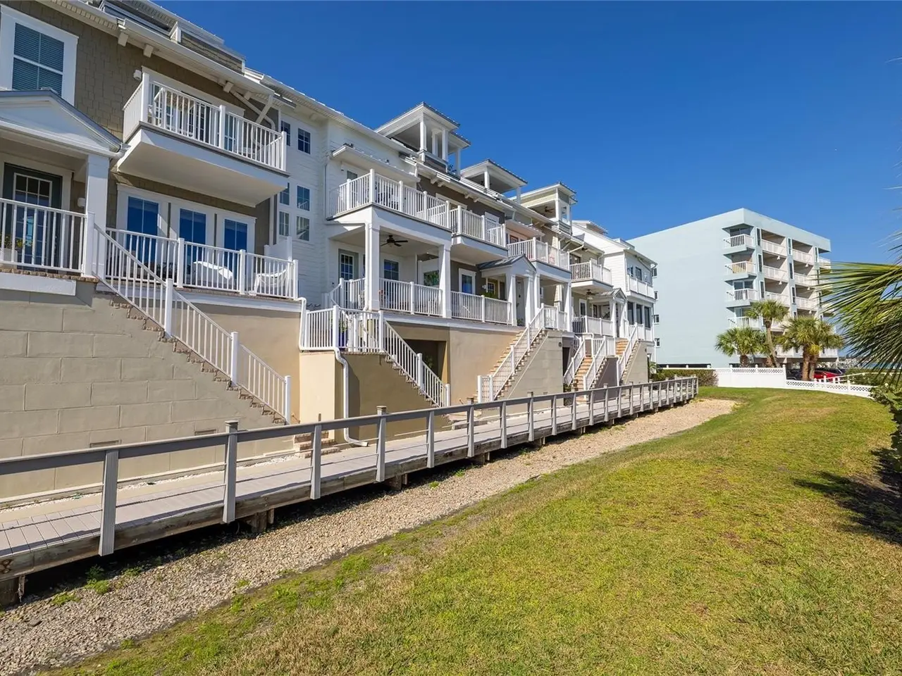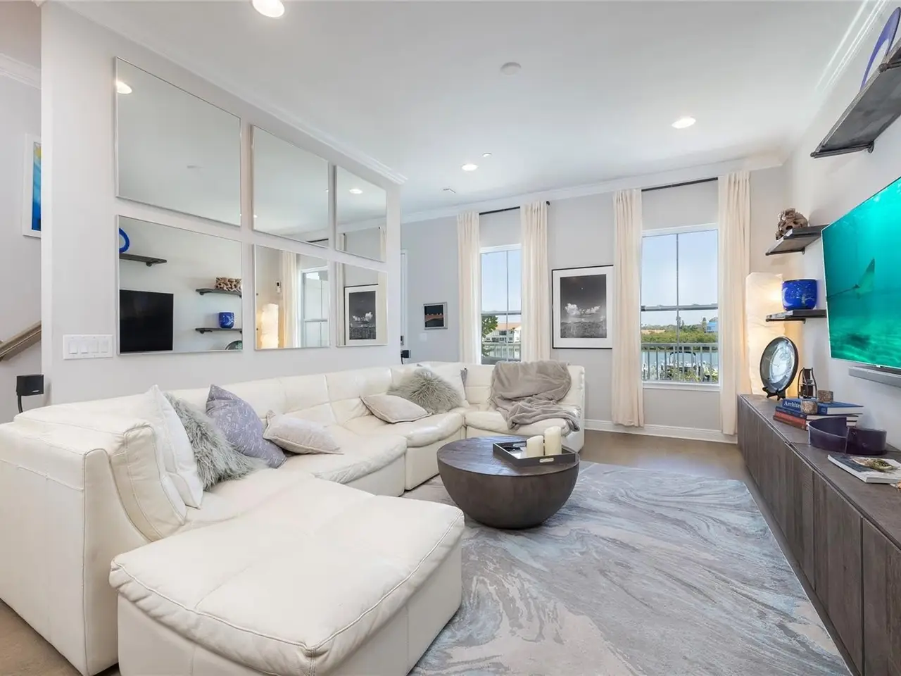 Your dream come true awaits!! Located steps from the sand, this stunning home offers shimmering water views as soon as you walk to the front door. The bright and beautiful living area welcomes you into the home, featuring crown moulding and high ceilings. The spacious kitchen overlooks the living and dining rooms, providing ample space for large gatherings. It is the heart of the second story, boasting a Sub-Zero Refrigerator, and premium Wolf range, oven, and microwave. This "social" level also includes a separate half-bathroom designated for guests. An extended kitchen with custom cabinetry and high-end fixtures, including a sink “hot shot” which offers instant boiling water, has all the extra storage that we always wish we had! Gorgeous views pour in from the balconies on each floor, all providing un-obscured views up and down the Intracoastal Waterways. Moving upstairs, you'll find the primary bedroom and its large, en-suite primary bathroom. There are two generous walk-in closets — one is currently being used as an office space, stretching 7 ft by 5 ft. The other walk-in closet is even larger, 8.5 ft by 4.5 ft! The primary bathroom features dual-sinks and an oversized shower. The third-level balcony is accessed from the primary bedroom, providing the promise of natural light to pour in each day. Down the hall, you'll find the second bedroom, also with its own en-suite bathroom. There are built-in shelves that provide an abundance of storage for books, games, knick-knacks, whatever your heart desires! The closets in both bedrooms also offer custom built-in shelving and drawers. A large hallway linen closet and the tidy laundry room are in the perfect location on the third floor to make the task of laundry as simple as can be! One more level up, you'll find the third bedroom — or office, library, workout room, you name it! This room can be used in so many ways! Need an in-home office that feels separate from home? Save your work for the upstairs level and leave it behind when you go downstairs! Need a quiet retreat to gather your thoughts? This level houses the most private balcony in the entire home. With expansive space and its own en-suite bathroom, you can transform this level into whatever you need it to be! There are luxury hardwood floors throughout, wood-look ceramic tile in the bathrooms and laundry room, as well as tastefully painted hardwood staircases. The newly-painted large garage is big enough to comfortably house three vehicles, while still leaving plenty of room for storage. A brand-new water-softener and whole-house filtration system was just installed. There are 2 years left on the HVAC warranty, and the unit just had a new coil installed. Every floor is accessible from a built-in elevator, so mobility is never an issue. With breath-taking, 180-degree views of the Intracoastal Waterways, the opportunity to purchase a private boat slip, and a walk across the street to the sugar sand beaches of the idyllic Indian Shores community, this home offers what Florida-living is all about!