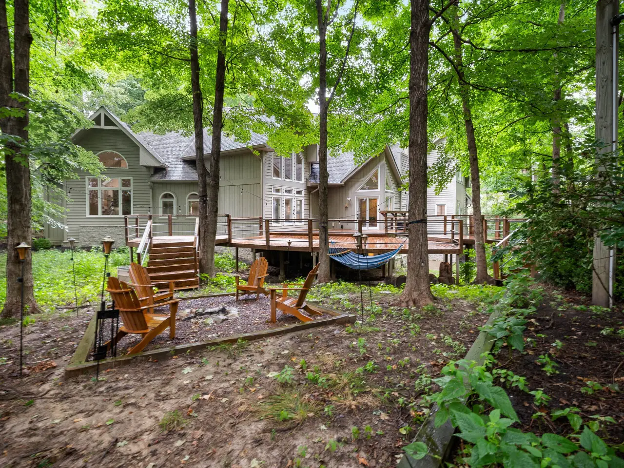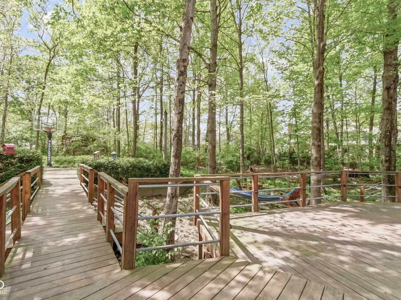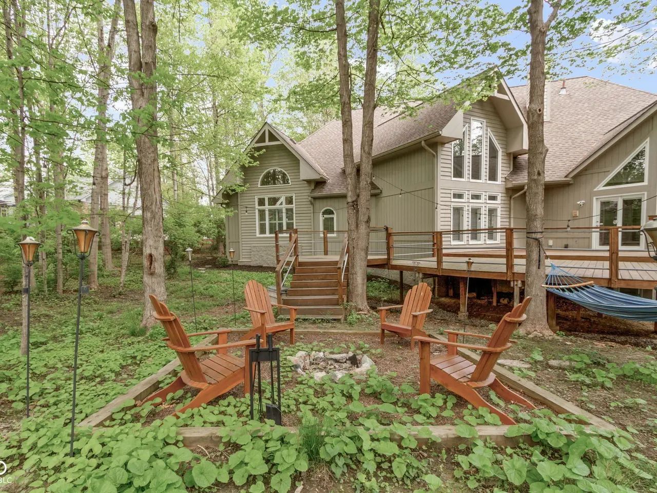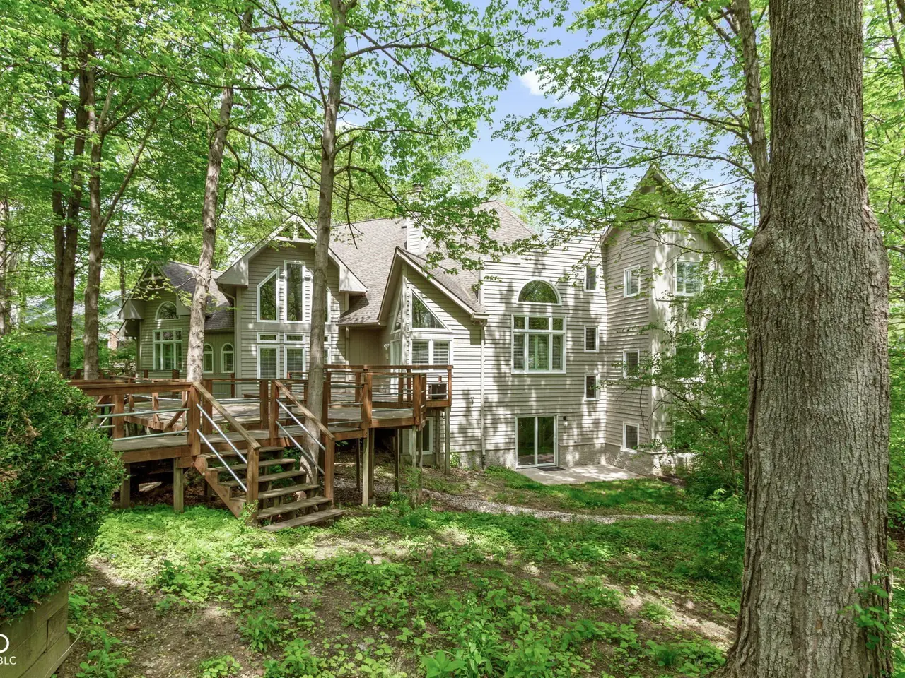 NEW PICS and NEW PRICE! Tired of the cookie cutter, builder beige look? Come check out this unique contemporary home! Nestled in the prestigious Geist neighborhood of Feather Cove I, this architect-designed residence offers a serene, wooded oasis on just over half an acre with it's own half court basketball court and cozy firepit. A quick stroll from Geist Reservoir, this home boasts glass floor to ceiling front entryway and expansive two-story living and dining rooms with magnificent windows creating a bright and airy atmosphere. The sunken formal dining room, two-sided gas fireplace and open floor plan further connect the kitchen and hearth room making this home perfect for entertaining. The primary suite is located on the main floor and includes an upper spa-like private bath, two walk-in closets and is connected to a flex room, perfect as a den or nursery. The gourmet kitchen is equipped with granite countertops, stainless steel appliances, white cabinetry plus a built in banquette with enough space for casual everyday dining. An upstairs loft area is perfect for meditation or as a kids' playroom and the walk out basement with exercise room offers additional hang out space. Huge pluses are the large 3 car garage, dual zone heating/cooling, whole home water filtration system, whole home humidification system plus the reliability of a new whole home Generac generator. This exceptional property combines luxurious living with the tranquility of nature, making it a rare find in the Geist Reservoir area. Nearby shopping, dining, walking path and school options, such as the "A" rated Amy Beverland Elementary, St Simon, Horizon and Holy Cross schools, make this home a winner!