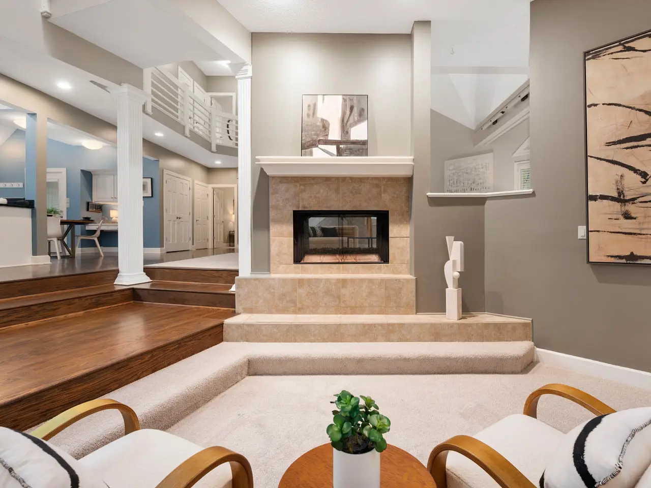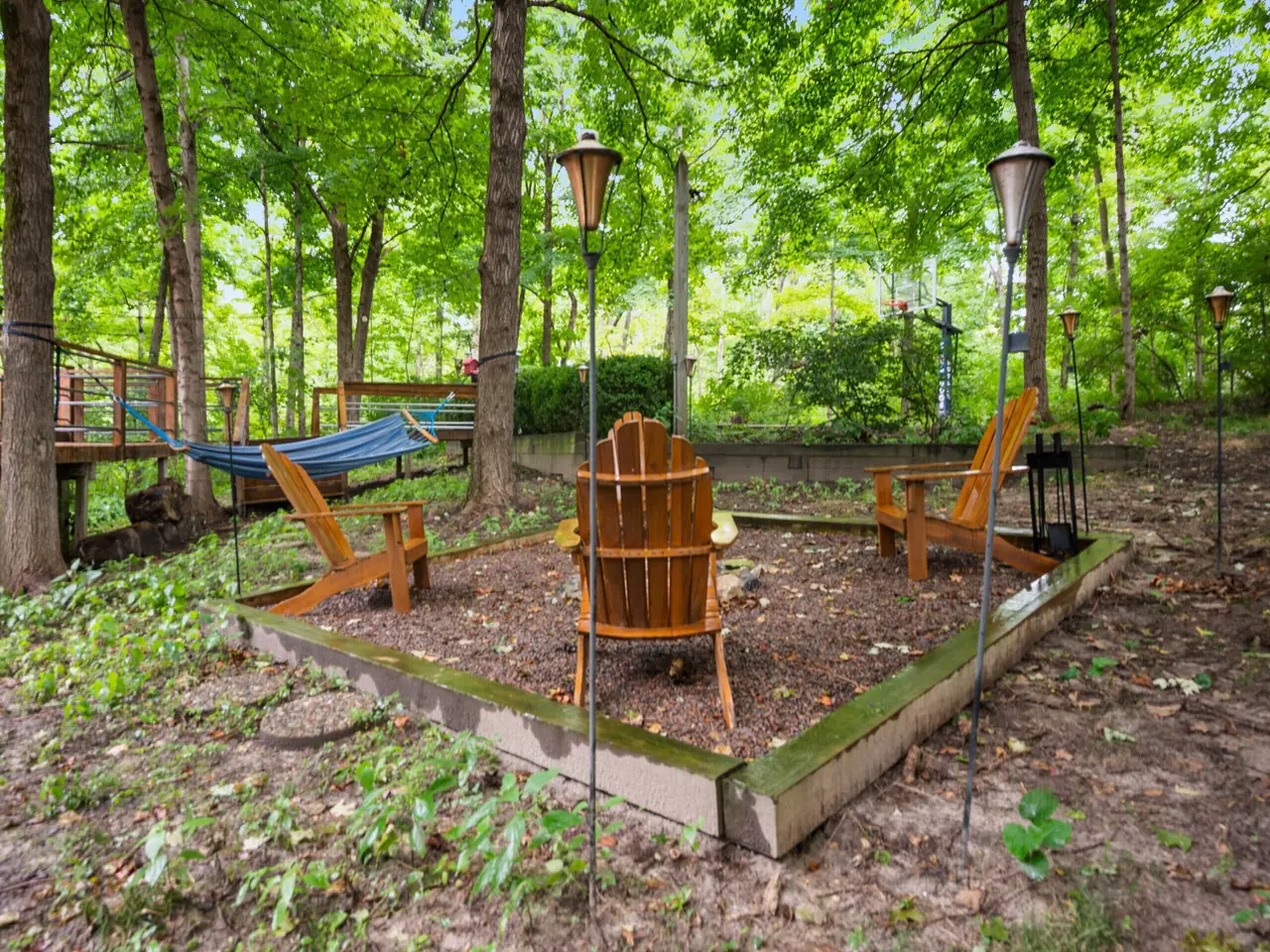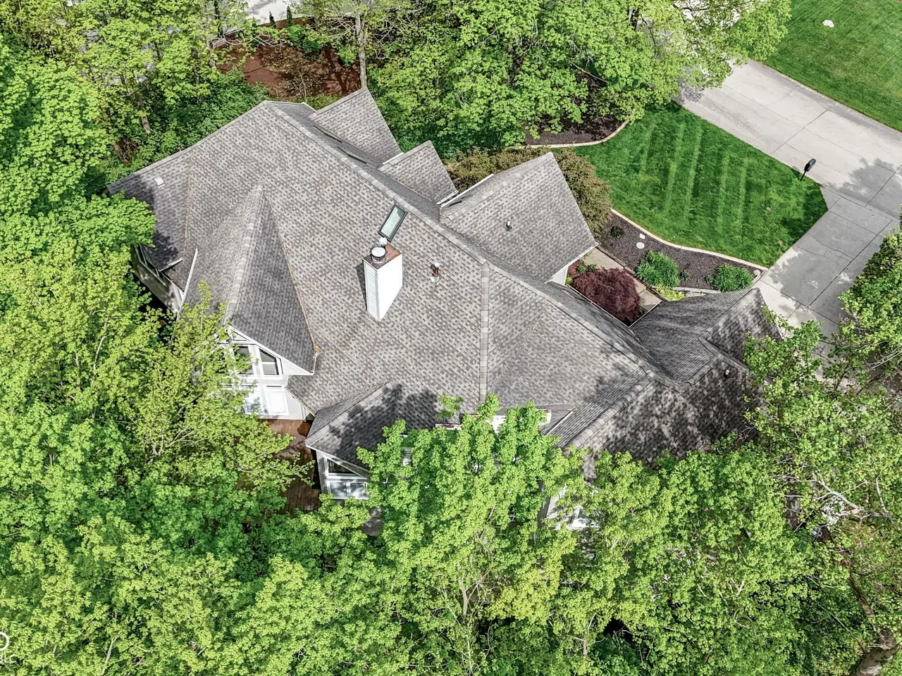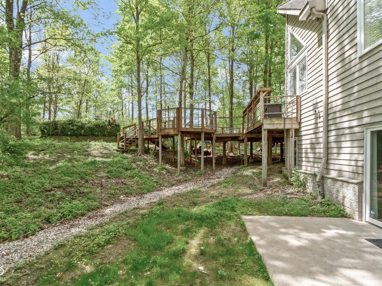 NEW PICS and NEW PRICE! Tired of the cookie cutter, builder beige look? Come check out this unique contemporary home! Nestled in the prestigious Geist neighborhood of Feather Cove I, this architect-designed residence offers a serene, wooded oasis on just over half an acre with it's own half court basketball court and cozy firepit. A quick stroll from Geist Reservoir, this home boasts glass floor to ceiling front entryway and expansive two-story living and dining rooms with magnificent windows creating a bright and airy atmosphere. The sunken formal dining room, two-sided gas fireplace and open floor plan further connect the kitchen and hearth room making this home perfect for entertaining. The primary suite is located on the main floor and includes an upper spa-like private bath, two walk-in closets and is connected to a flex room, perfect as a den or nursery. The gourmet kitchen is equipped with granite countertops, stainless steel appliances, white cabinetry plus a built in banquette with enough space for casual everyday dining. An upstairs loft area is perfect for meditation or as a kids' playroom and the walk out basement with exercise room offers additional hang out space. Huge pluses are the large 3 car garage, dual zone heating/cooling, whole home water filtration system, whole home humidification system plus the reliability of a new whole home Generac generator. This exceptional property combines luxurious living with the tranquility of nature, making it a rare find in the Geist Reservoir area. Nearby shopping, dining, walking path and school options, such as the "A" rated Amy Beverland Elementary, St Simon, Horizon and Holy Cross schools, make this home a winner!
