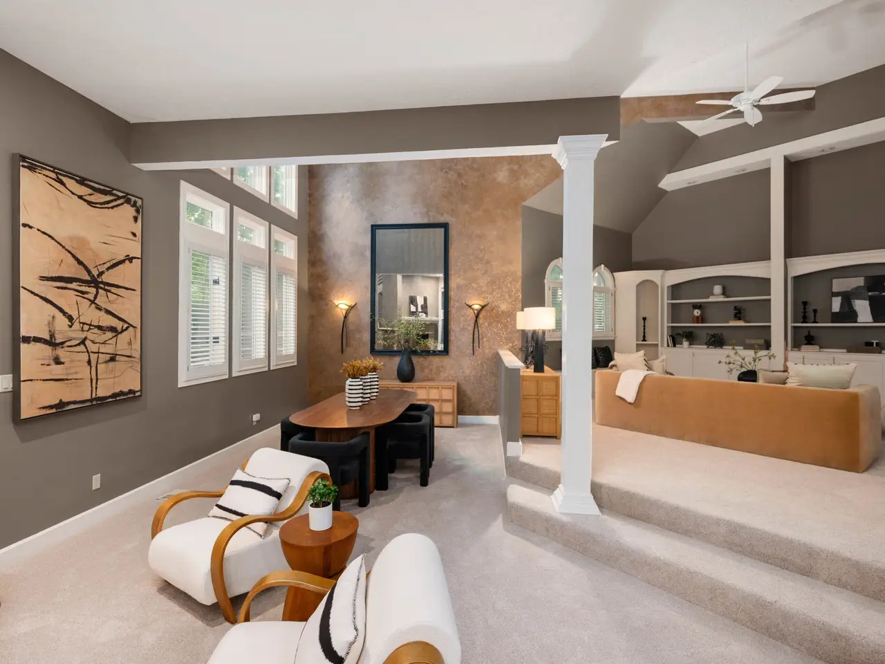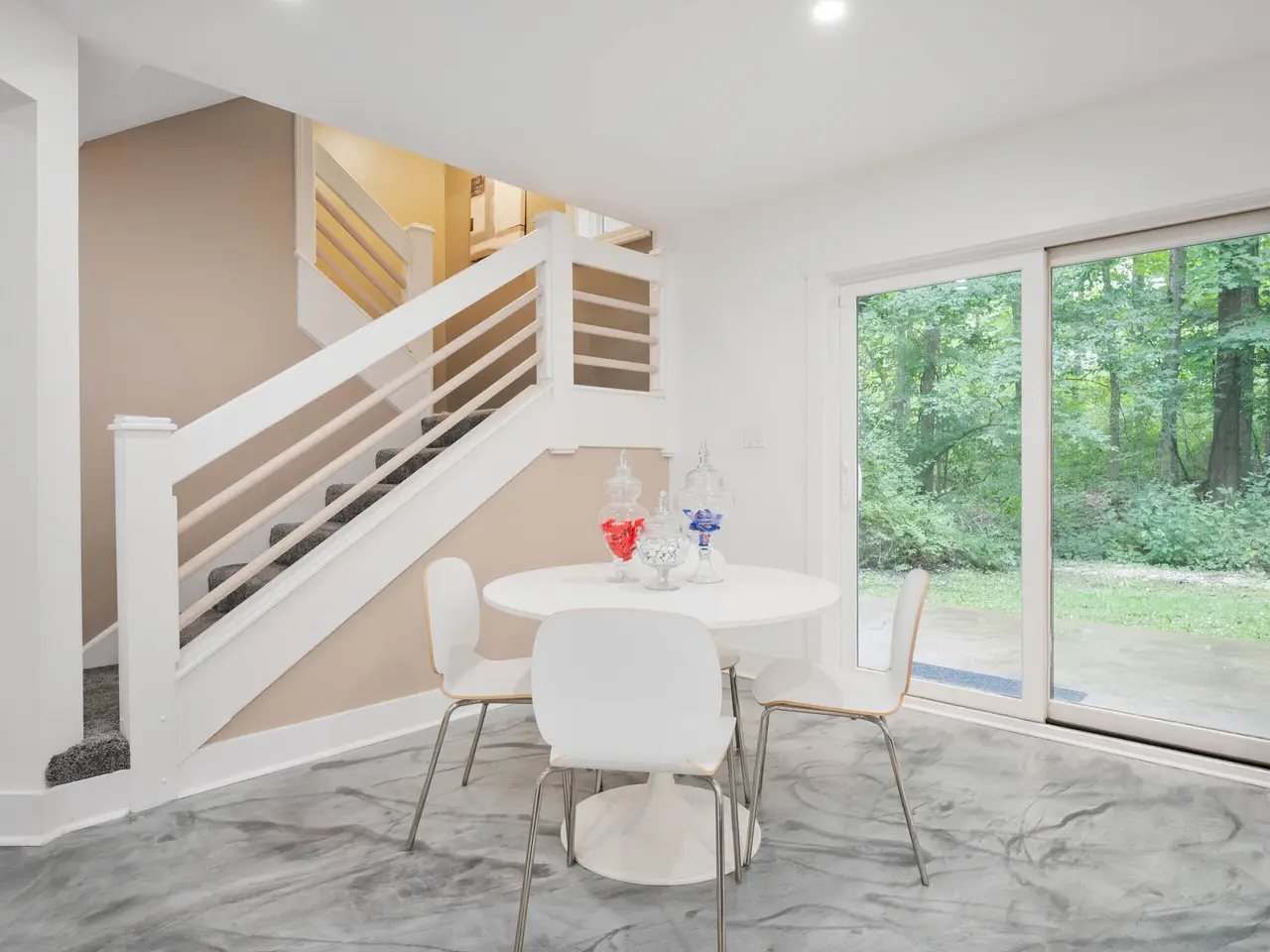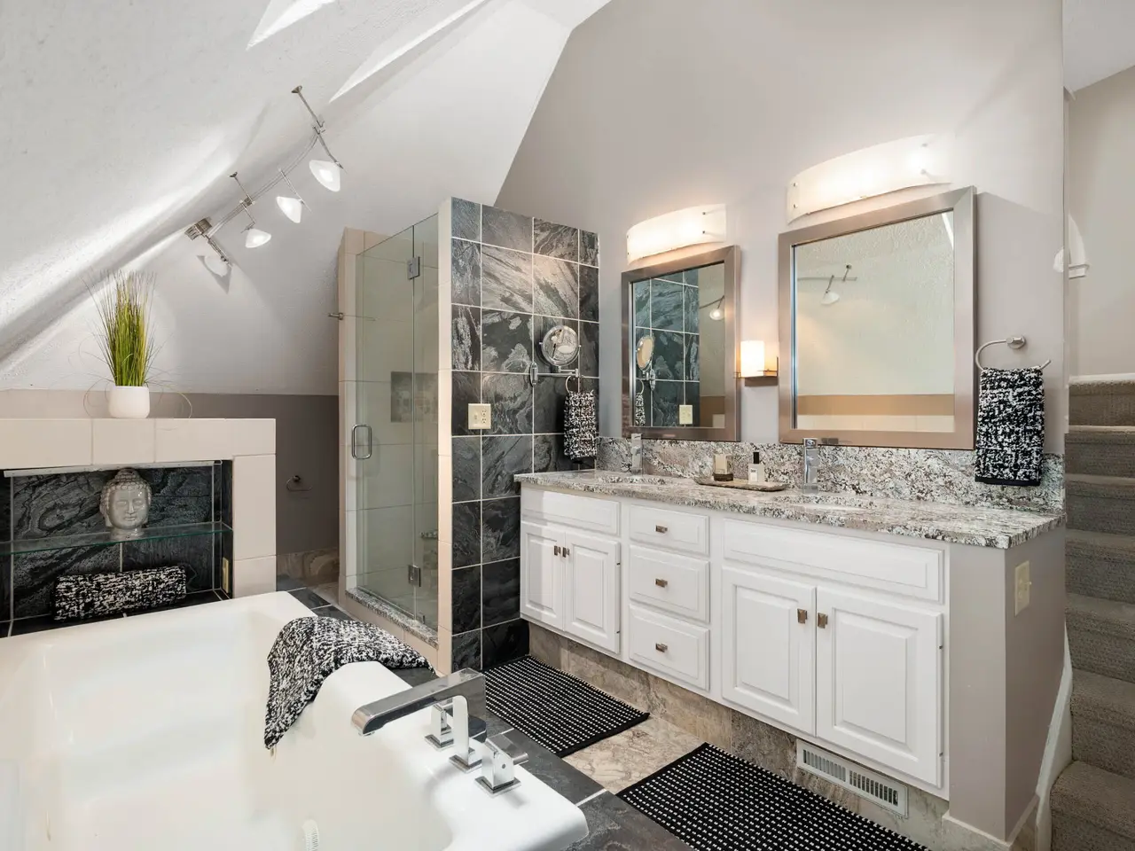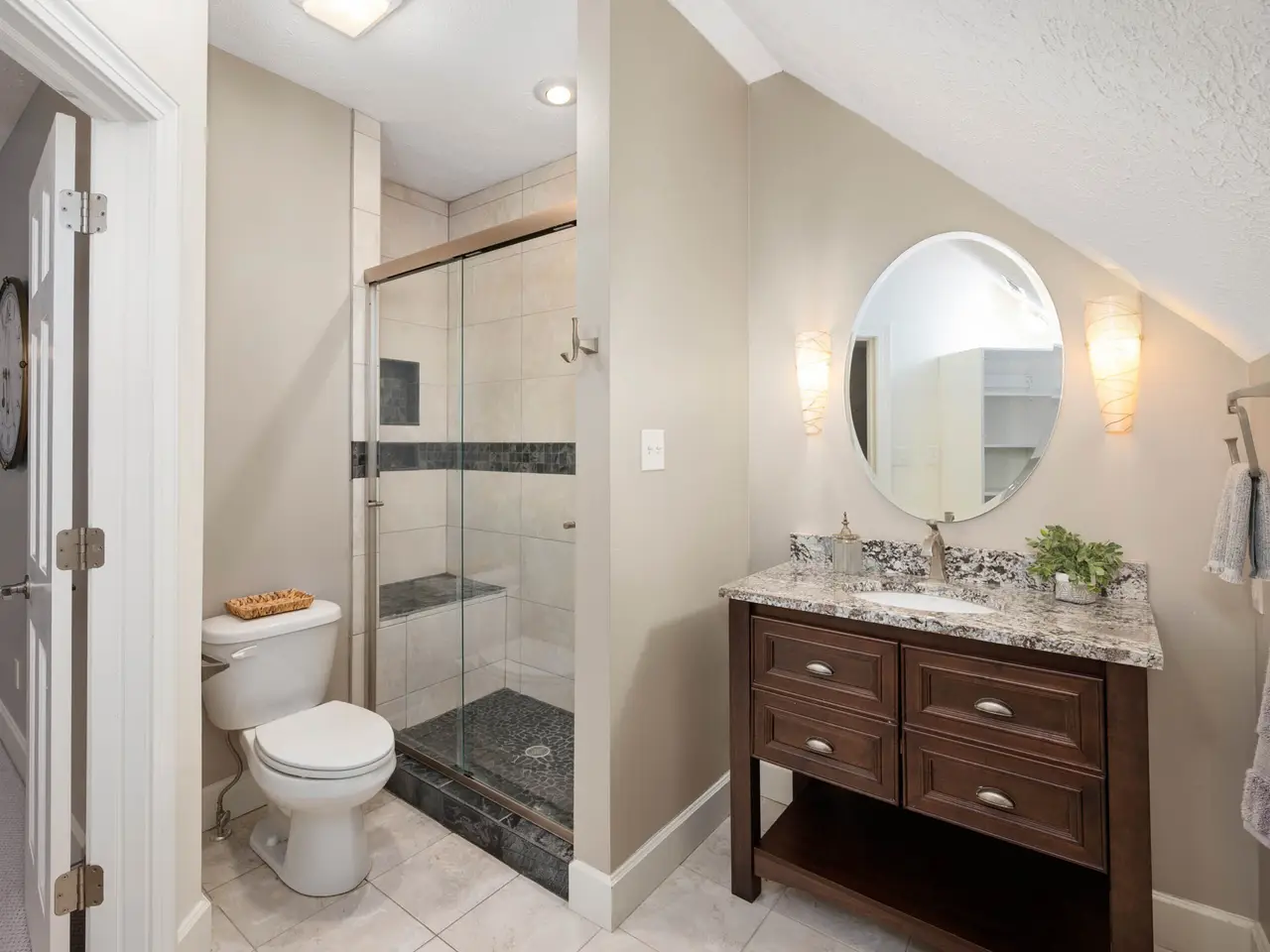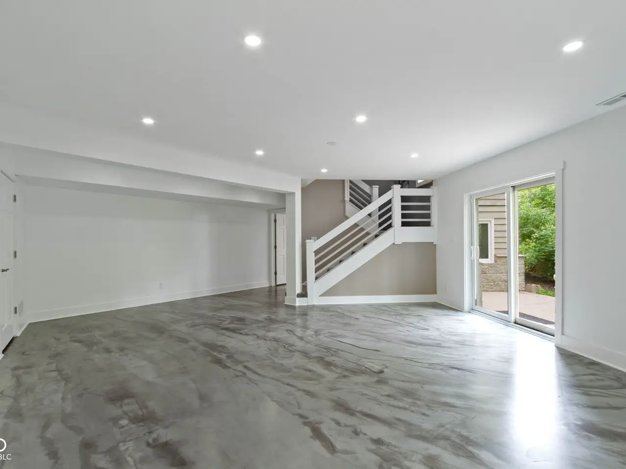 NEW PICS and NEW PRICE! Tired of the cookie cutter, builder beige look? Come check out this unique contemporary home! Nestled in the prestigious Geist neighborhood of Feather Cove I, this architect-designed residence offers a serene, wooded oasis on just over half an acre with it's own half court basketball court and cozy firepit. A quick stroll from Geist Reservoir, this home boasts glass floor to ceiling front entryway and expansive two-story living and dining rooms with magnificent windows creating a bright and airy atmosphere. The sunken formal dining room, two-sided gas fireplace and open floor plan further connect the kitchen and hearth room making this home perfect for entertaining. The primary suite is located on the main floor and includes an upper spa-like private bath, two walk-in closets and is connected to a flex room, perfect as a den or nursery. The gourmet kitchen is equipped with granite countertops, stainless steel appliances, white cabinetry plus a built in banquette with enough space for casual everyday dining. An upstairs loft area is perfect for meditation or as a kids' playroom and the walk out basement with exercise room offers additional hang out space. Huge pluses are the large 3 car garage, dual zone heating/cooling, whole home water filtration system, whole home humidification system plus the reliability of a new whole home Generac generator. This exceptional property combines luxurious living with the tranquility of nature, making it a rare find in the Geist Reservoir area. Nearby shopping, dining, walking path and school options, such as the "A" rated Amy Beverland Elementary, St Simon, Horizon and Holy Cross schools, make this home a winner!