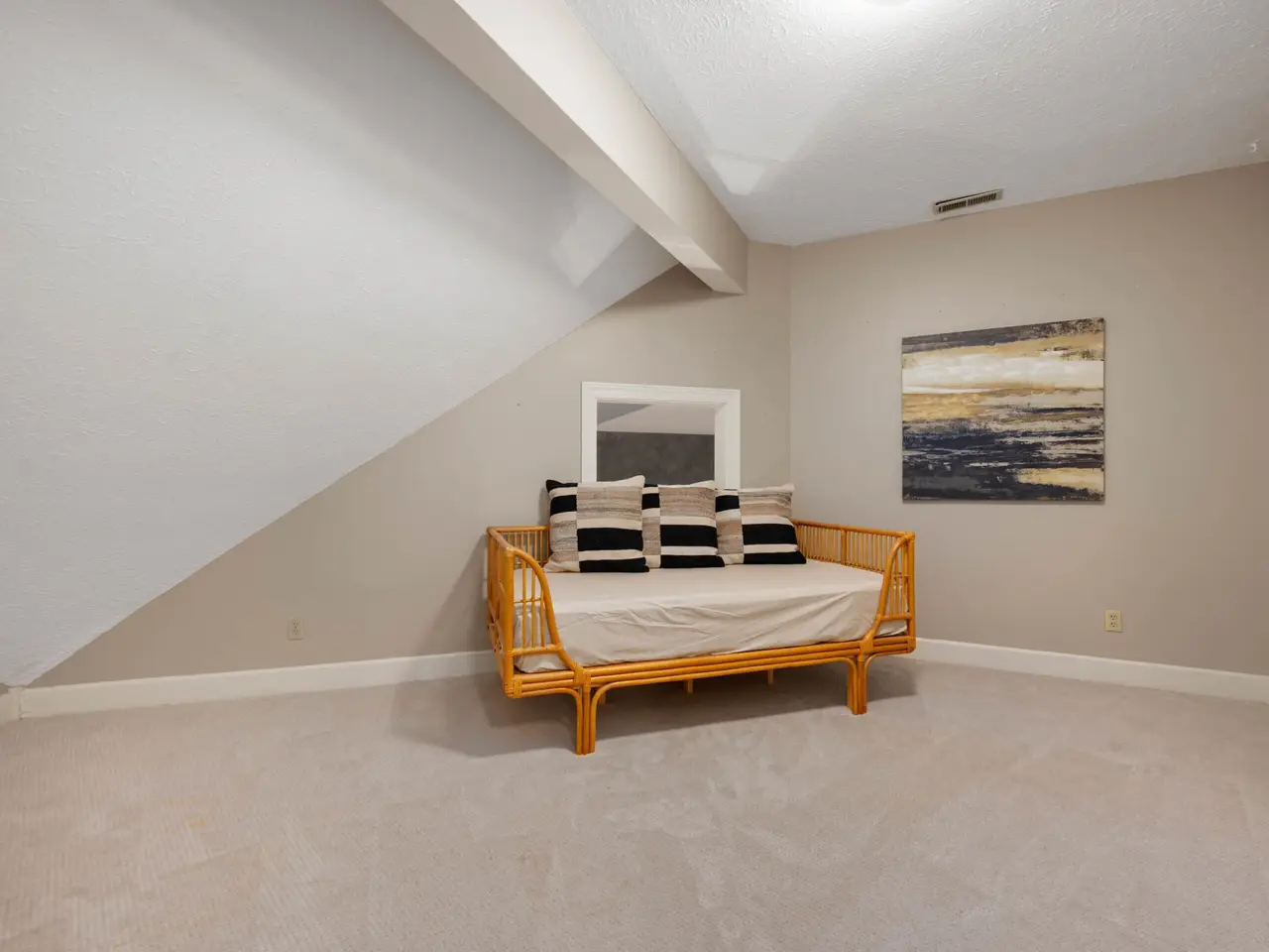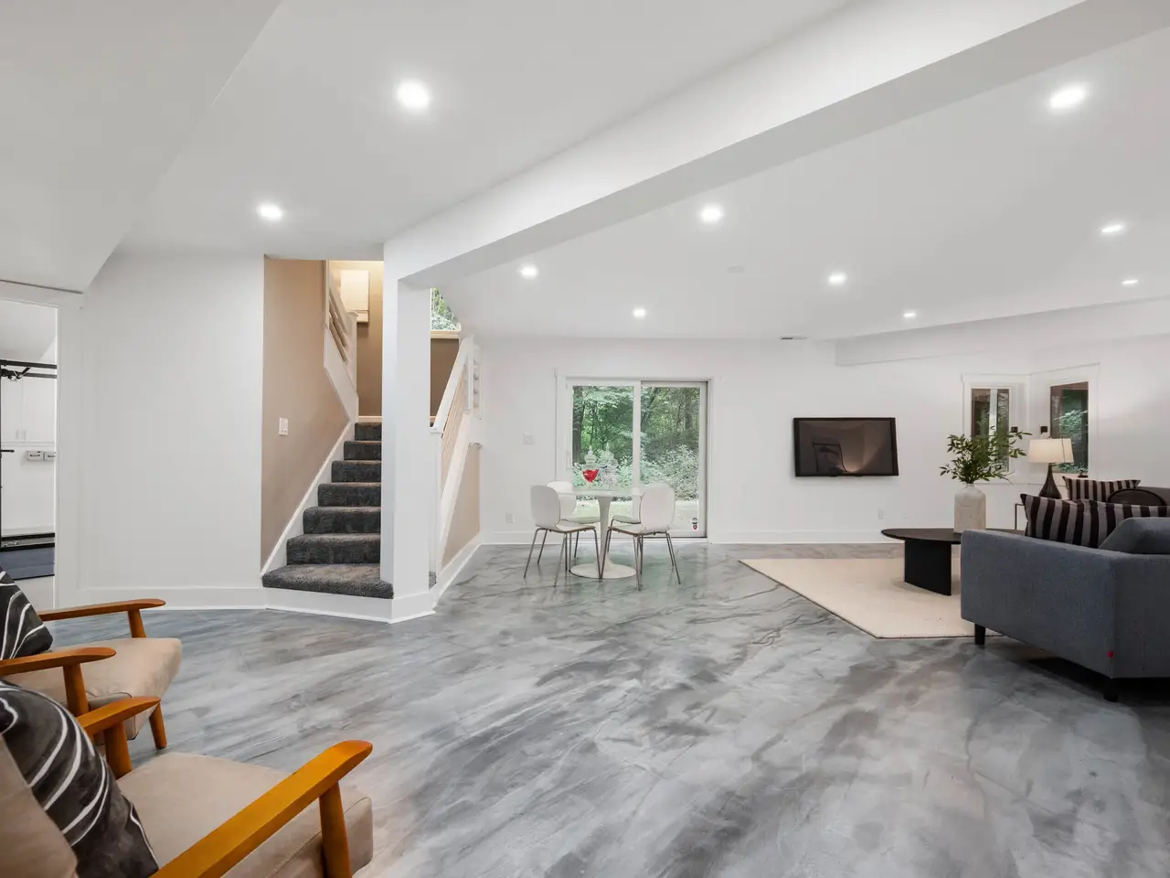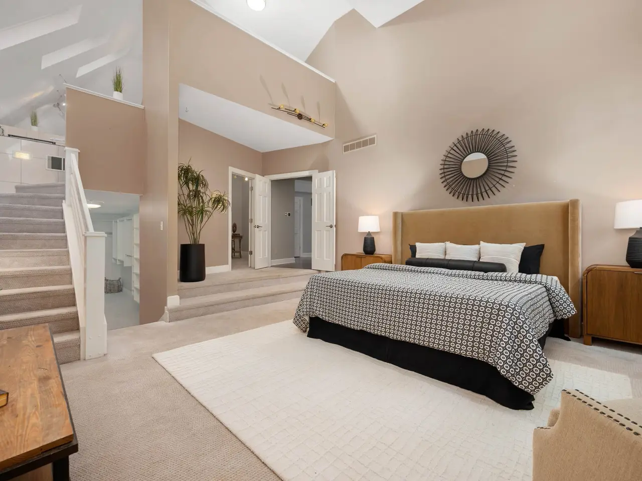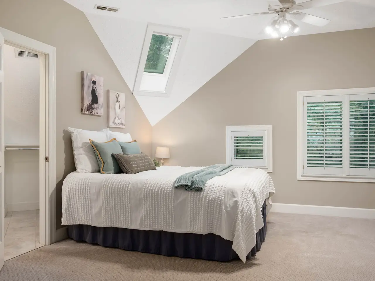 NEW PICS and NEW PRICE! Tired of the cookie cutter, builder beige look? Come check out this unique contemporary home! Nestled in the prestigious Geist neighborhood of Feather Cove I, this architect-designed residence offers a serene, wooded oasis on just over half an acre with it's own half court basketball court and cozy firepit. A quick stroll from Geist Reservoir, this home boasts glass floor to ceiling front entryway and expansive two-story living and dining rooms with magnificent windows creating a bright and airy atmosphere. The sunken formal dining room, two-sided gas fireplace and open floor plan further connect the kitchen and hearth room making this home perfect for entertaining. The primary suite is located on the main floor and includes an upper spa-like private bath, two walk-in closets and is connected to a flex room, perfect as a den or nursery. The gourmet kitchen is equipped with granite countertops, stainless steel appliances, white cabinetry plus a built in banquette with enough space for casual everyday dining. An upstairs loft area is perfect for meditation or as a kids' playroom and the walk out basement with exercise room offers additional hang out space. Huge pluses are the large 3 car garage, dual zone heating/cooling, whole home water filtration system, whole home humidification system plus the reliability of a new whole home Generac generator. This exceptional property combines luxurious living with the tranquility of nature, making it a rare find in the Geist Reservoir area. Nearby shopping, dining, walking path and school options, such as the "A" rated Amy Beverland Elementary, St Simon, Horizon and Holy Cross schools, make this home a winner!