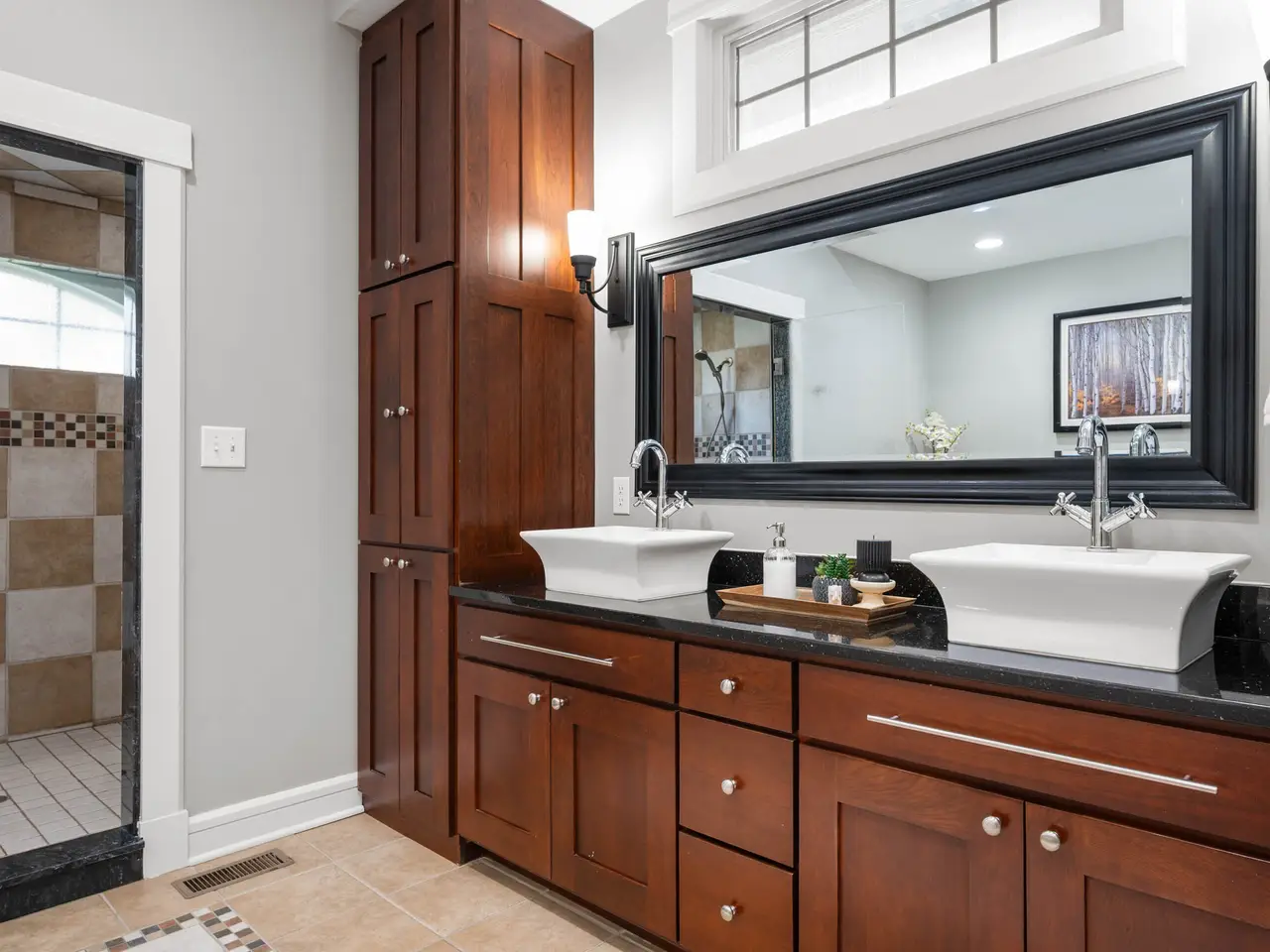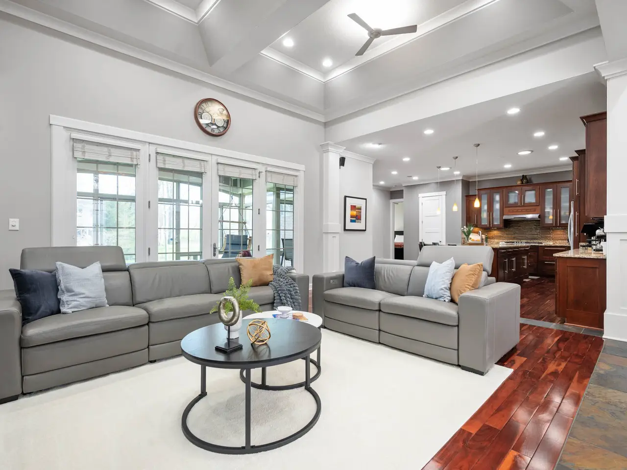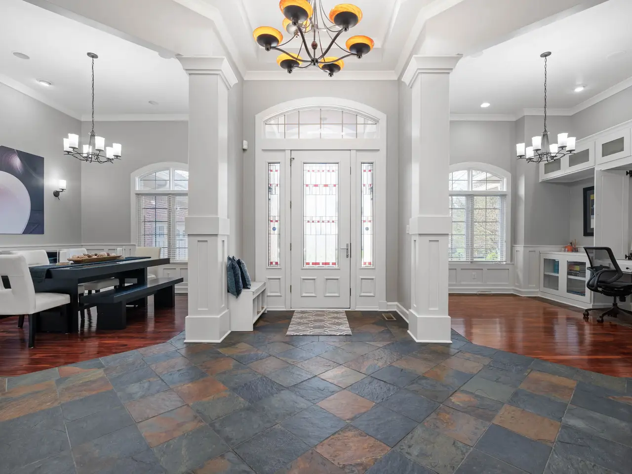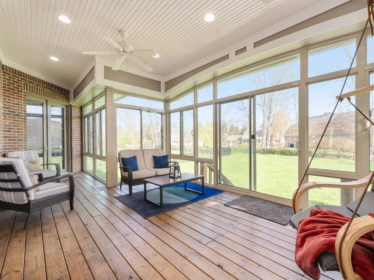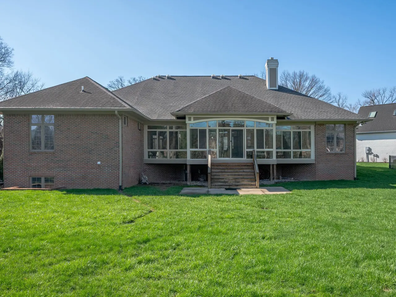 Welcome to a beautifully crafted custom-built, 1 owner ranch home that exudes warmth & elegance. This spacious 5-bedroom, 4.5-bath property is designed with an open floor plan that seamlessly connects the living spaces, making it perfect for entertaining or relaxing w/ family. High ceilings throughout, including in the basement, add to the feeling of grandeur, while recessed & tray ceilings bring a touch of sophistication. The heart of the home is the gourmet kitchen, showcasing exquisite Amish-made custom cabinetry, premium granite countertops, expansive island w/ integrated storage, & a meticulously designed layout that exudes elegance & flow. New gas cooktop, new refrigerator, new oven, & a 600 CFM exhaust fan ensure that the kitchen is both beautiful & functional. Brazilian cherry wood plank flooring graces the living room, dining area, office, & kitchen, while natural slate adds elegance to the foyer & hallways. All of the bedrooms, including basement bedroom, come w/ custom closets, offering plenty of storage space. Master suite includes a luxurious bathroom w/ a steamer for a spa-like experience. 3-season enclosed patio, accessible from the living room, kitchen, & master bedroom, provides a perfect spot to enjoy the outdoors while overlooking the huge backyard, which is ideal for creating a recreational area or giving large pets room to roam. The basement offers even more living space, complete w/ a theater room & plenty of natural light streaming through oversized window wells. Additional features include aluminum-framed entry doors & windows for low maintenance, a triple-lock safety mechanism for extra security, crown molding throughout the home, & a big garage w/ multiple shelves for storage.
