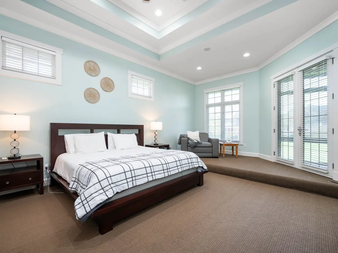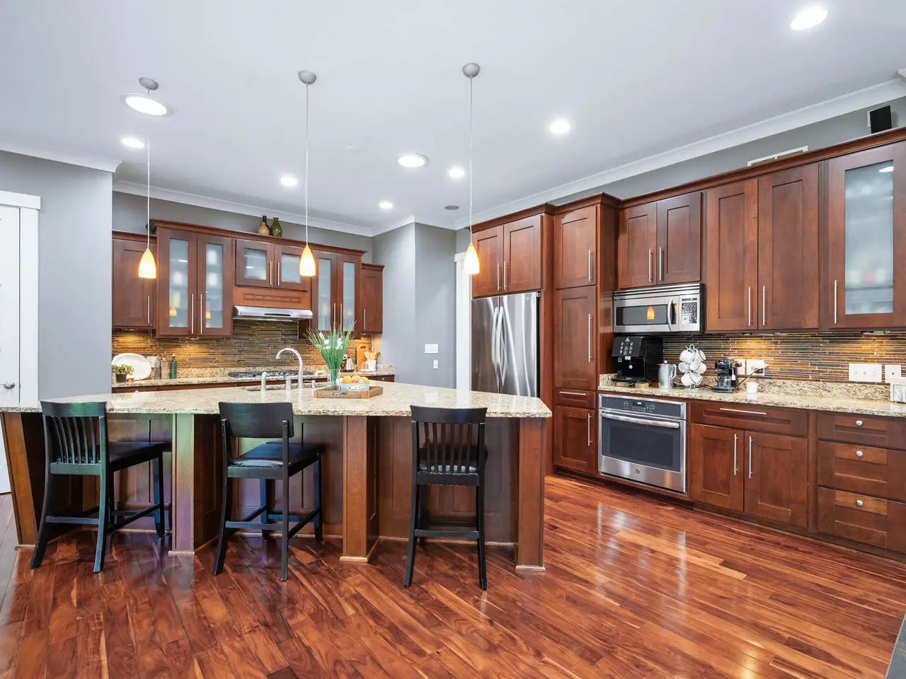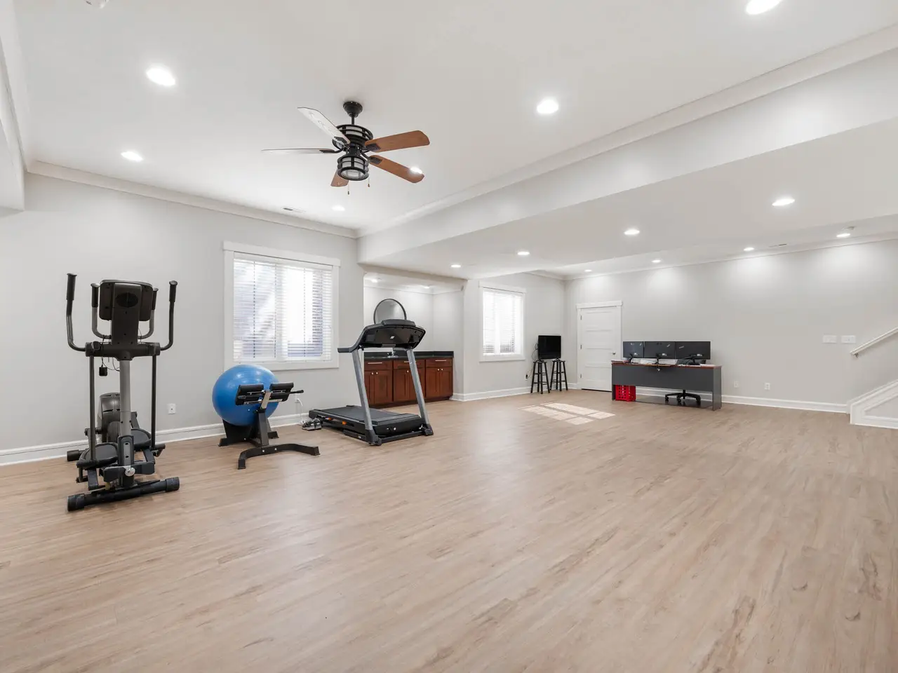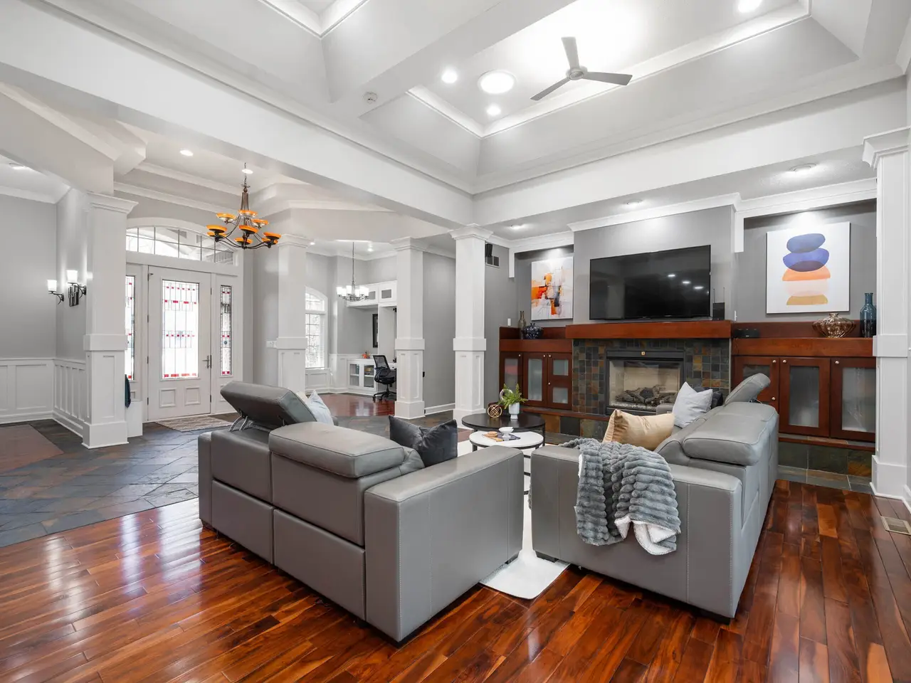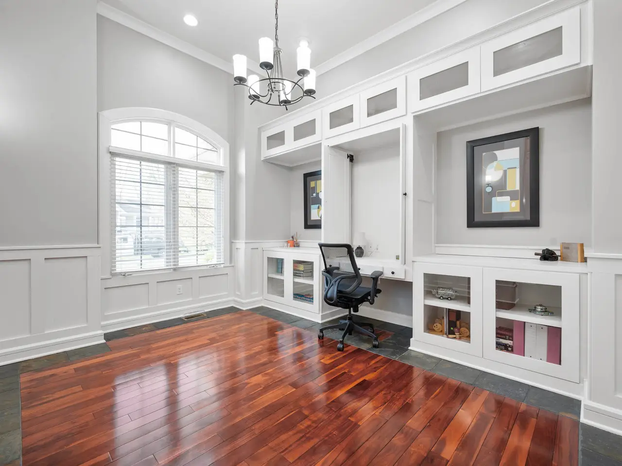 Welcome to a beautifully crafted custom-built, 1 owner ranch home that exudes warmth & elegance. This spacious 5-bedroom, 4.5-bath property is designed with an open floor plan that seamlessly connects the living spaces, making it perfect for entertaining or relaxing w/ family. High ceilings throughout, including in the basement, add to the feeling of grandeur, while recessed & tray ceilings bring a touch of sophistication. The heart of the home is the gourmet kitchen, showcasing exquisite Amish-made custom cabinetry, premium granite countertops, expansive island w/ integrated storage, & a meticulously designed layout that exudes elegance & flow. New gas cooktop, new refrigerator, new oven, & a 600 CFM exhaust fan ensure that the kitchen is both beautiful & functional. Brazilian cherry wood plank flooring graces the living room, dining area, office, & kitchen, while natural slate adds elegance to the foyer & hallways. All of the bedrooms, including basement bedroom, come w/ custom closets, offering plenty of storage space. Master suite includes a luxurious bathroom w/ a steamer for a spa-like experience. 3-season enclosed patio, accessible from the living room, kitchen, & master bedroom, provides a perfect spot to enjoy the outdoors while overlooking the huge backyard, which is ideal for creating a recreational area or giving large pets room to roam. The basement offers even more living space, complete w/ a theater room & plenty of natural light streaming through oversized window wells. Additional features include aluminum-framed entry doors & windows for low maintenance, a triple-lock safety mechanism for extra security, crown molding throughout the home, & a big garage w/ multiple shelves for storage.