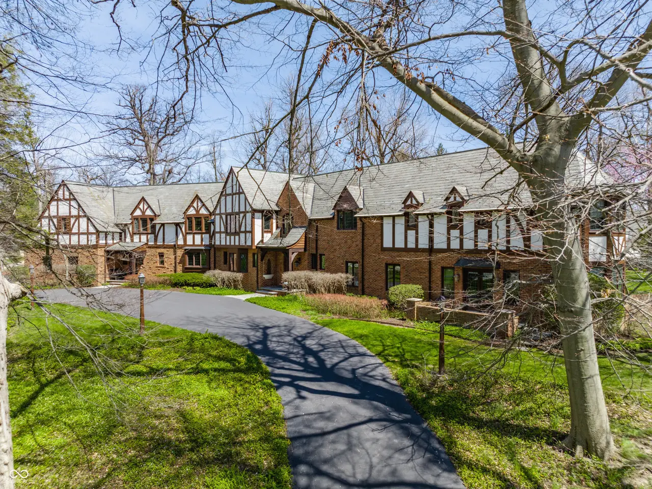 Situated in the heart of Williams Creek along prestigious North Pennsylvania Street, this exquisite Tudor Revival estate spans a breathtaking 1.71 acres. A picturesque approach - crossing a gently flowing creek - sets the tone for the experience that awaits. Thoughtfully envisioned by RWA Architects and Julie O'Brien Design and masterfully crafted by renowned builder Leonard Watson, every inch of this home speaks to timeless craftsmanship and intentional design. Upon entry, the spiral staircase sets an elegant tone, while rich architectural details - from leaded glass windows to intricate millwork and hand-laid hardwood inlays - create a sense of warmth and authenticity. The soaring two-story great room, featuring coffered ceilings and clerestory windows, offers a grand yet welcoming space meant for unforgettable gatherings. Designed with seamless indoor-outdoor living in mind, the great room opens to both a spacious screened-in porch with a skylight and a beautifully appointed patio, complete with a cozy outdoor fireplace - perfect for quiet evenings with family and friends. The main level primary suite serves as a secluded retreat, offering peaceful views of the meticulously manicured grounds. Upstairs, each secondary bedroom boasts its own private en-suite bath and distinctive charm. A versatile playroom caters to all ages, featuring a basketball court and dedicated arts and crafts space. The finished lower level provides additional room for entertainment, whether it's a game of pool or a cozy movie night. Additional highlights include a four-car garage with extra storage, main and second-floor offices, dual laundry rooms, a whole-home generator, a durable slate roof, and so much more. This exceptional home offers a rare opportunity to own one of Williams Creek's finest estates.